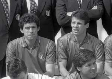 1986 ROCCARASO RADUNO NAZIONALE ITALIANA DI CALCIO NELLA FOTO GIUSEPPE BARESI E SEBASTIANO NELA AG ALDO LIVERANI SAS