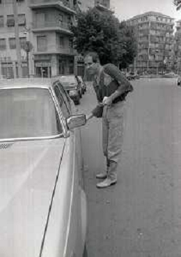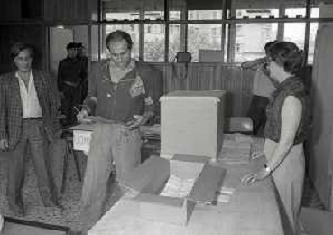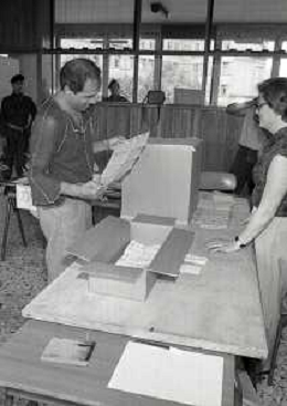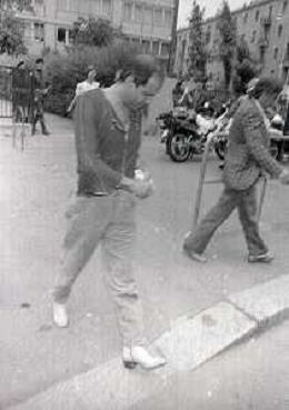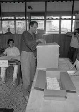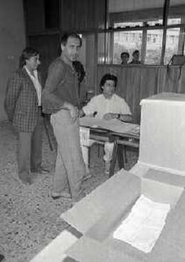 RETROSPETTIVA ADRIANO CELENTANO ATTORE CANTANTE NELLA FOTO ADRIANO CELENTANO NELL'ANNO 1984 A MILANO PIAZZA CARBONARI PER LE VOTAZIONI AG ALDO LIVERANI SAS