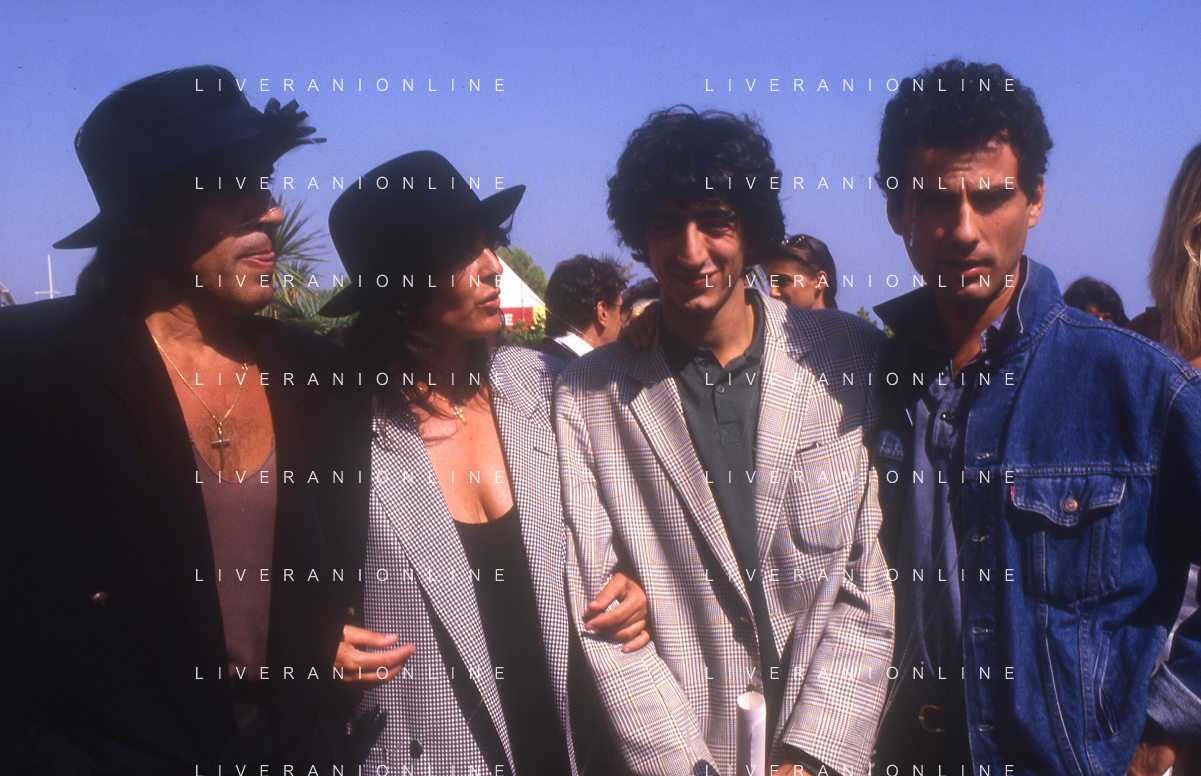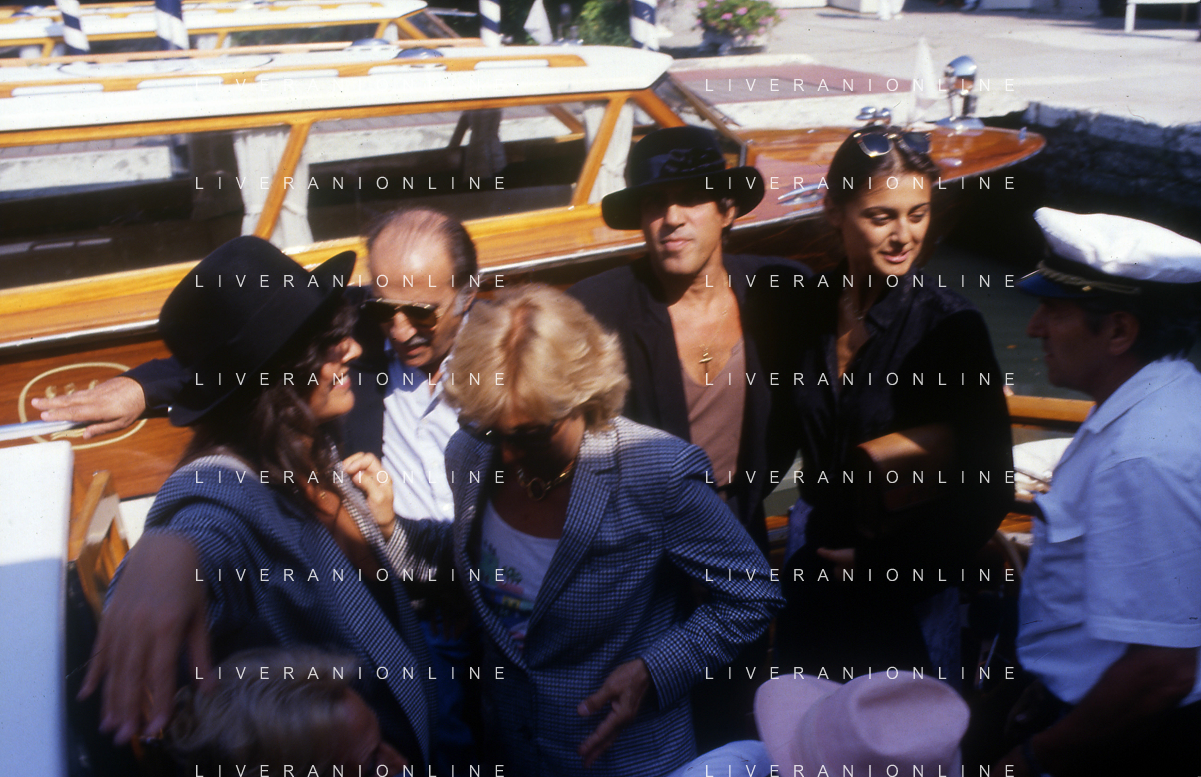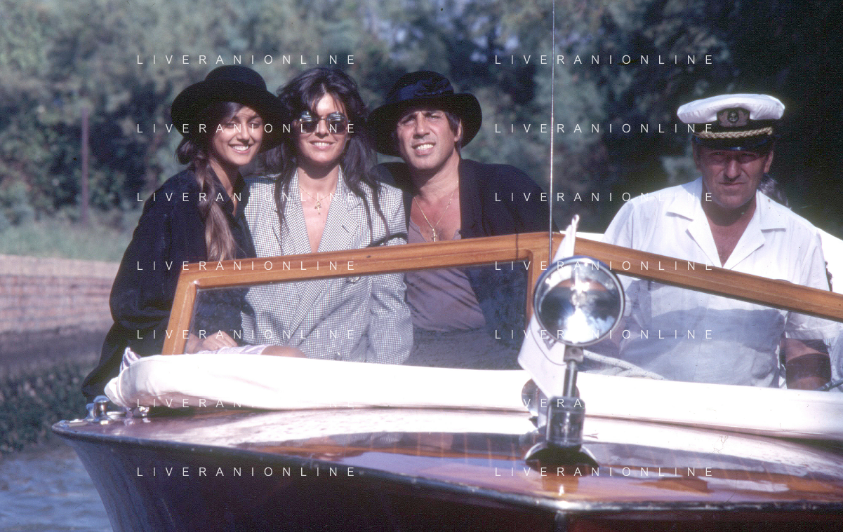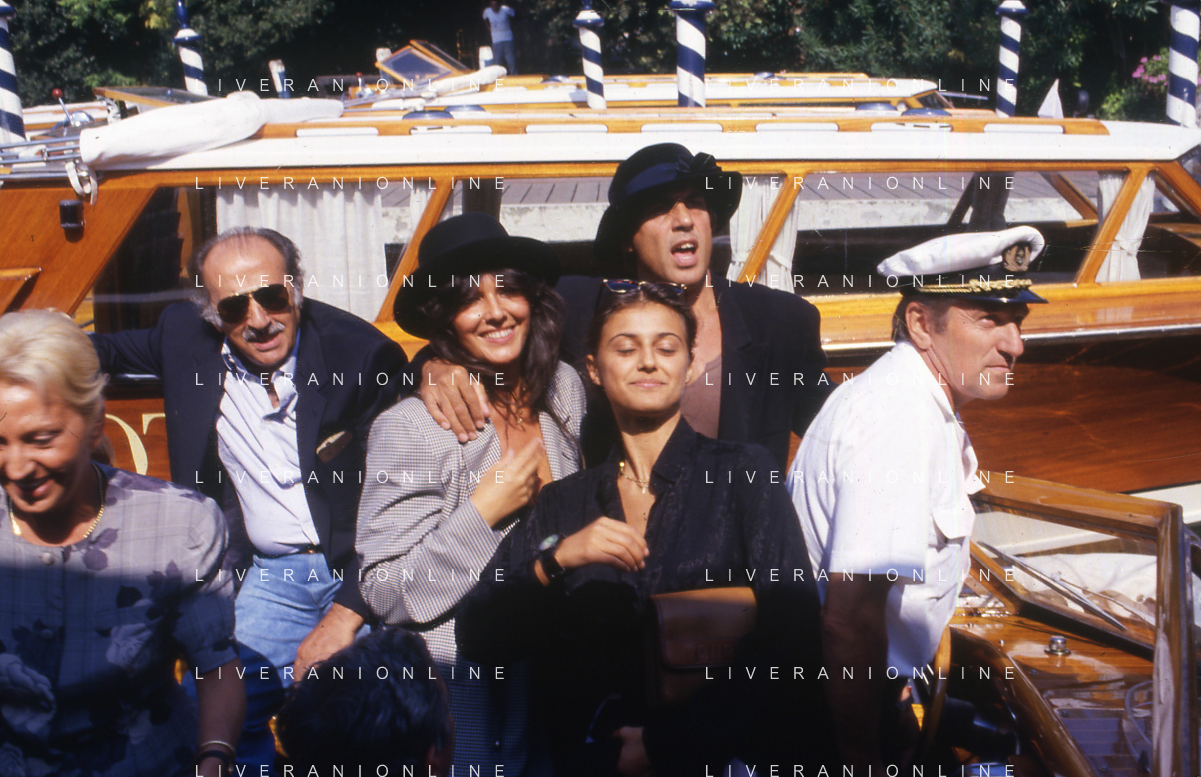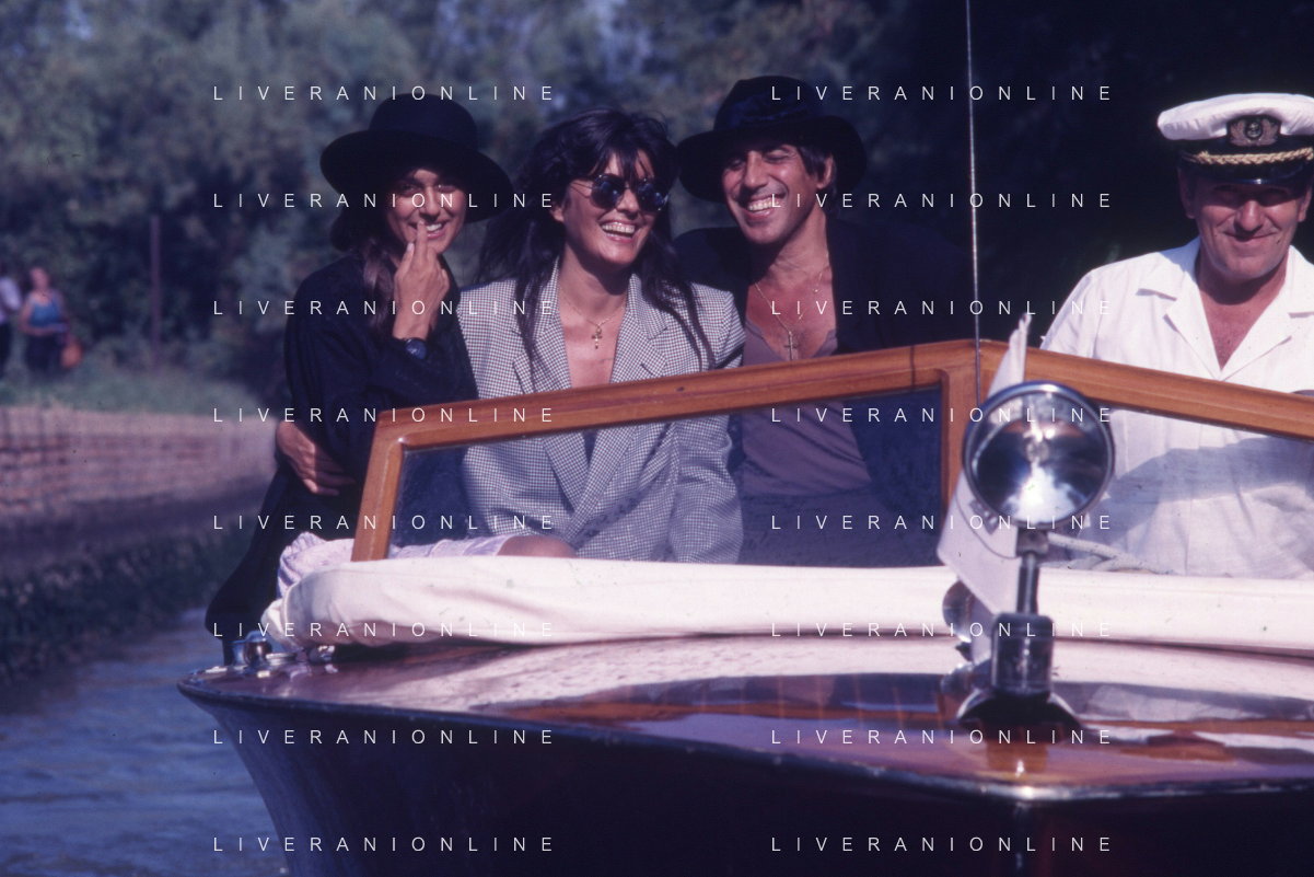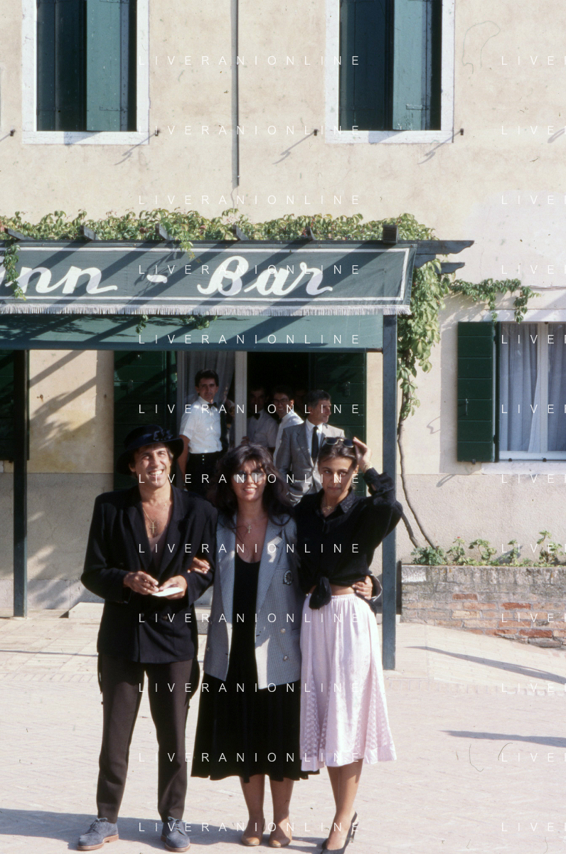 RETROSPETTIVA ADRIANO CELENTANO ATTORE CANTANTE NELLA FOTO ADRIANO CELENTANO NELL'ANNO 1988 A VENEZIA CON CLAUDIA MORI ROSITA CELENTANO E SERGIO RUBINI AG ALDO LIVERANI SAS