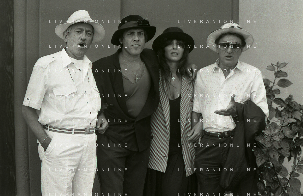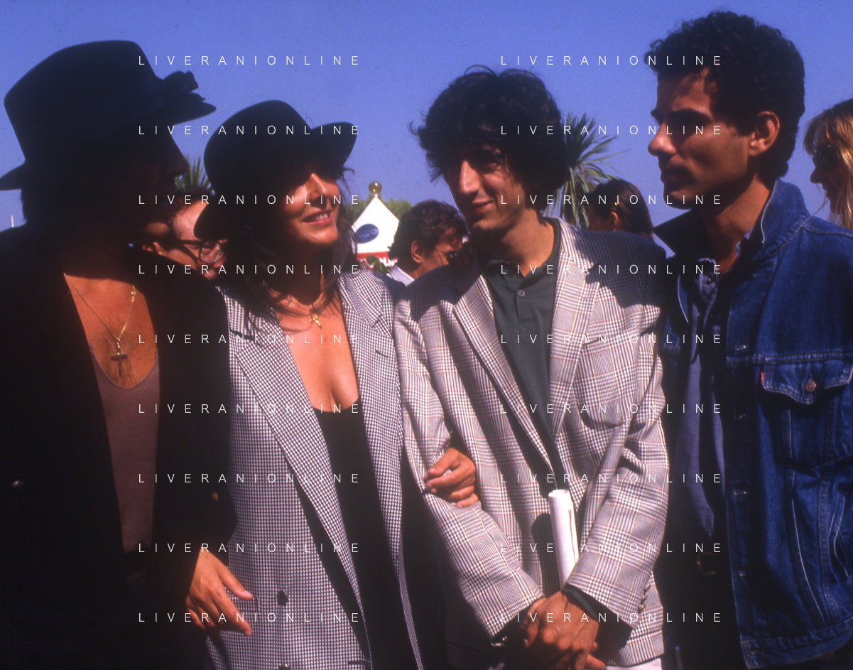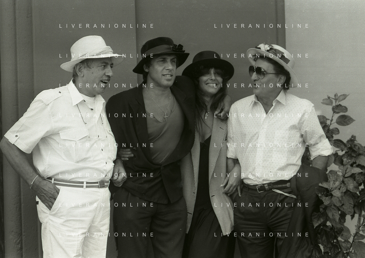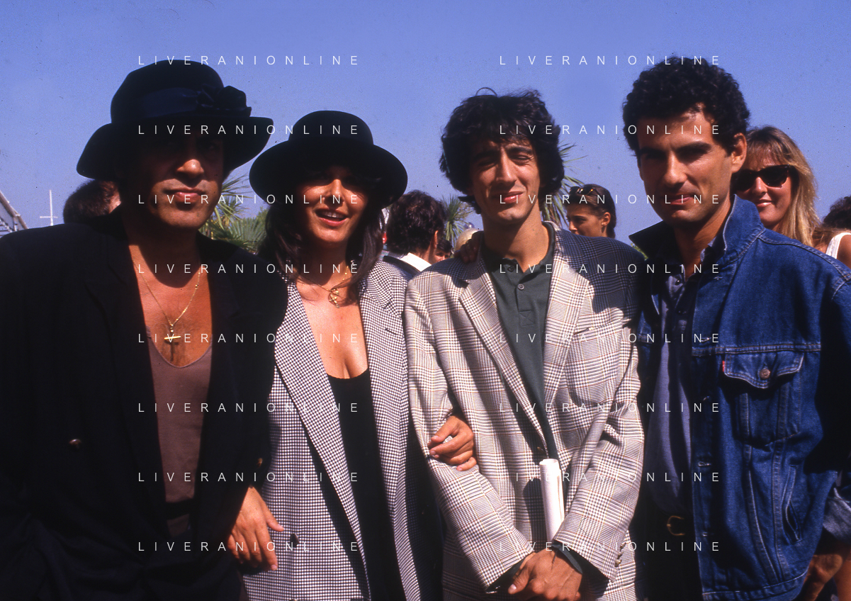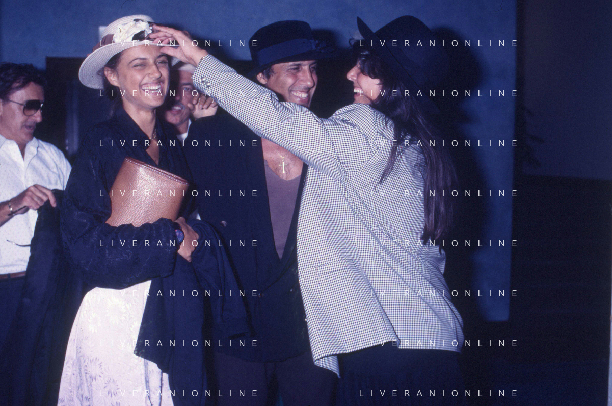RETROSPETTIVA ADRIANO CELENTANO ATTORE CANTANTE NELLA FOTO ADRIANO CELENTANO NELL'ANNO 1988 A VENEZIA CON CLAUDIA MORI ROSITA CELENTANO E SERGIO RUBINI AG ALDO LIVERANI SAS
