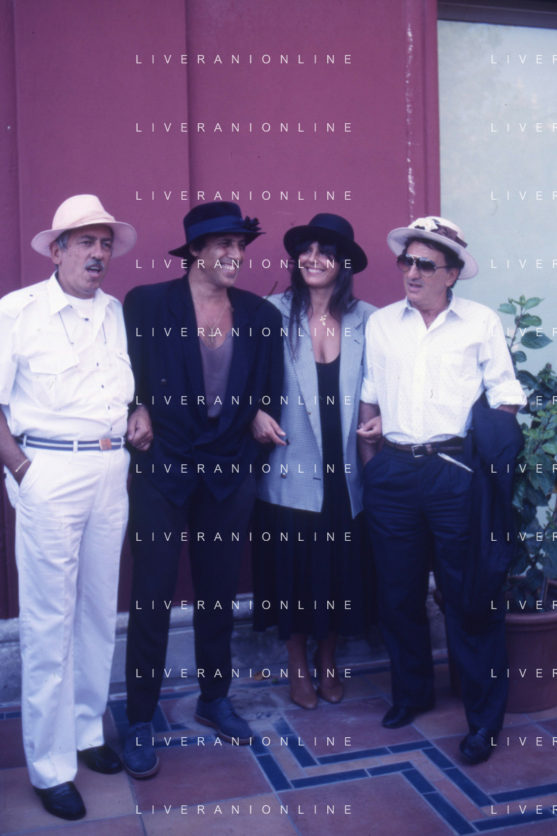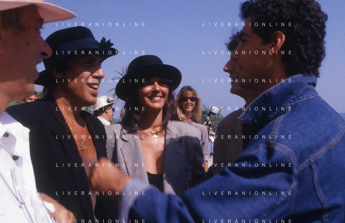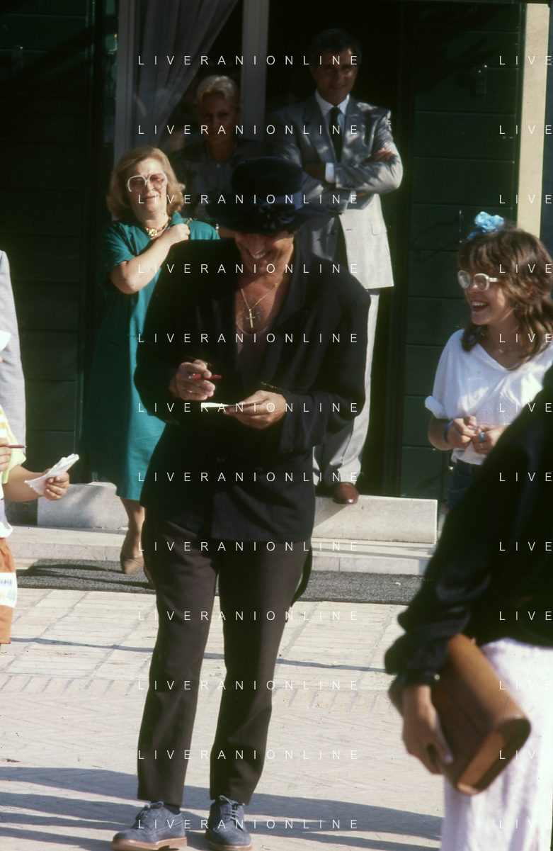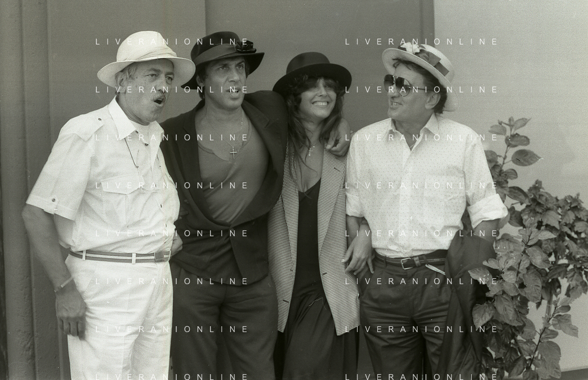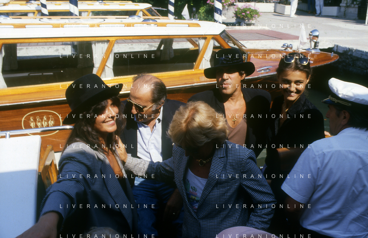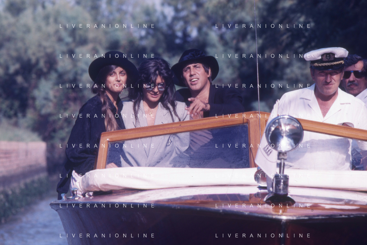 RETROSPETTIVA ADRIANO CELENTANO ATTORE CANTANTE NELLA FOTO ADRIANO CELENTANO NELL'ANNO 1988 A VENEZIA CON CLAUDIA MORI ROSITA CELENTANO E SERGIO RUBINI AG ALDO LIVERANI SAS