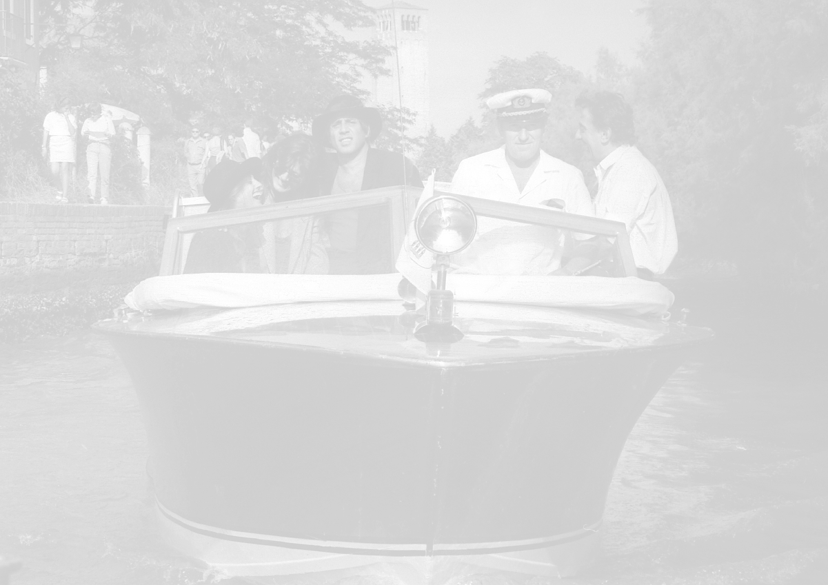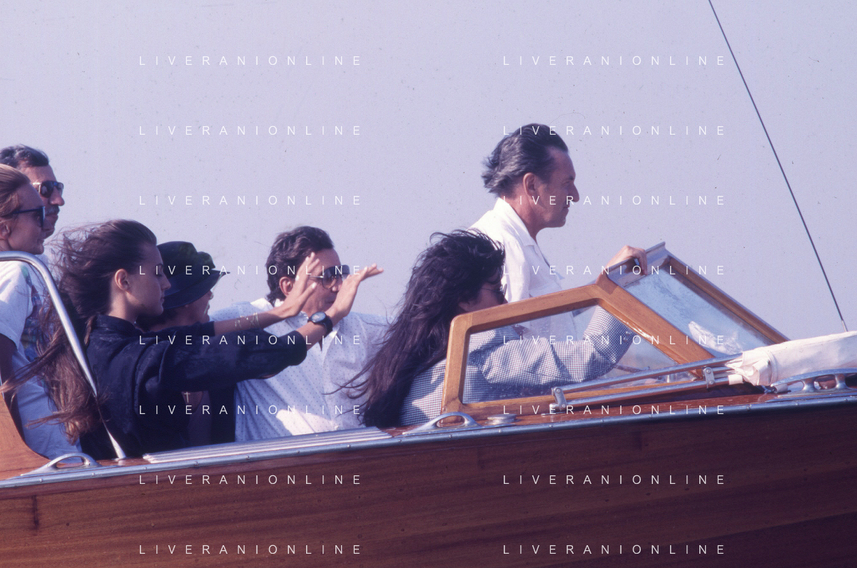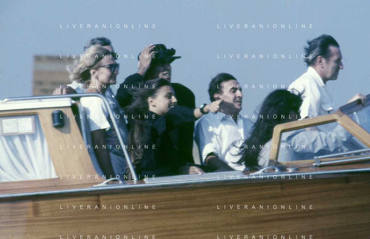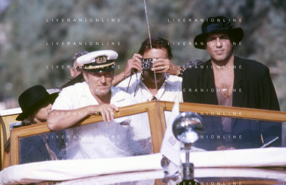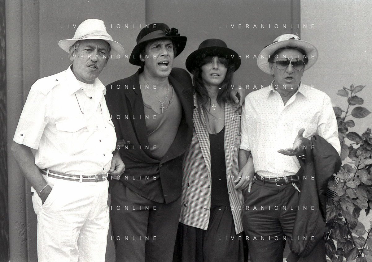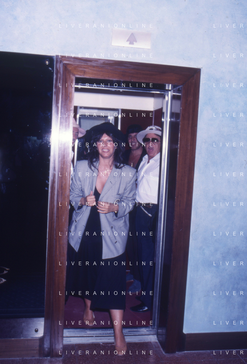 RETROSPETTIVA ADRIANO CELENTANO ATTORE CANTANTE NELLA FOTO ADRIANO CELENTANO NELL'ANNO 1988 A VENEZIA CON CLAUDIA MORI ROSITA CELENTANO E SERGIO RUBINI AG ALDO LIVERANI SAS