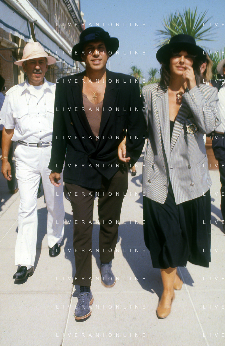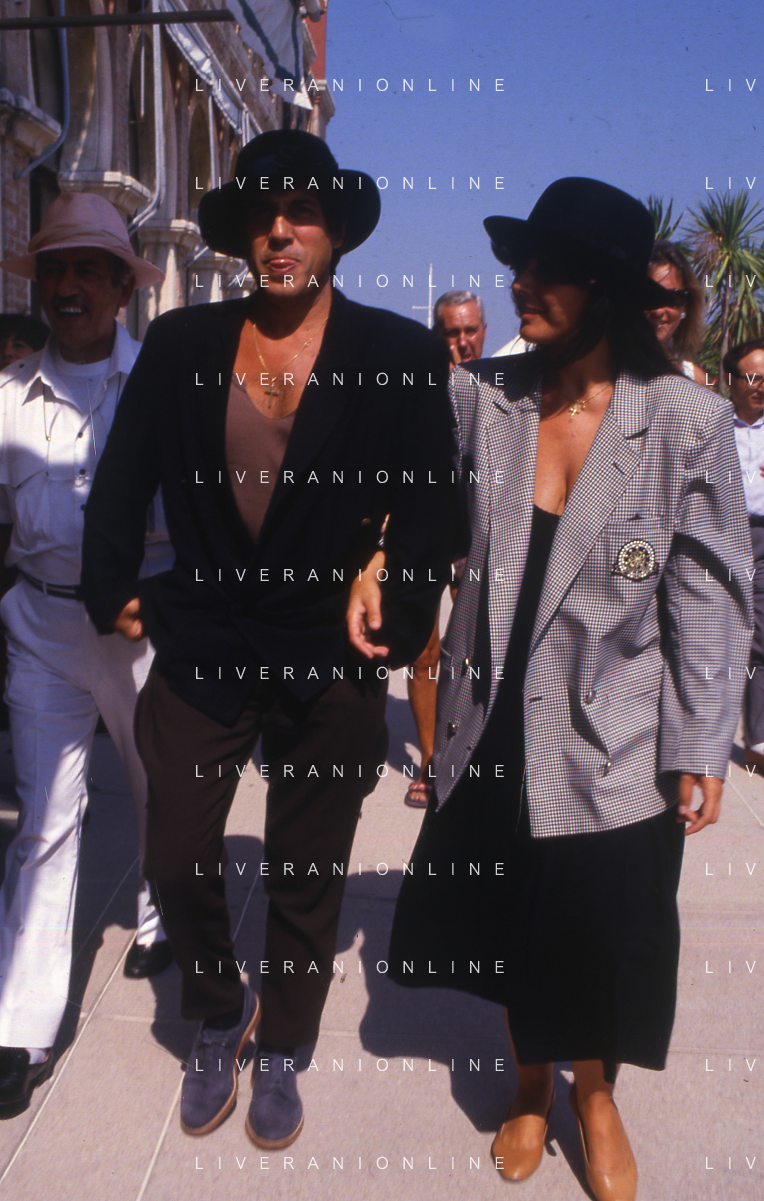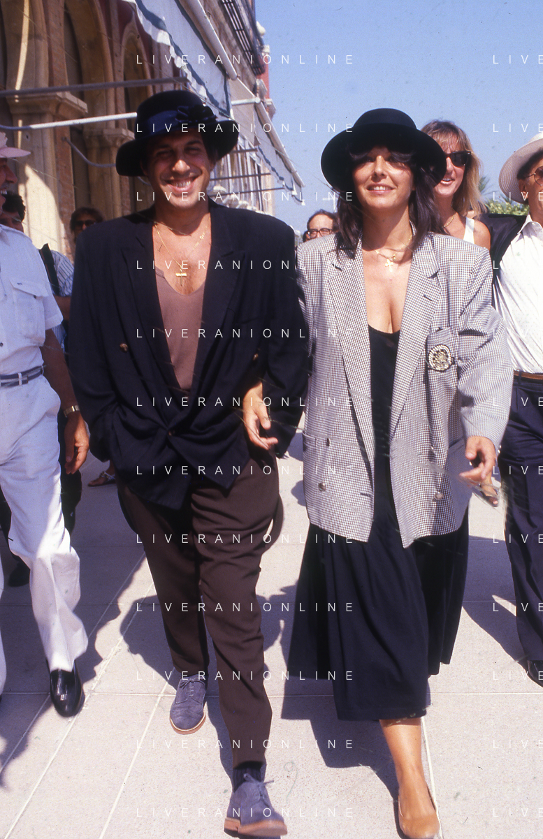 RETROSPETTIVA ADRIANO CELENTANO ATTORE CANTANTE NELLA FOTO ADRIANO CELENTANO NELL'ANNO 1988 A VENEZIA CON CLAUDIA MORI ROSITA CELENTANO AG ALDO LIVERANI SAS