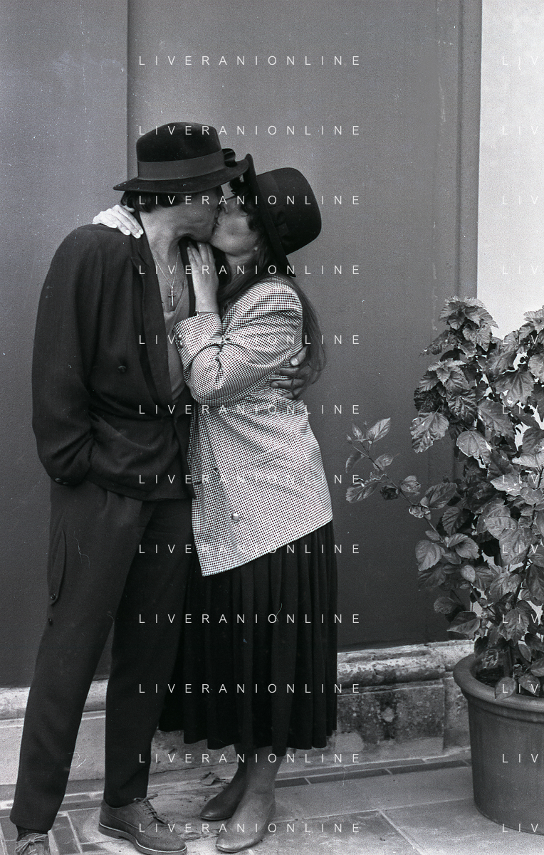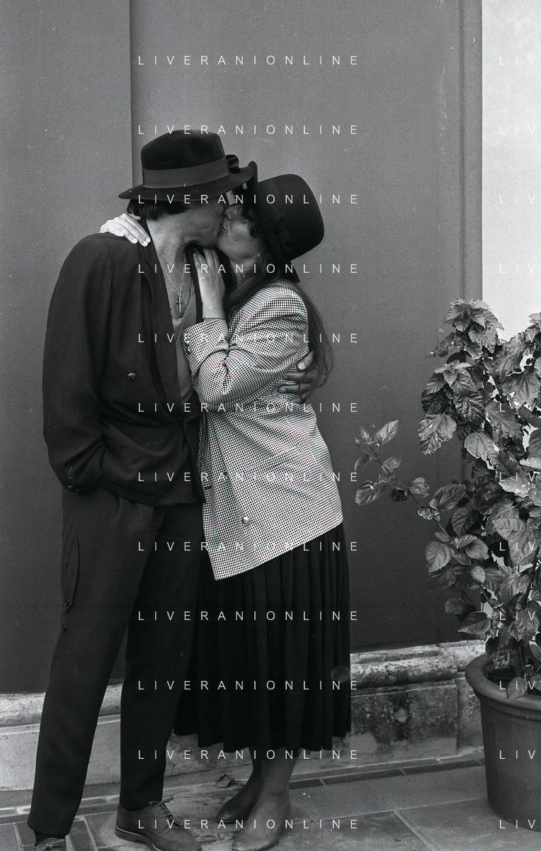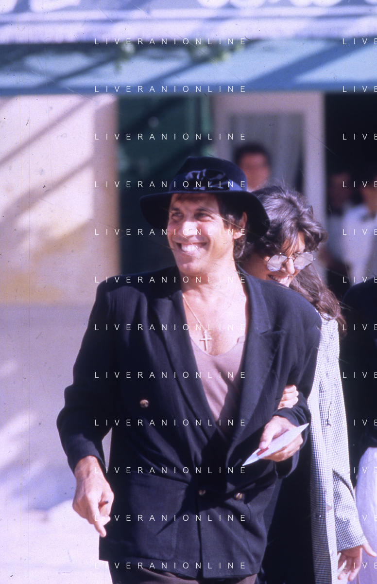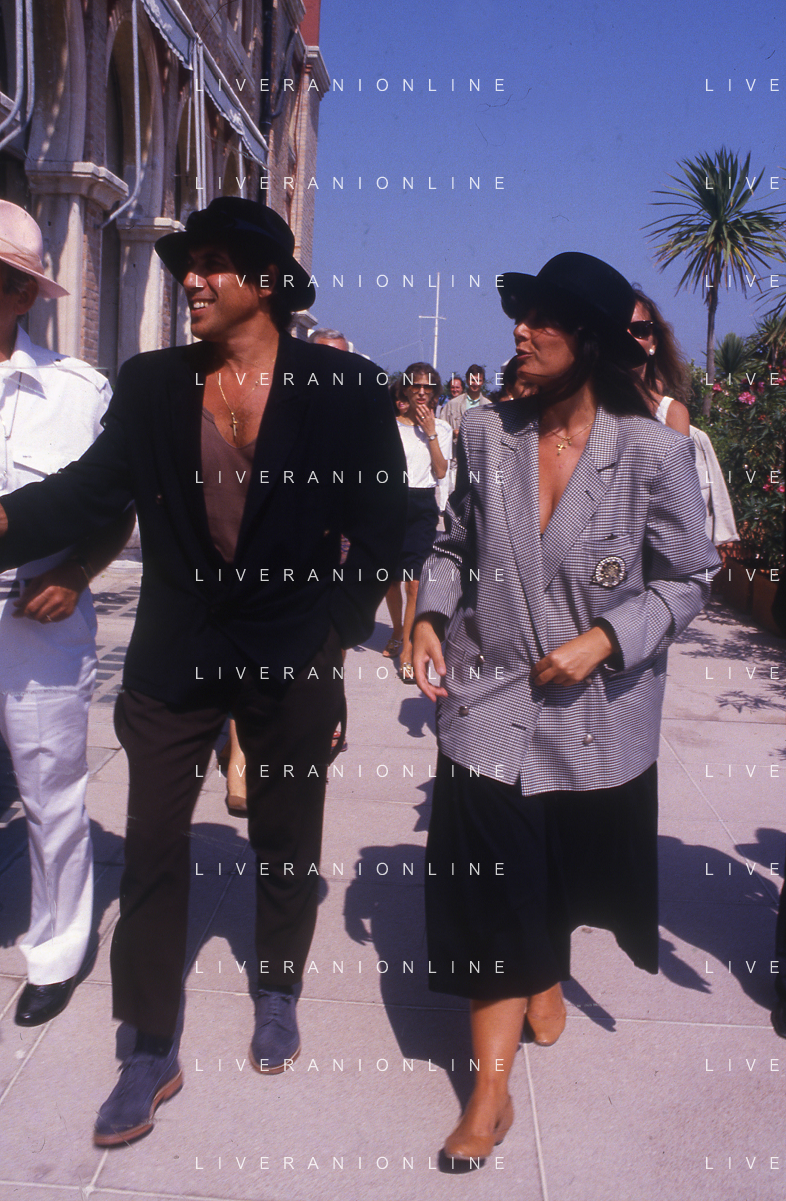RETROSPETTIVA ADRIANO CELENTANO ATTORE CANTANTE NELLA FOTO ADRIANO CELENTANO NELL'ANNO 1988 A VENEZIA CON CLAUDIA MORI ROSITA CELENTANO AG ALDO LIVERANI SAS