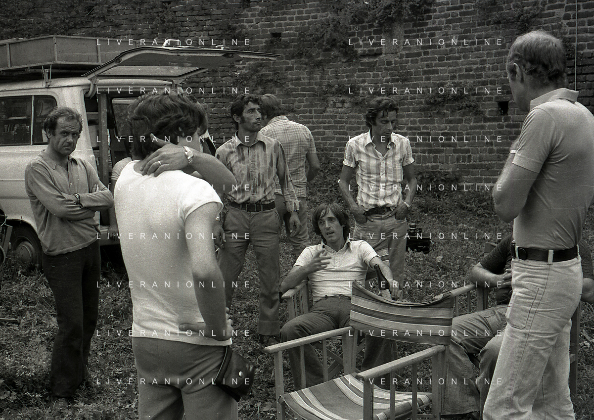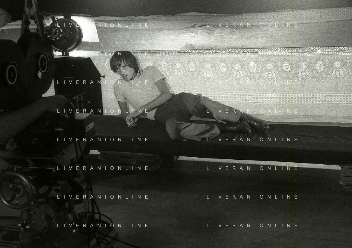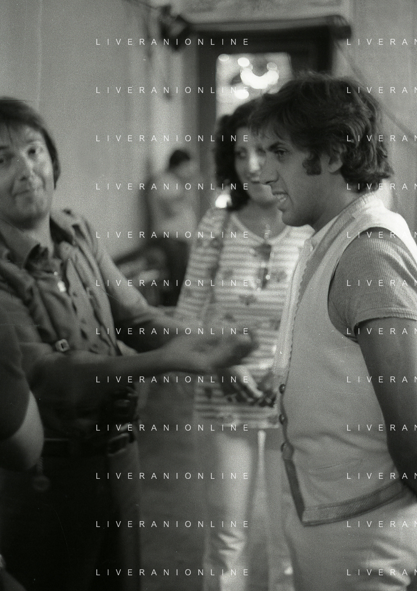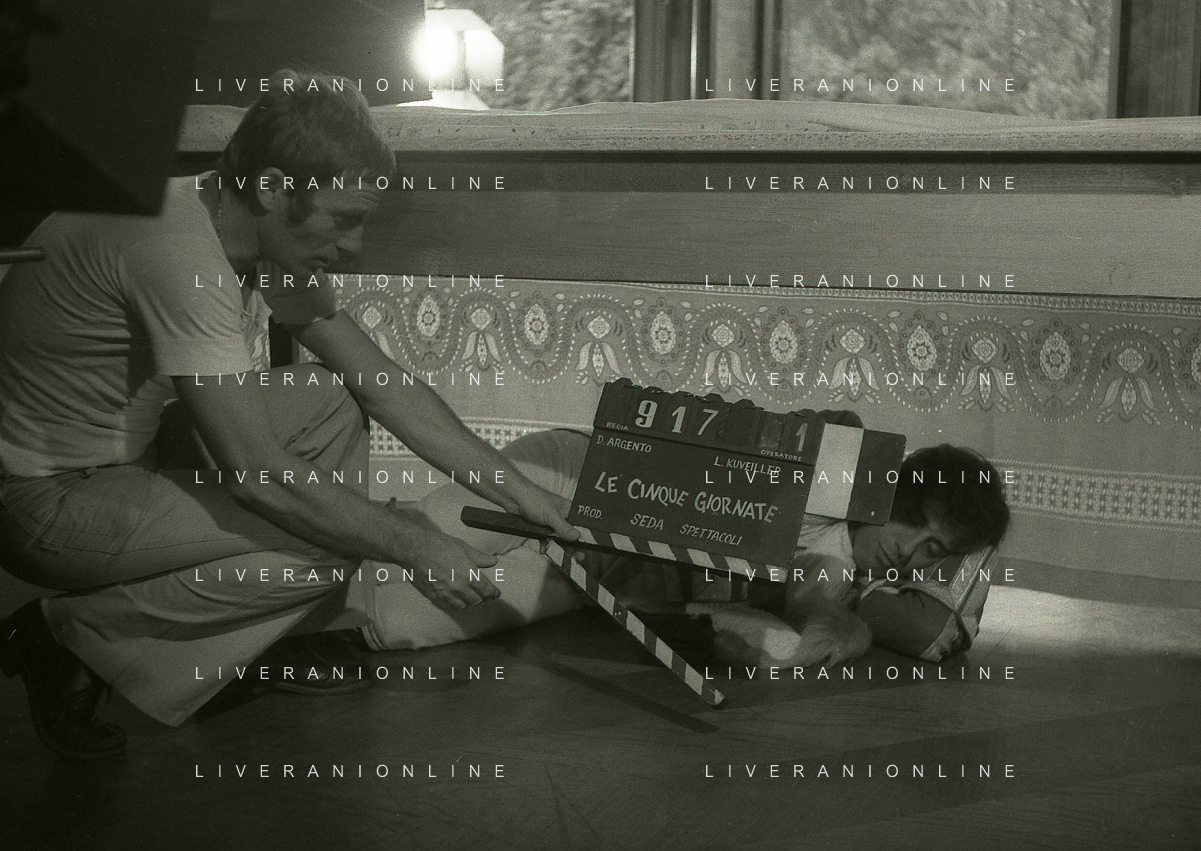 RETROSPETTIVA ADRIANO CELENTANO ATTORE CANTANTE NELLA FOTO DARIO ARGENTO REGISTA NELL'ANNO 1973 SUL SET DEL FILM“LE CINQUE GIORNATE“ AG ALDO LIVERANI SAS