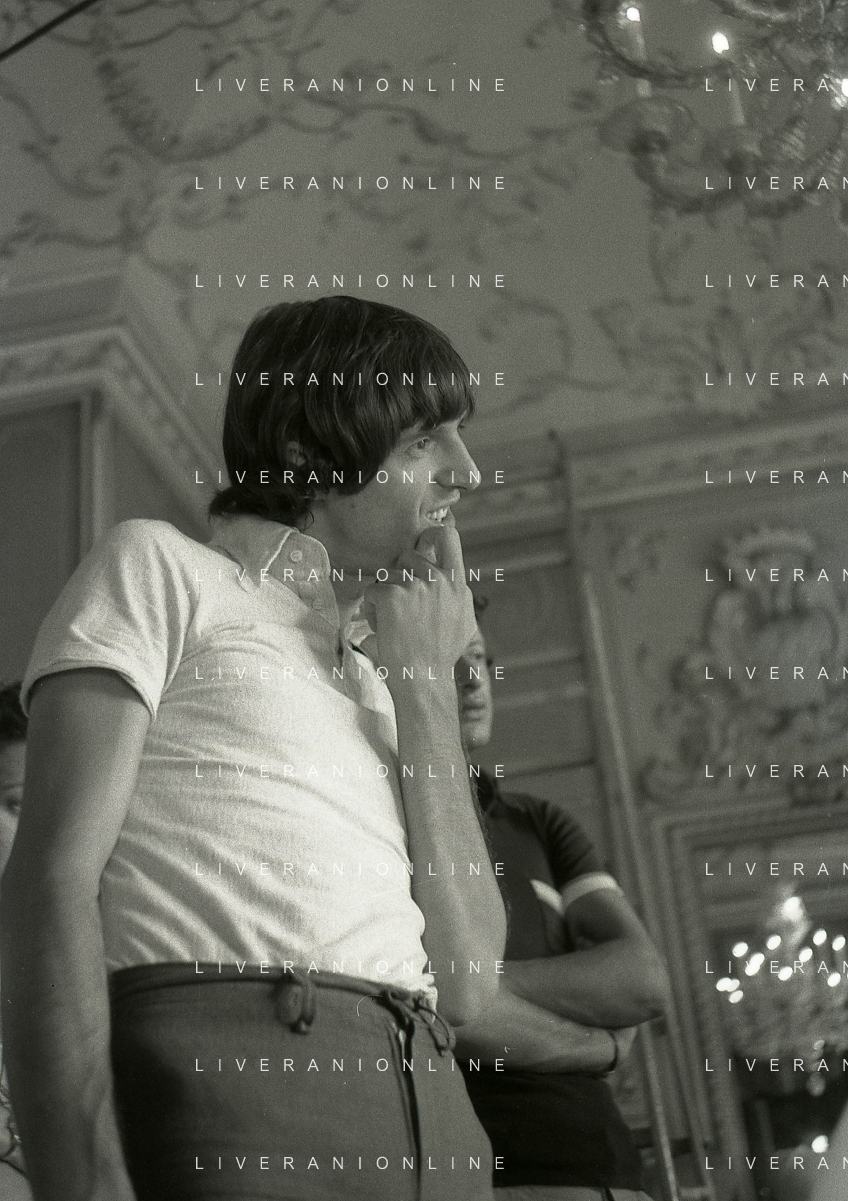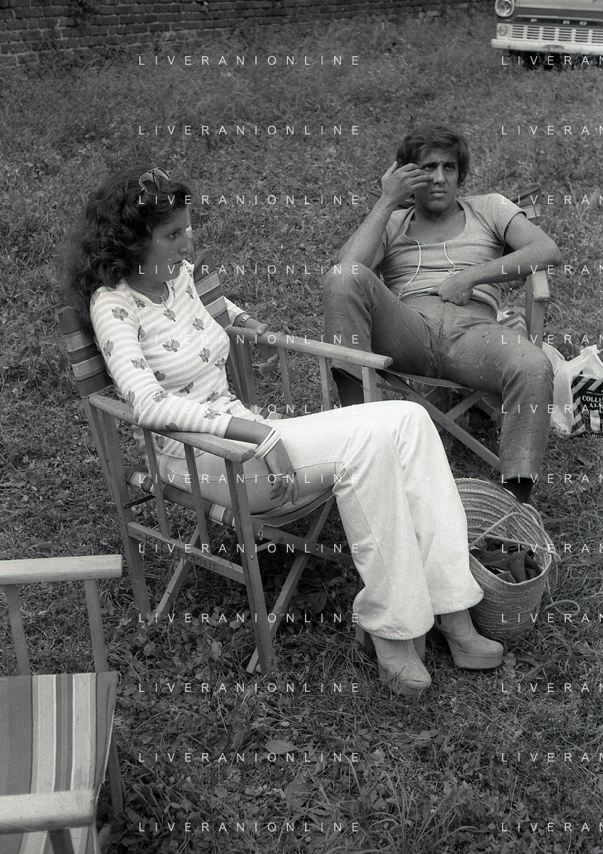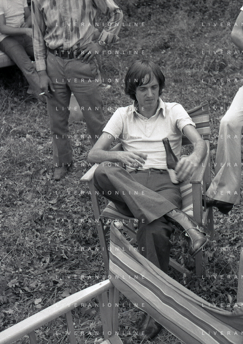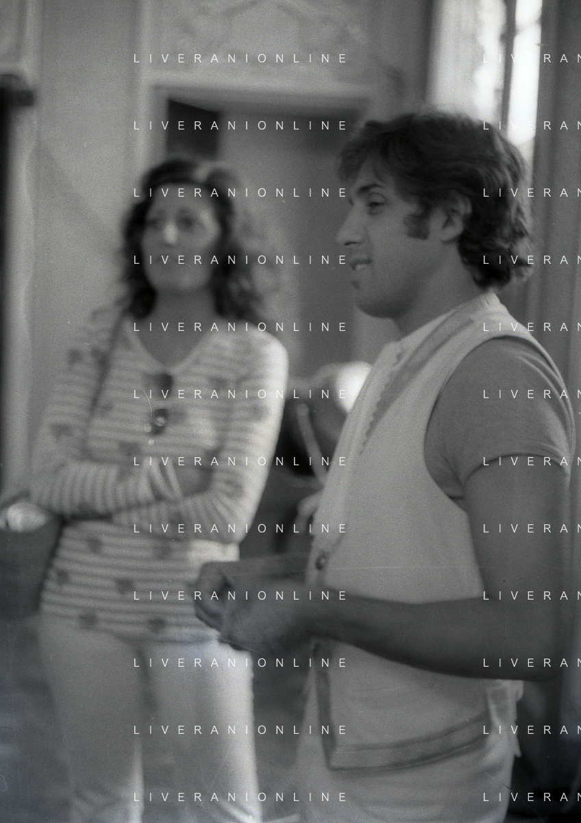 RETROSPETTIVA ADRIANO CELENTANO ATTORE CANTANTE NELLA FOTO DARIO ARGENTO REGISTA NELL'ANNO 1973 SUL SET DEL FILM“LE CINQUE GIORNATE“ AG ALDO LIVERANI SAS