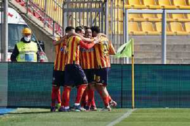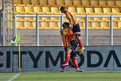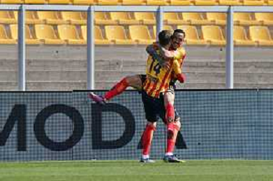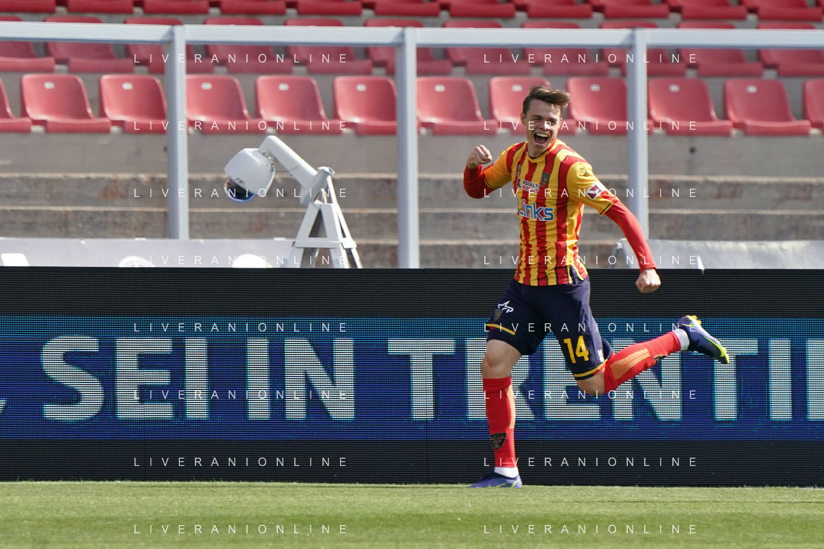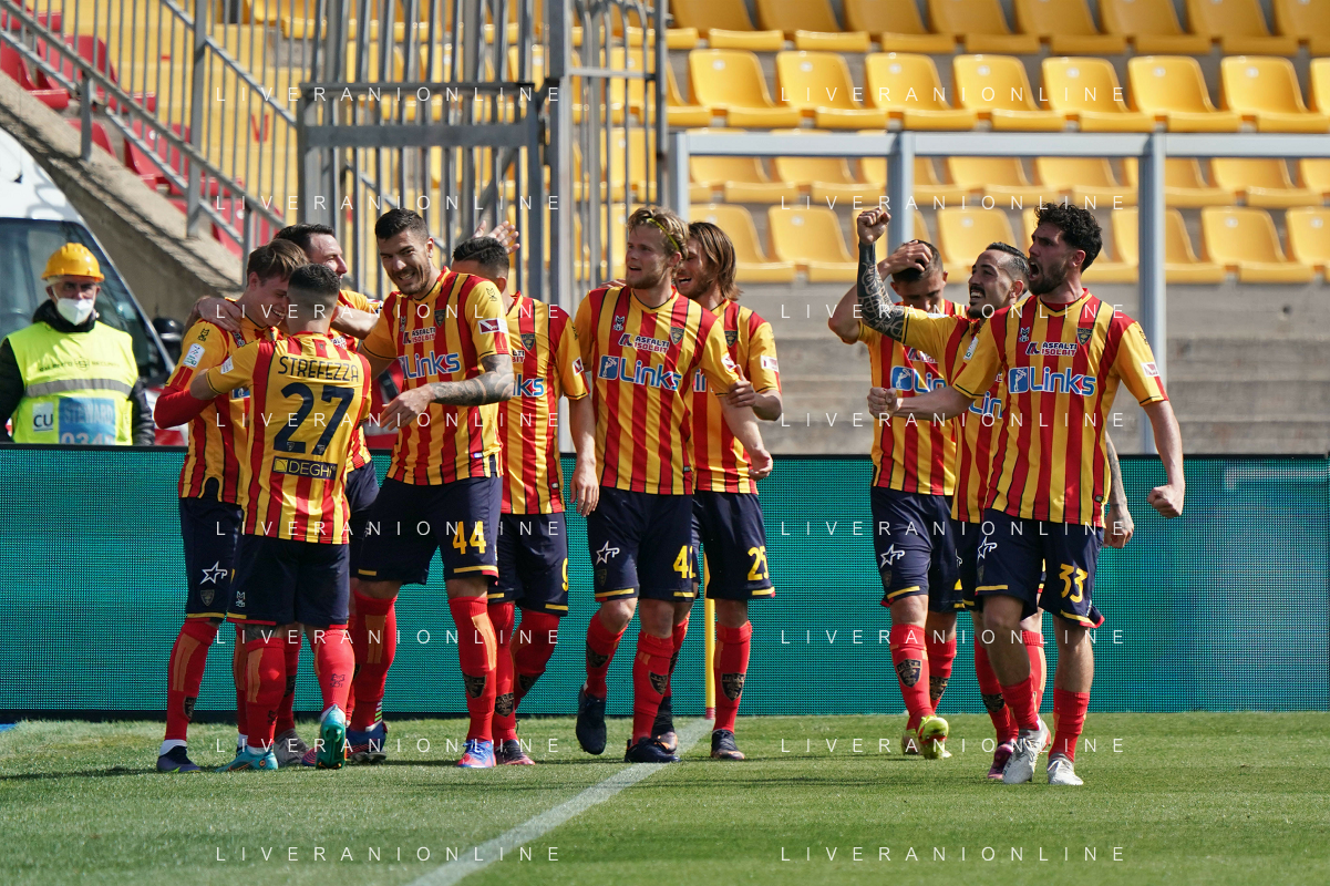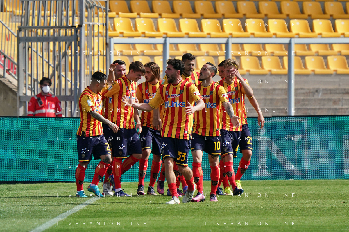Emmanuele Mastrodonato/LMedia - US Lecce vs SPAL - Italian soccer Serie B match 2021/2022 April 09 2022 - Stadio Via del Mare Lecce, Italy US Lecce vs SPAL Photo showing: US Lecce celebrates after scoring a goal @Emmanuele Mastrodonato/LiveMedia /AGENZIA ALDO LIVERANI SAS