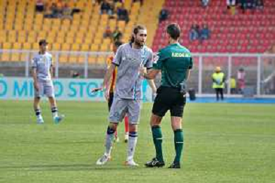 Emmanuele Mastrodonato/LMedia - US Lecce vs SPAL - Italian soccer Serie B match 2021/2022 April 09 2022 - Stadio Via del Mare Lecce, Italy US Lecce vs SPAL Photo showing: Niccolo Zanellato (Spal) and the referee Matteo Marchetti di Ostia Lido - arbitro @Emmanuele Mastrodonato/LiveMedia /AGENZIA ALDO LIVERANI SAS