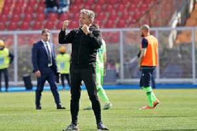 Emmanuele Mastrodonato/LMedia - US Lecce vs SPAL - Italian soccer Serie B match 2021/2022 April 09 2022 - Stadio Via del Mare Lecce, Italy US Lecce vs SPAL Photo showing: coach Marco Baroni (US Lecce) esultanza @Emmanuele Mastrodonato/LiveMedia /AGENZIA ALDO LIVERANI SAS