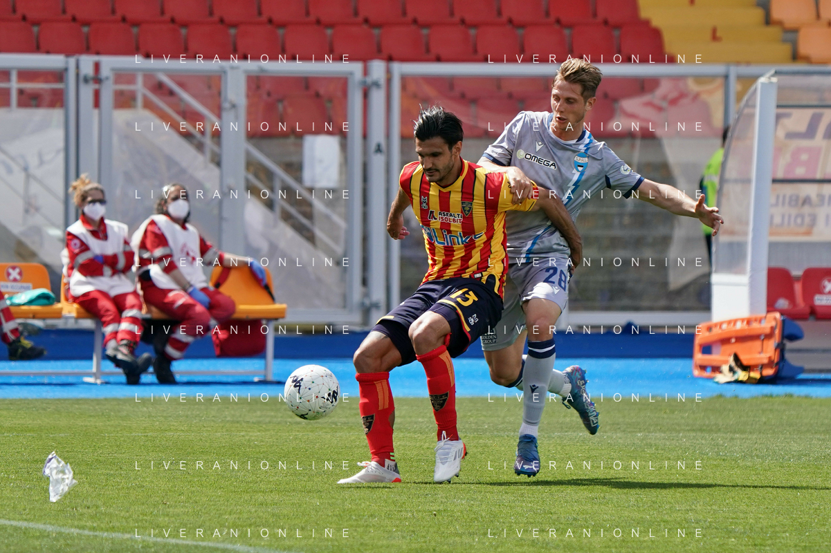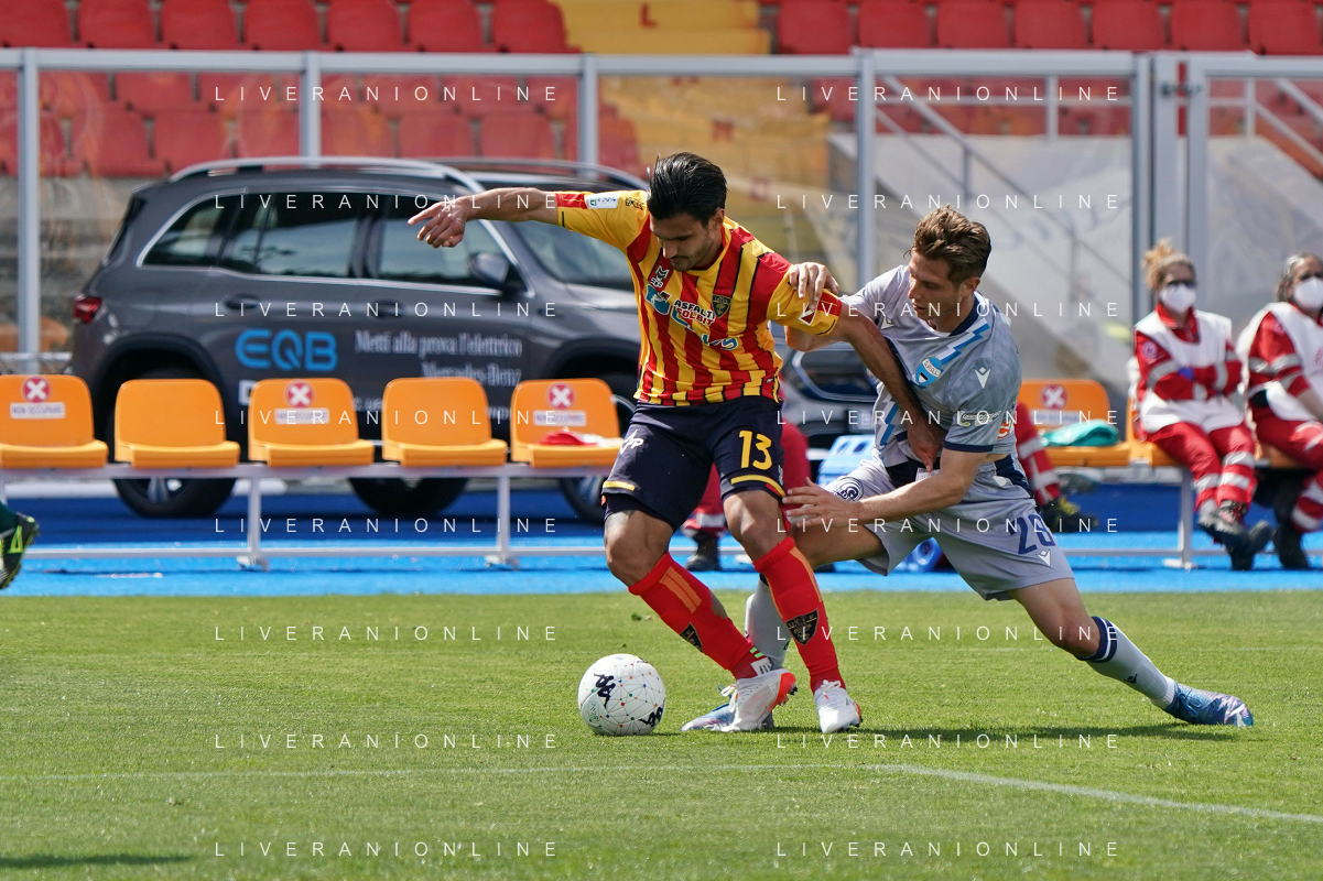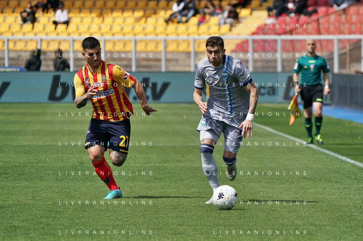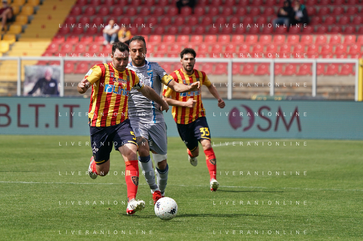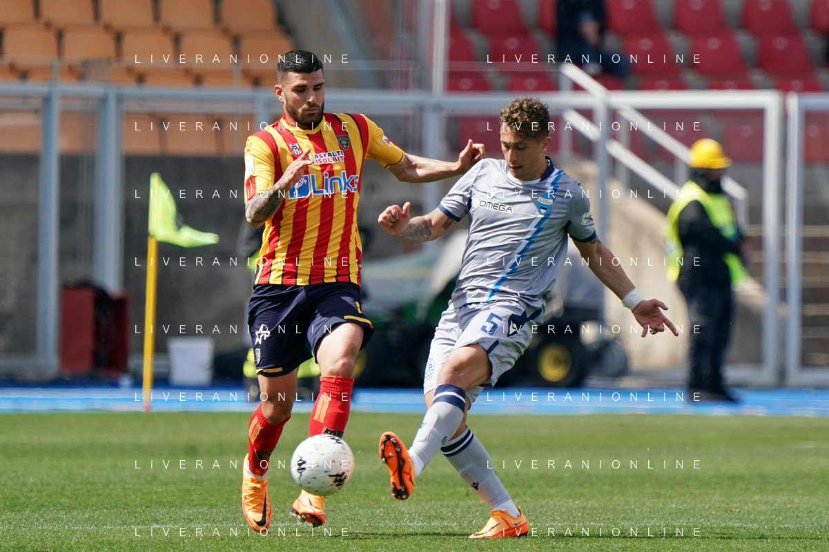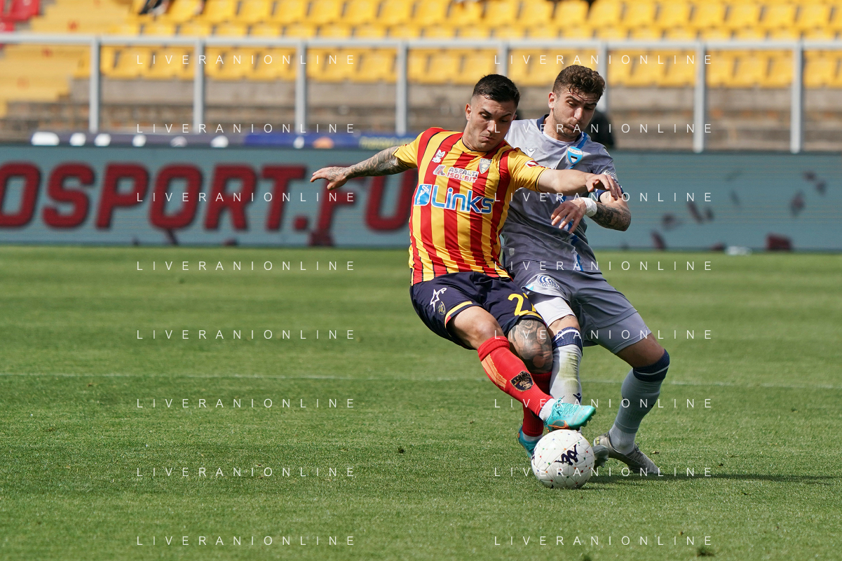 Emmanuele Mastrodonato/LMedia - US Lecce vs SPAL - Italian soccer Serie B match 2021/2022 April 09 2022 - Stadio Via del Mare Lecce, Italy US Lecce vs SPAL Photo showing: Fabio Lucioni (US Lecce) and Marco Mancosu (Spal) @Emmanuele Mastrodonato/LiveMedia /AGENZIA ALDO LIVERANI SAS