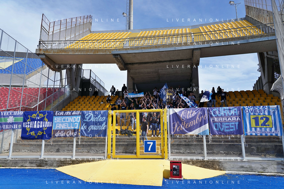 Emmanuele Mastrodonato/LMedia - US Lecce vs SPAL - Italian soccer Serie B match 2021/2022 April 09 2022 - Stadio Via del Mare Lecce, Italy US Lecce vs SPAL Photo showing: Spal Supporters - tifosi @Emmanuele Mastrodonato/LiveMedia /AGENZIA ALDO LIVERANI SAS