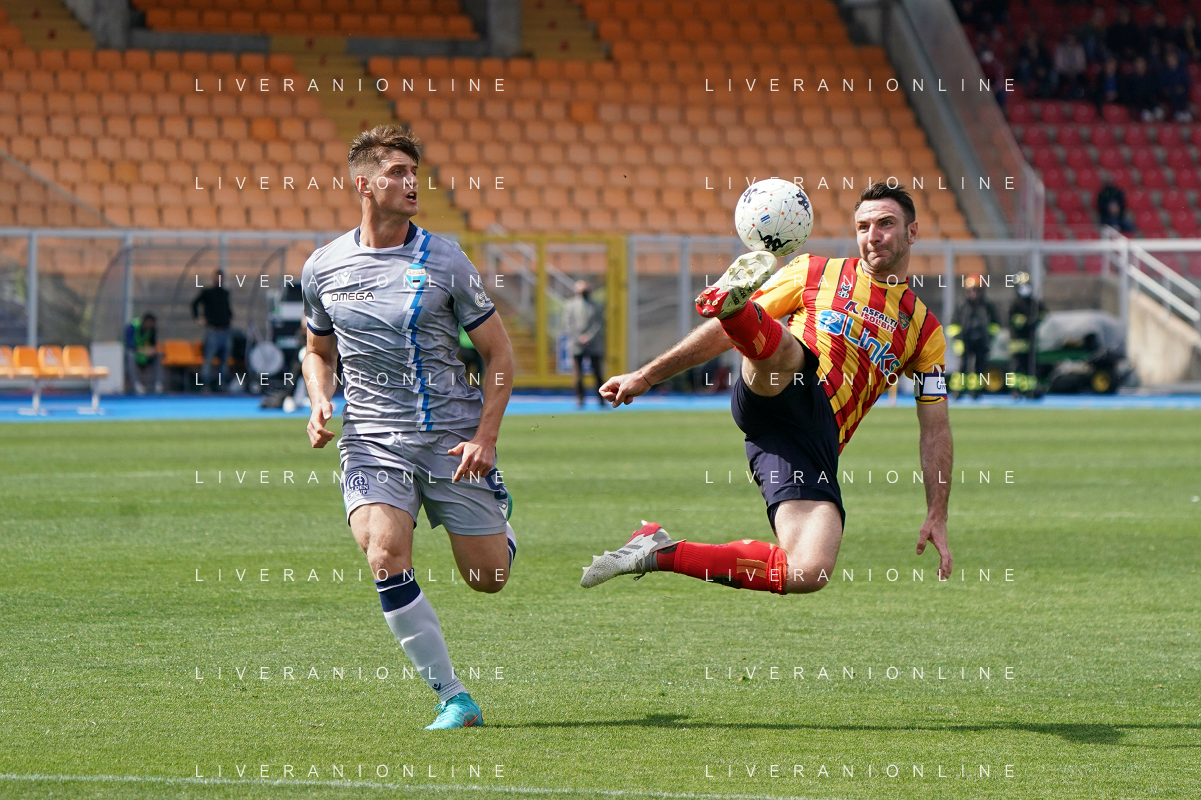 Emmanuele Mastrodonato/LMedia - US Lecce vs SPAL - Italian soccer Serie B match 2021/2022 April 09 2022 - Stadio Via del Mare Lecce, Italy US Lecce vs SPAL Photo showing: Francesco Di Mariano (US Lecce) and Marco Mancosu (Spal) @Emmanuele Mastrodonato/LiveMedia /AGENZIA ALDO LIVERANI SAS