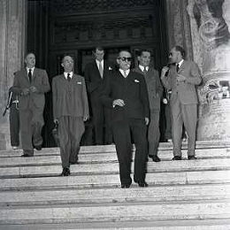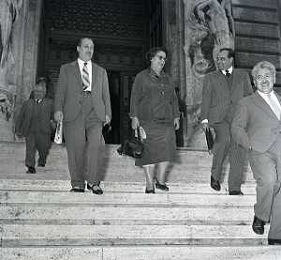 1955 ROMA ELEZIONI A PRESIDENTE DELLA REPUBBLICA GIOVANNI GRONCHI NELLA FOTO DEPUTATI E SENATORI DOPO LA RIUNIONE FOTO SANDRO VESPASIANI-AG ALDO LIVERANI SAS
