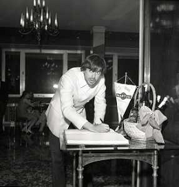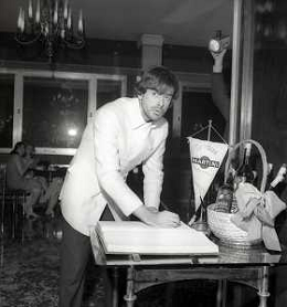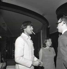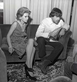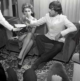 RETROSPETTIVA TOMAS MILIAN PSEUDONIMO DI TOMAS QUINTIN RODRIGUEZ ATTORE NELLA FOTO TOMAS MILIAN CON LA MOGLIE RITA VALLETTI A MILANO TERRAZZA MARTINI NELL'ANNO 1967 AG ALDO LIVERANI SAS
