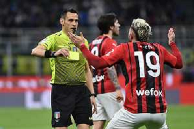l'arbitro Maurizio Mariani di Aprilia (LT) ammonisce Theo Hernandez (Milan) Inter vs Milan Coppa Italia Frecciarossa - semifinale gara di ritorno Milano 19-04-2022 Stadio Giuseppe Meazza - San Siro foto Roberto Garavaglia/ag. Aldo Liverani sas /AGENZIA ALDO LIVERANI SAS