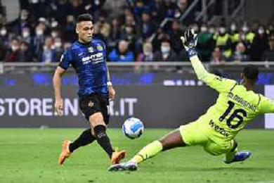 Lautaro Martinez (Inter) segna il gol dell'1 a 0 Inter vs Milan Coppa Italia Frecciarossa - semifinale gara di ritorno Milano 19-04-2022 Stadio Giuseppe Meazza - San Siro foto Roberto Garavaglia/ag. Aldo Liverani sas /AGENZIA ALDO LIVERANI SAS