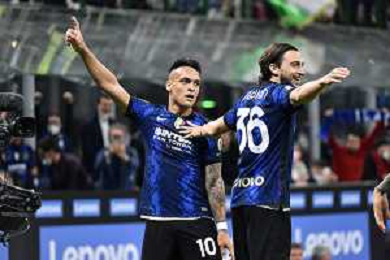 esultanza Inter dopo il gol del 2 a 0 Lautaro Martinez Inter vs Milan Coppa Italia Frecciarossa - semifinale gara di ritorno Milano 19-04-2022 Stadio Giuseppe Meazza - San Siro foto Roberto Garavaglia/ag. Aldo Liverani sas /AGENZIA ALDO LIVERANI SAS
