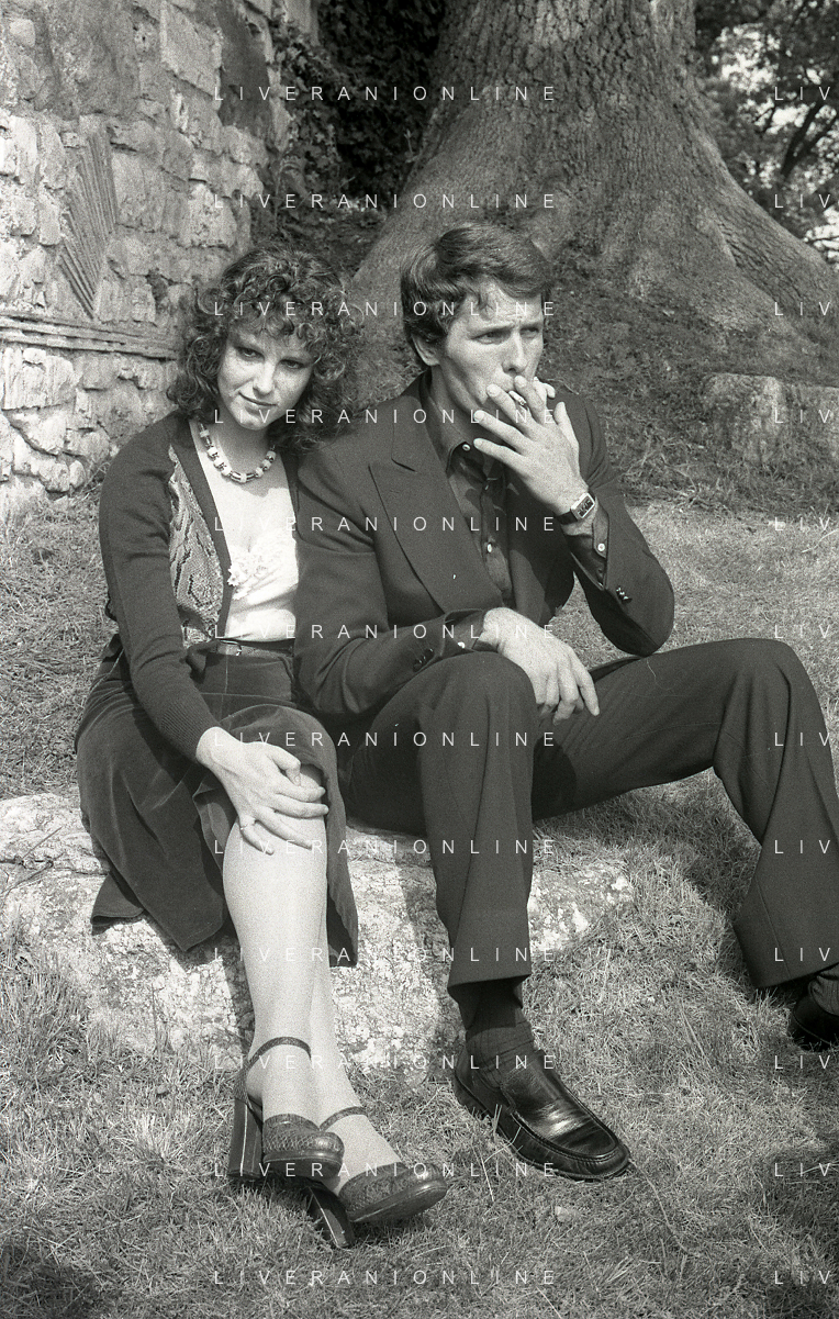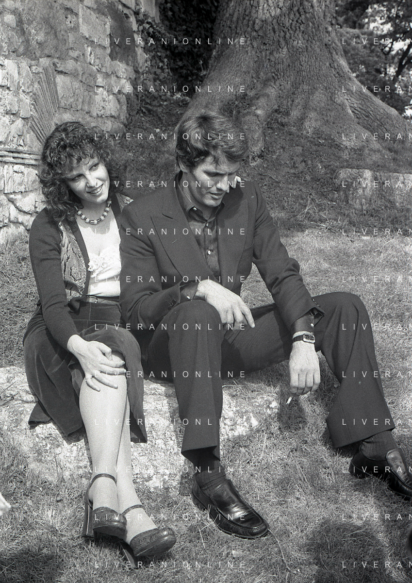 NEG-RETROSPETTIVA STEFANIA SANDRELLI ATTRICE NELLA FOTO STEFANIA SANDRELLI CON GIULIANO GEMMA AL FESTIVAL INTERNAZIONALE DEL CINEMA A CANNES ANNO 1974 AG ALDO LIVERANI SAS