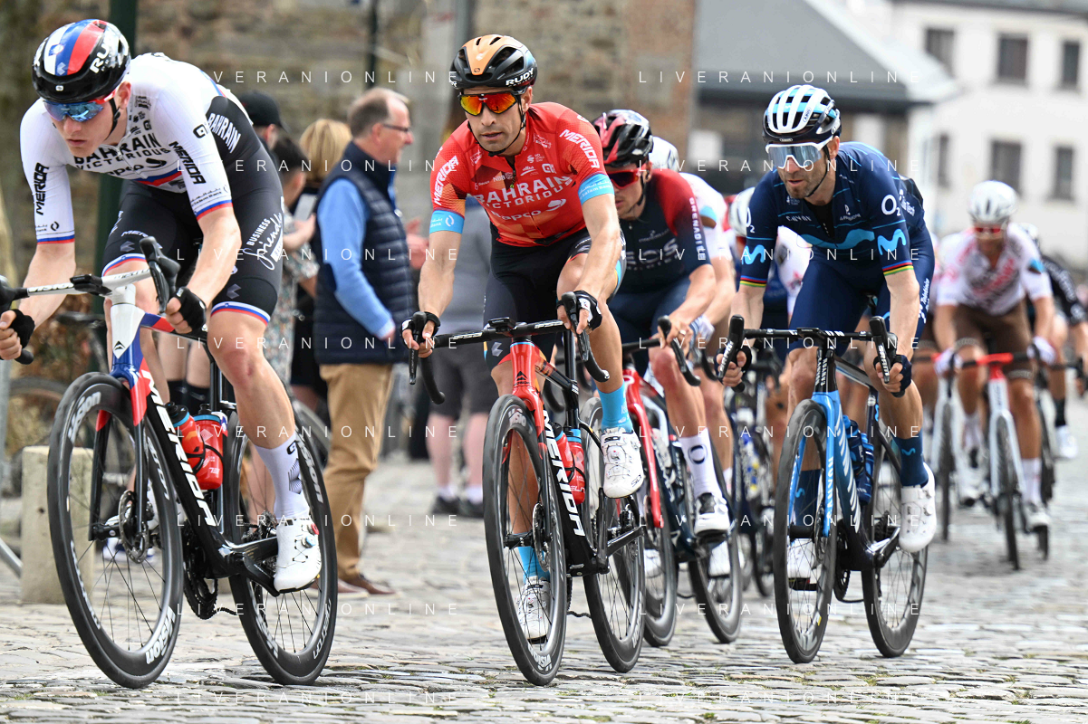 24-04-2022 Liege - Bastogne - Liege; 2022, Bahrain - Victorious; 2022, Movistar; Mohoric, Matej; Landa Meana, Mikel; Valverde, Alejandro; Stavelot; ©SIROTTI/ AGENZIA ALDO LIVERANI SAS
