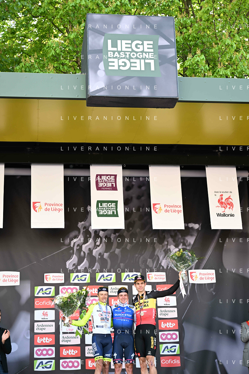 24-04-2022 Liege - Bastogne - Liege; 2022, Quick Step - Alpha Vinyl; 2022, Intermarche - Wanty Gobert; 2022, Jumbo - Visma; Evenepoel, Remco; Hermans, Quinten; Van Aert, Wout; Liegi; ©SIROTTI/ AGENZIA ALDO LIVERANI SAS