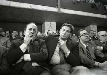 RETROSPETTIVA LUCIANO LAMA POLITICO NELL FOTO LUCIANO LAMA A ROMA AL CONGRESSO DEL PARTITO SOCIALISTA ITALIANO NELL'ANNO 1976 CON ENRICO BERLINGUER AG ALDO LIVERANI SAS