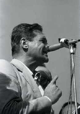RETROSPETTIVA LUCIANO LAMA POLITICO NELL FOTO IL SINDACO DI MILANO CARLO TOGNOLI NELL'ANNO 1980 AL COMIZIO DI LUCIANO LAMA AG ALDO LIVERANI SAS