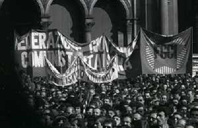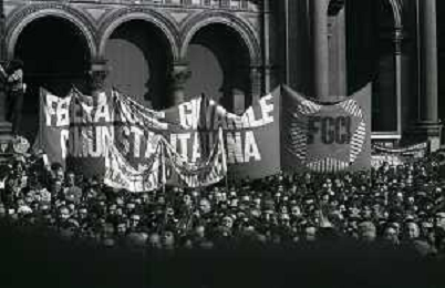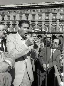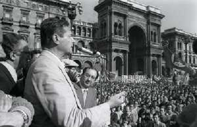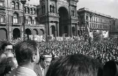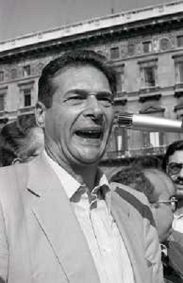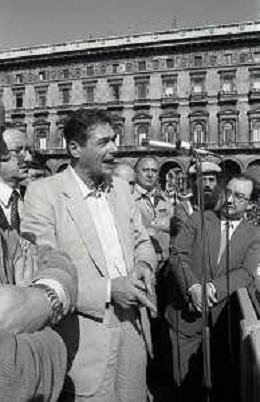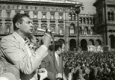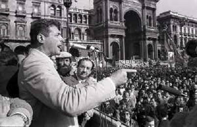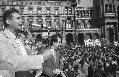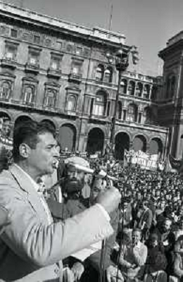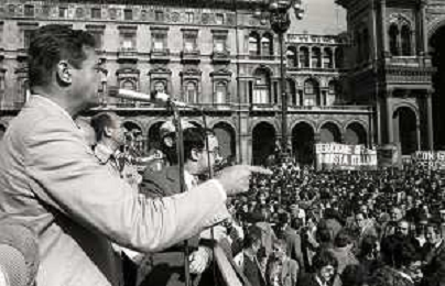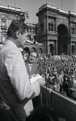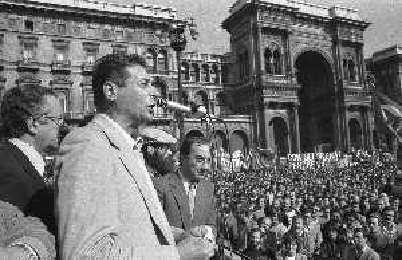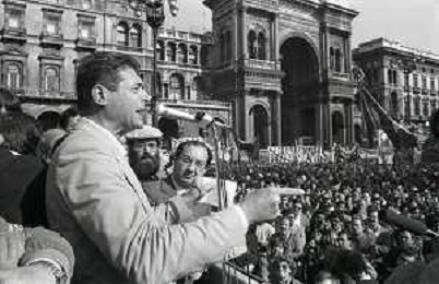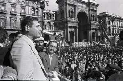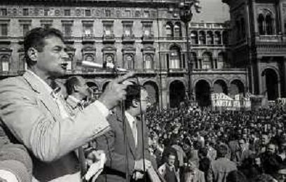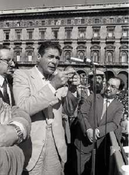 RETROSPETTIVA LUCIANO LAMA POLITICO NELL FOTO LUCIANO LAMA A MILANO IN UN COMIZIO IN PIAZZA DUOMO ALLA PRESENZA DEL SINDACO DI MILANO CARLO TOGNOLI NELL'ANNO 1980 AG ALDO LIVERANI SAS