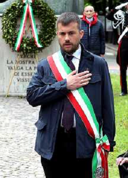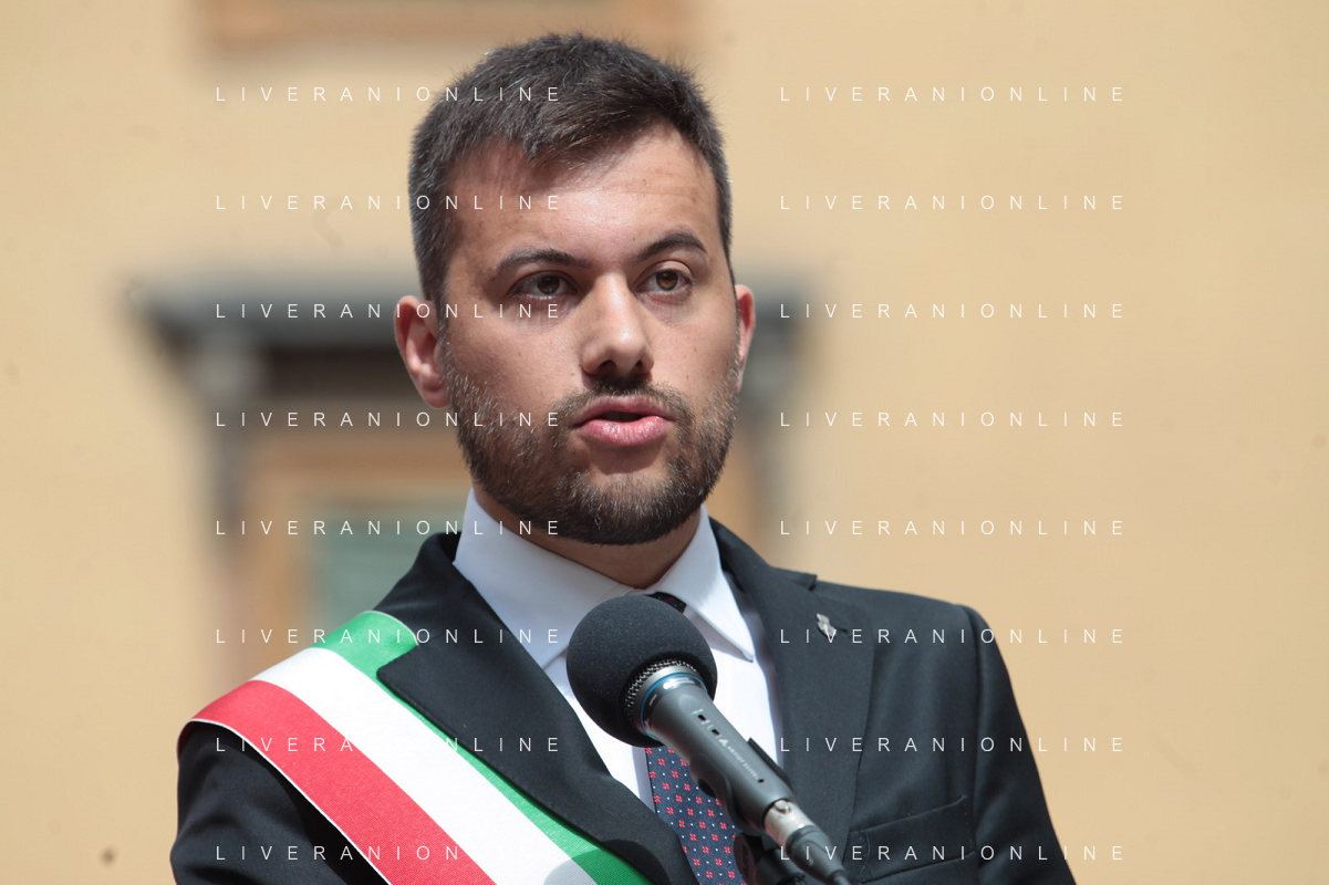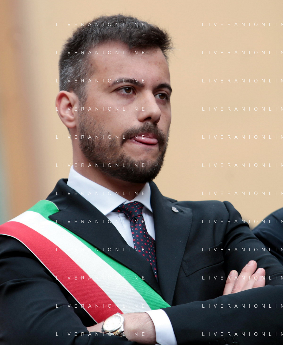 IMOLA 25/04 2022 77 ANNIVERSARIO DELLA LIBERAZIONE D'ITALIA NELLA FOTO INTERVENTO DEL SINDACO MARCO PANIERI IN PIAZZA GRAMSCI FOTO GIANNI SANNA-AG ALDO LIVERANI SAS