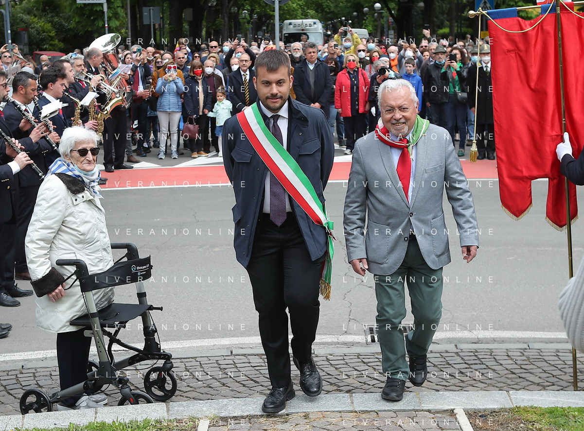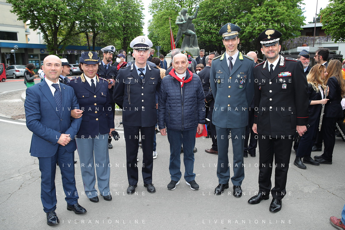 IMOLA 25/04 2022 77 ANNIVERSARIO DELLA LIBERAZIONE D'ITALIA NELLA FOTO PARTIGIANO VITTORIO GARDI CON LE FORZE DELL'ORDINE FOTO GIANNI SANNA-AG ALDO LIVERANI SAS