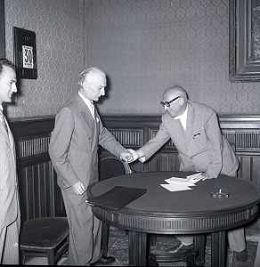 RETROSPETTIVA PIETRO NENNI POLITICO NELLA FOTO NENNI PIETRO A ROMA NELL'ANNO 1953 CON ANTONIO SEGNI AG ALDO LIVERANI SAS
