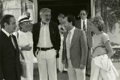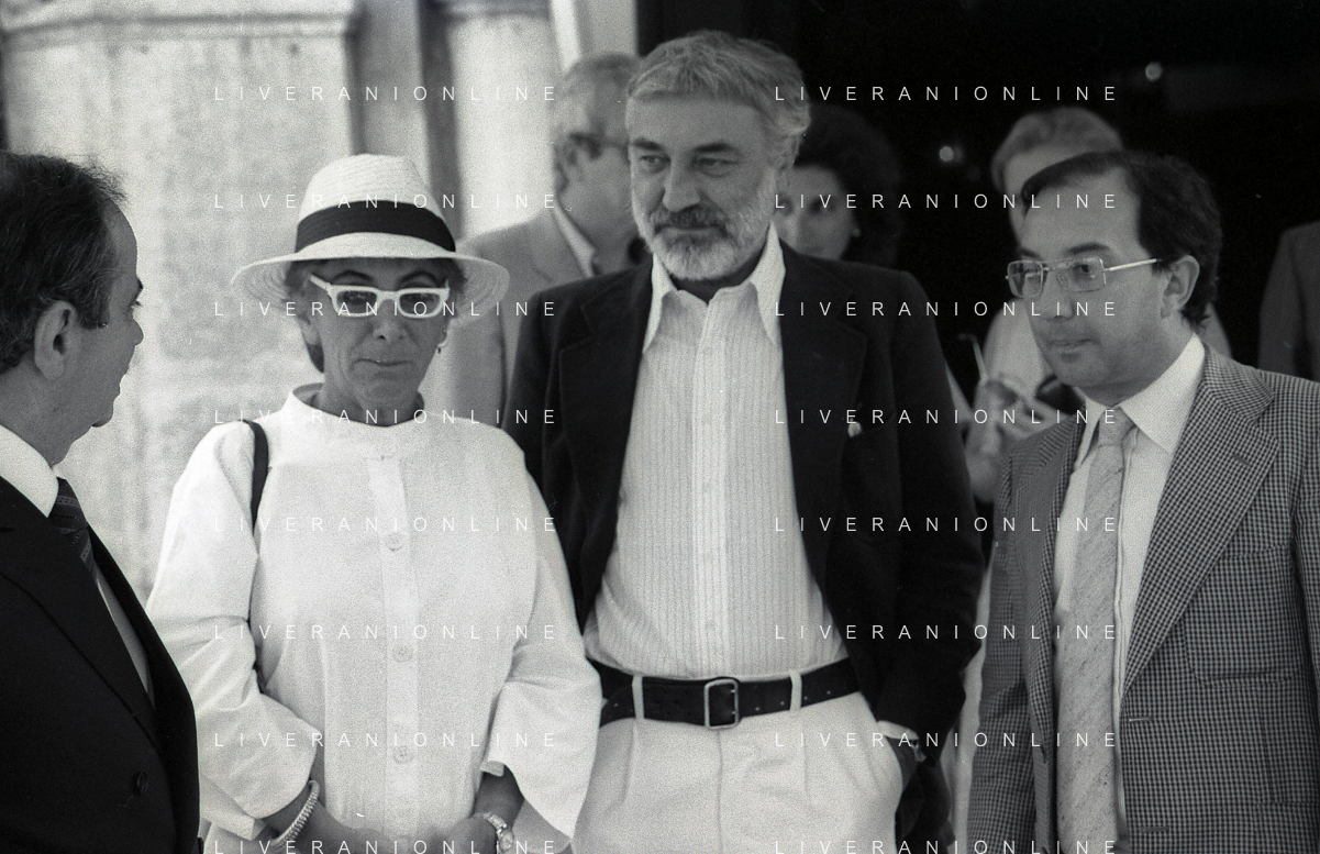 RETROSPETTIVA LINA WERTMULLER REGISTA NELLA FOTO LINA WERTMULLER A VENEZIA CON ENRICO JOB IL SINDACO DI MILANO CARLO TOGNOLI E LA MOGLIE DORINA NELL'ANNO 1979 AG ALDO LIVERANI SAS