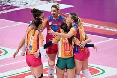 © TVRG esultanza Monza dopo un punto AGIL Volley Igor Gorgonzola Novara vs Vero Volley Monza Novara 27-04-2022 Pala Igor Gorgonzola campionato femminile Serie A1 gara 3 semifinale playoff foto Roberto Garavaglia/ag. Aldo Liverani sas/AGENZIA ALDO LIVERANI SAS