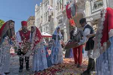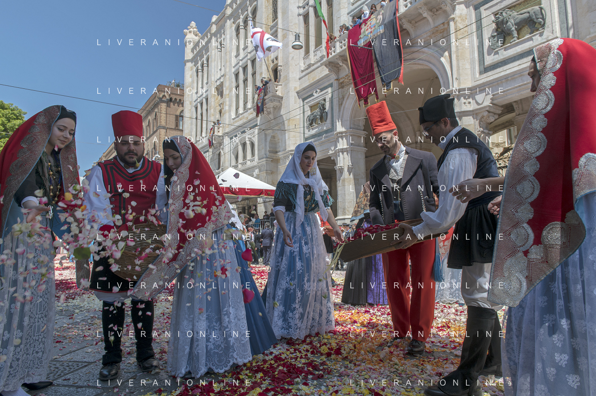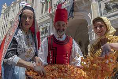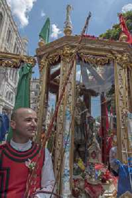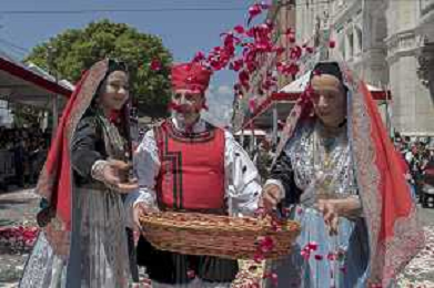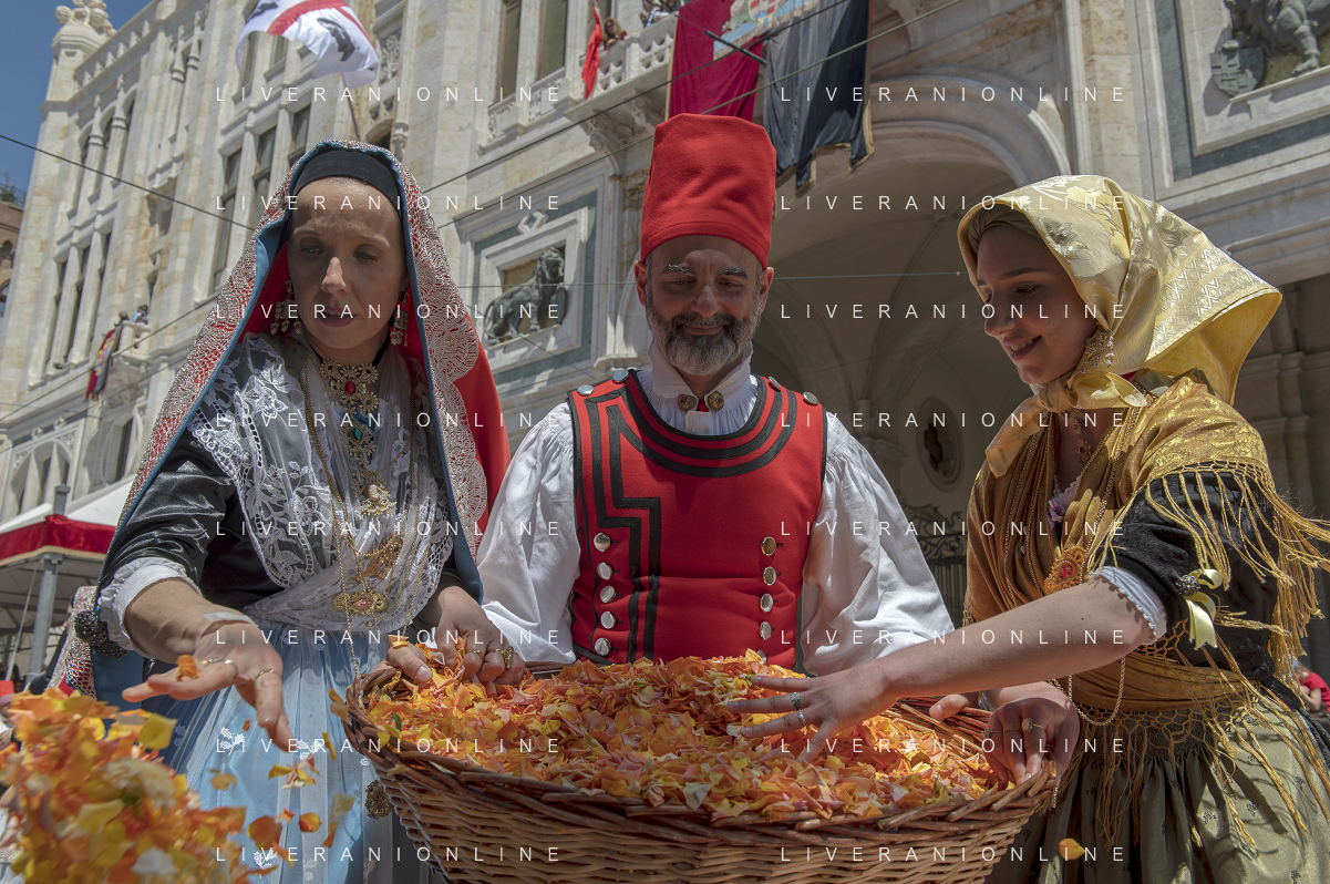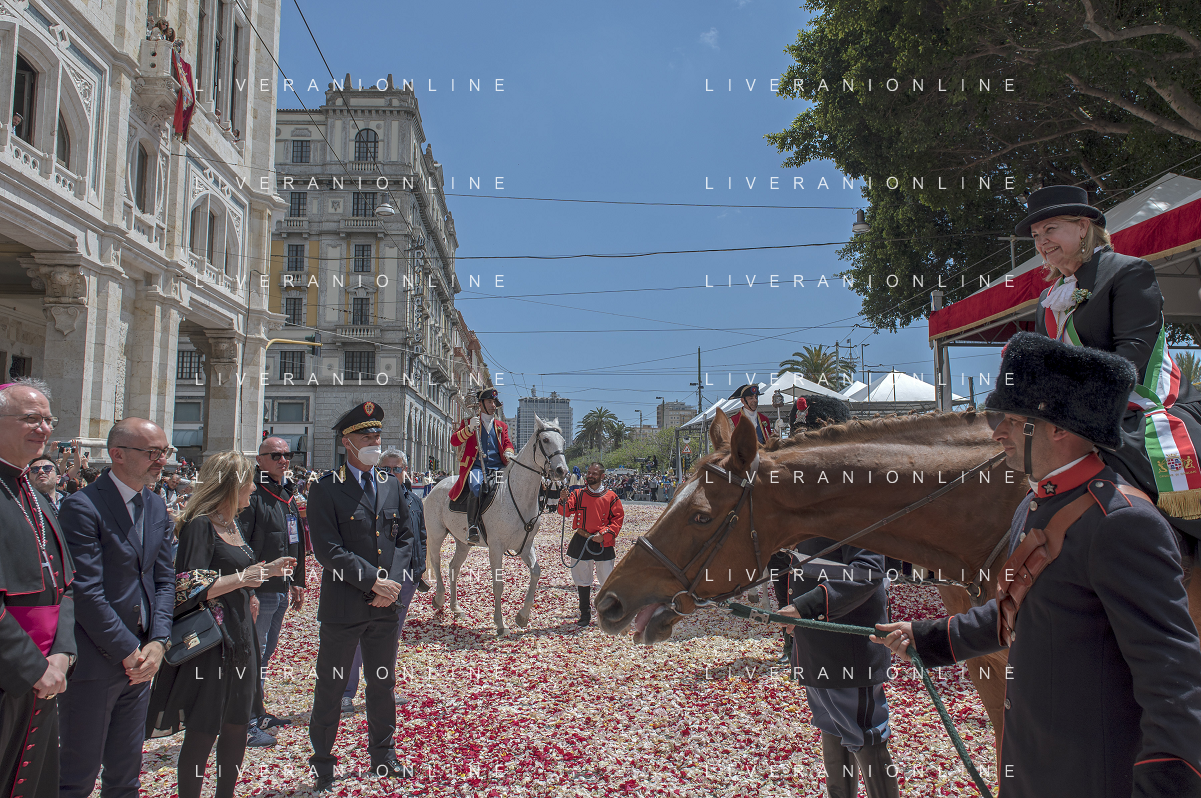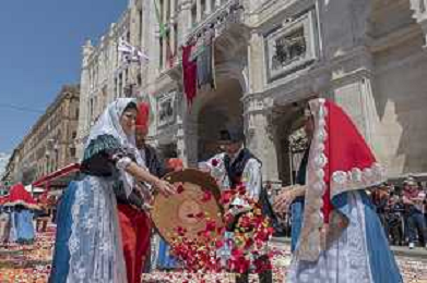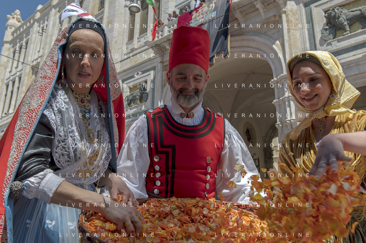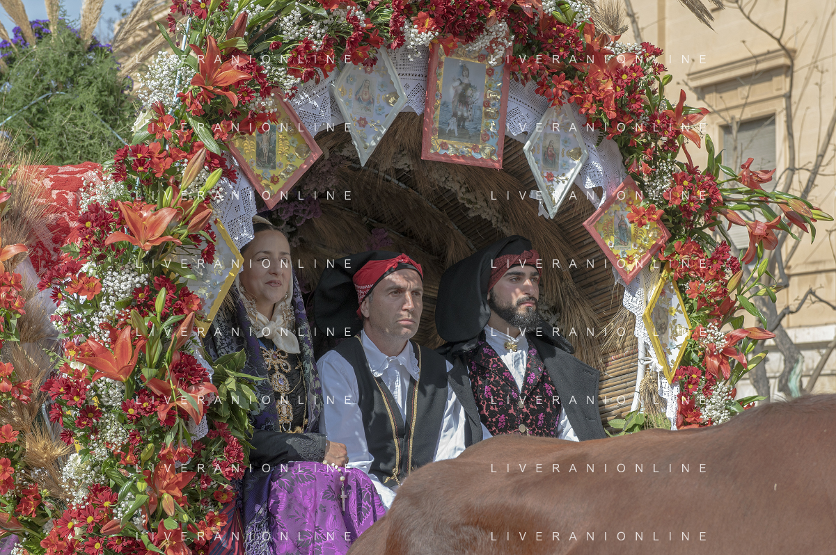 Celebrazioni della 366a Festa di Sant'Efisio Martire, a Cagliari e Sardegna fedeli accompagnano il Santo in questa tradizionale processione. 01.05.2022