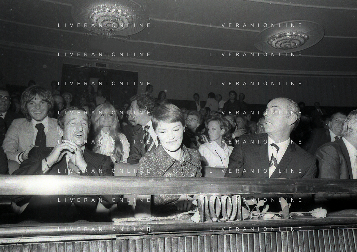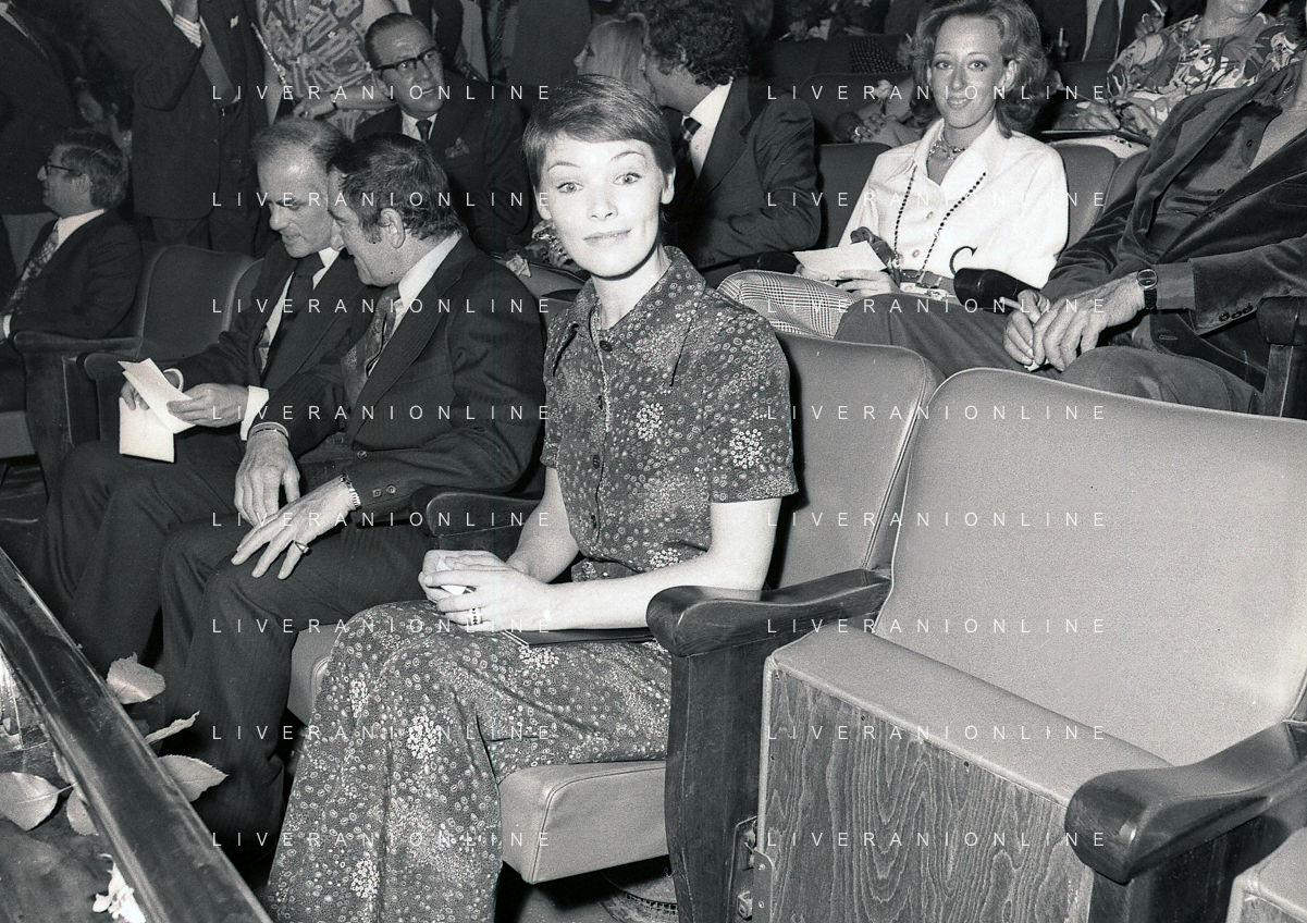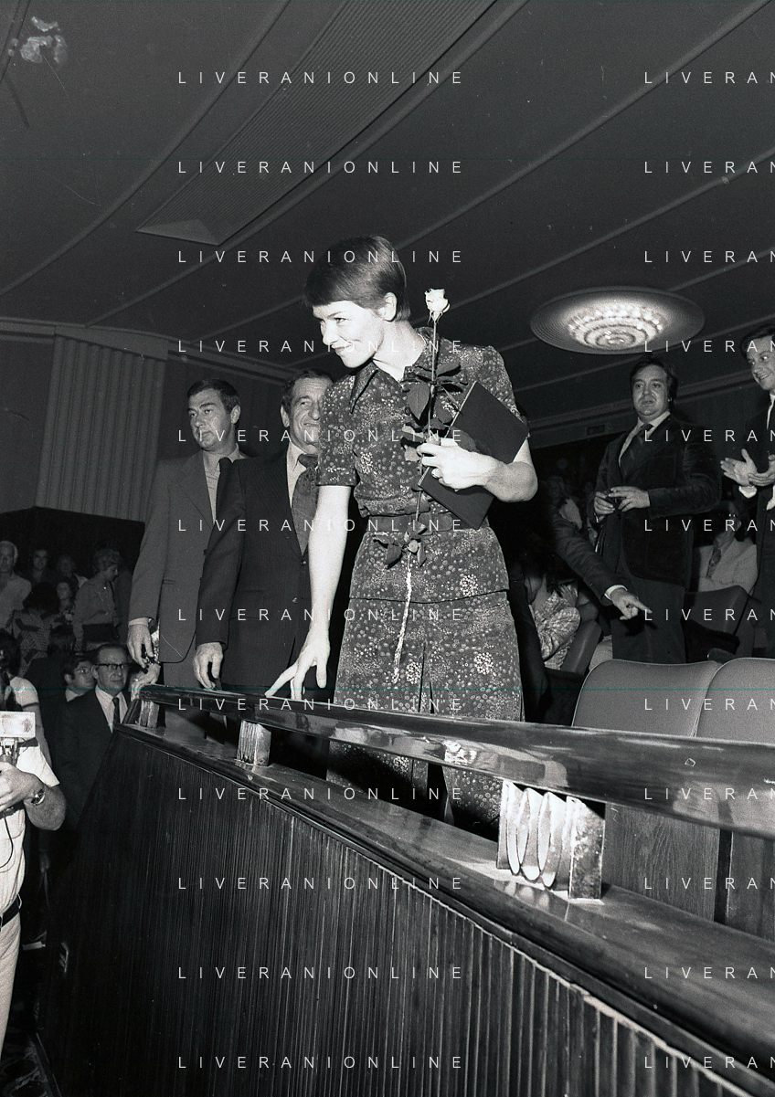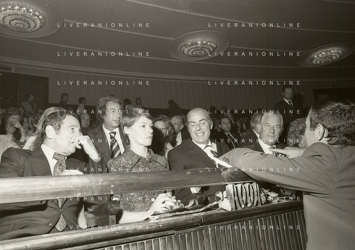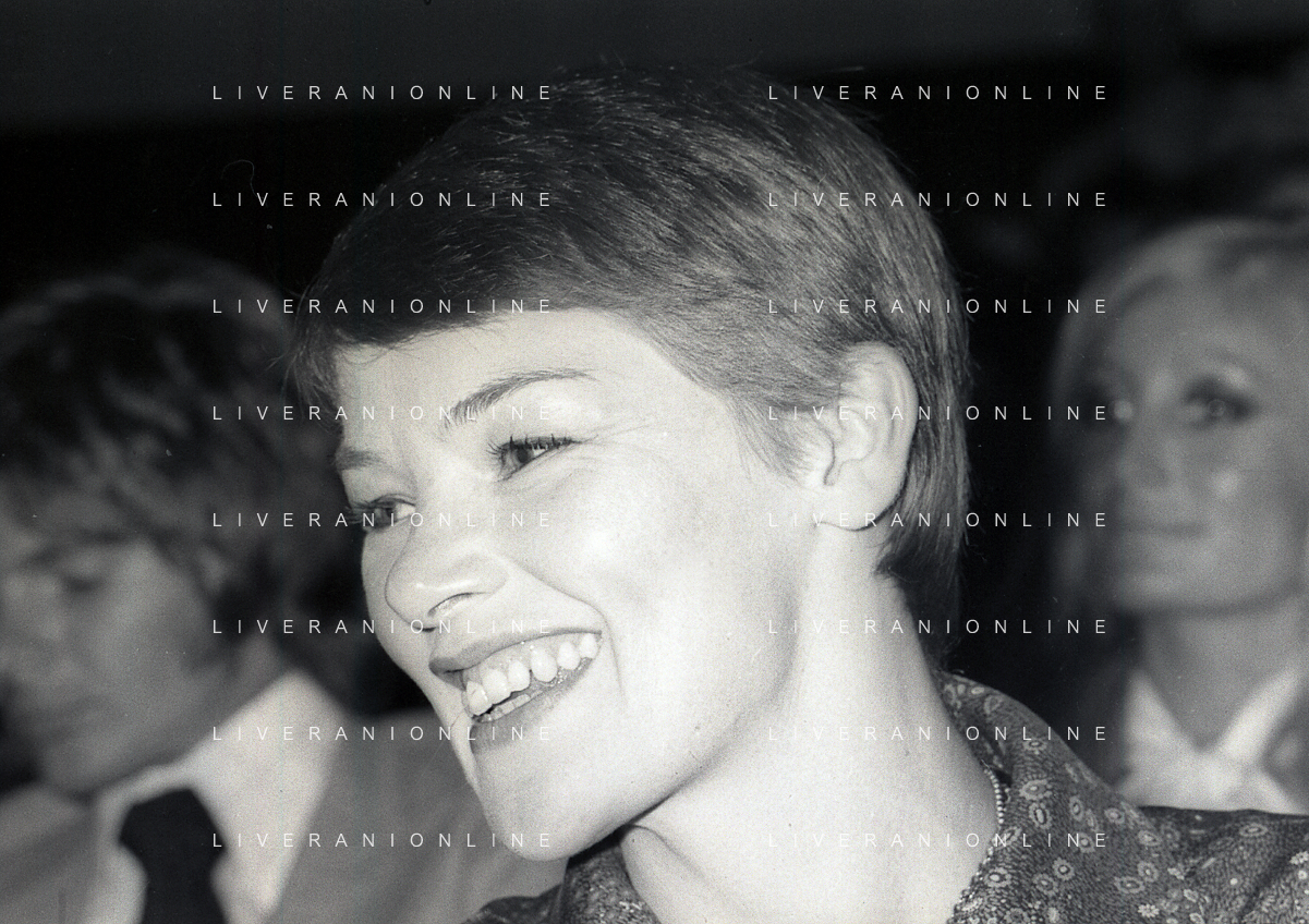 RETROSPETTIVA GLENDA JACKSON ATTRICE NELLA FOTO GLENDA JACKSON A MILANO NELL'ANNO 1973 IVANOE FRAIZZOLI PRESIDENTE INTER CON GIUSEPPE PRISCO E RENATA FRAIZZOLI AG ALDO LIVERANI SAS