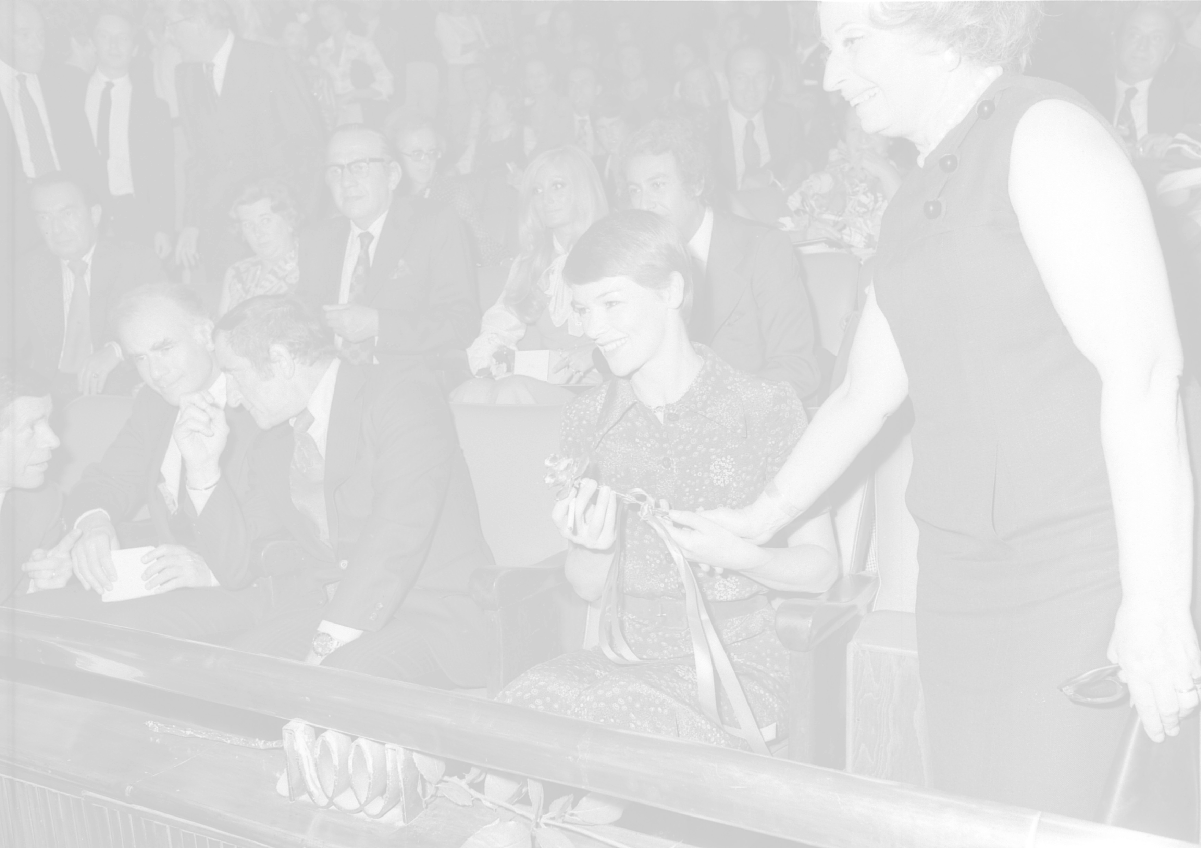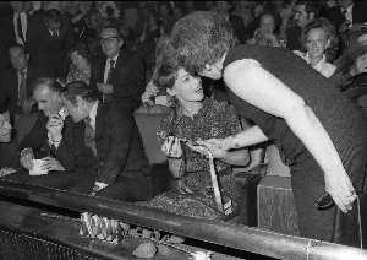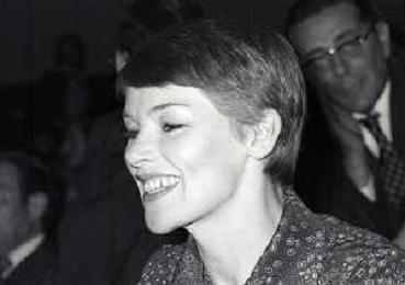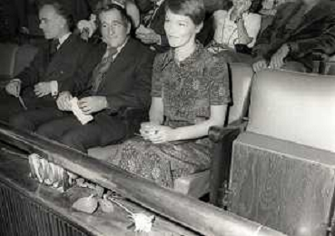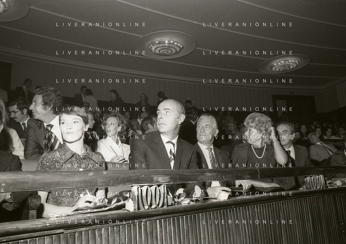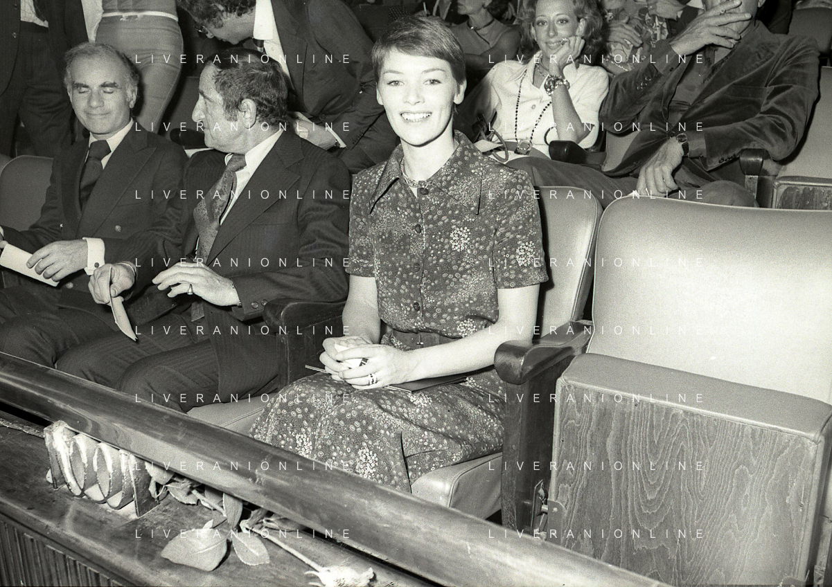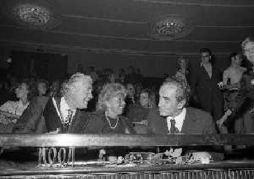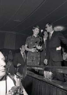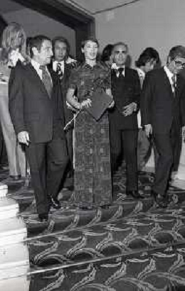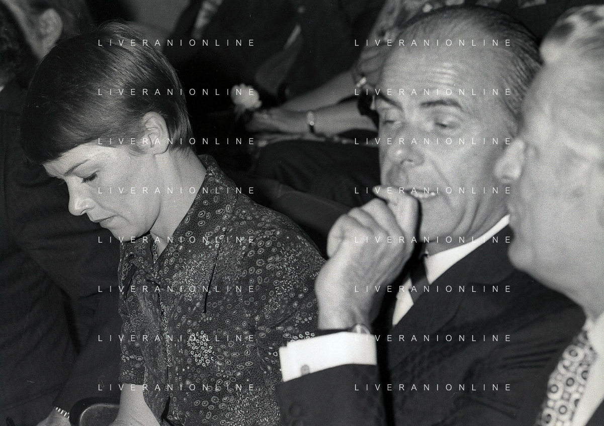 RETROSPETTIVA GLENDA JACKSON ATTRICE NELLA FOTO GLENDA JACKSON A MILANO NELL'ANNO 1973 IVANOE FRAIZZOLI PRESIDENTE INTER CON GIUSEPPE PRISCO E RENATA FRAIZZOLI AG ALDO LIVERANI SAS