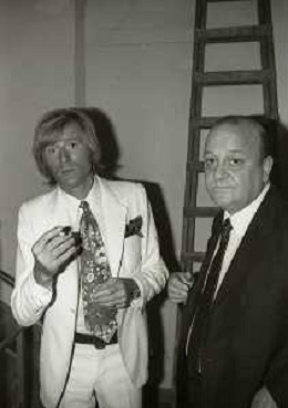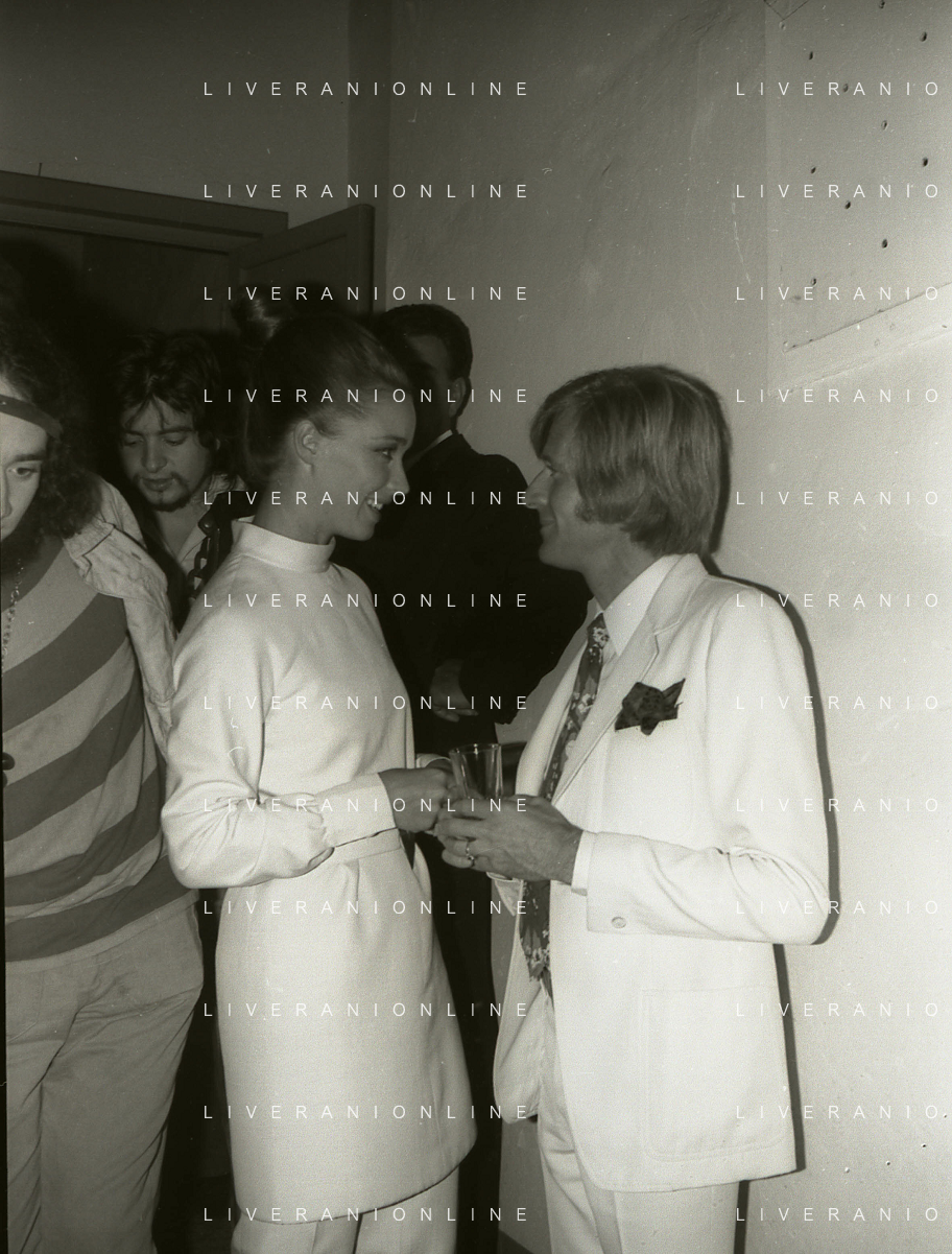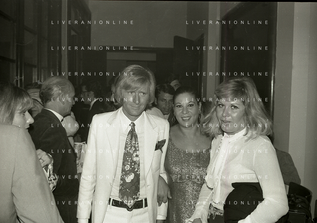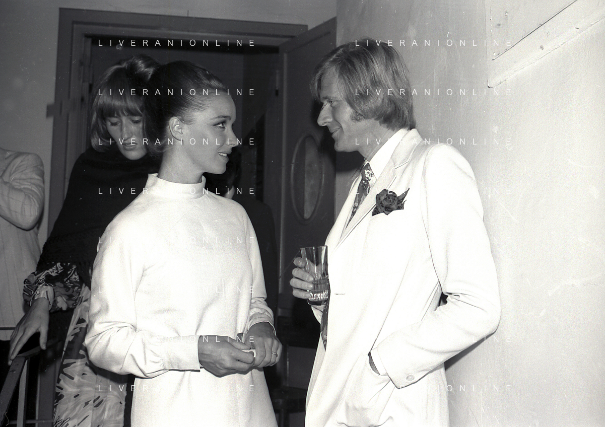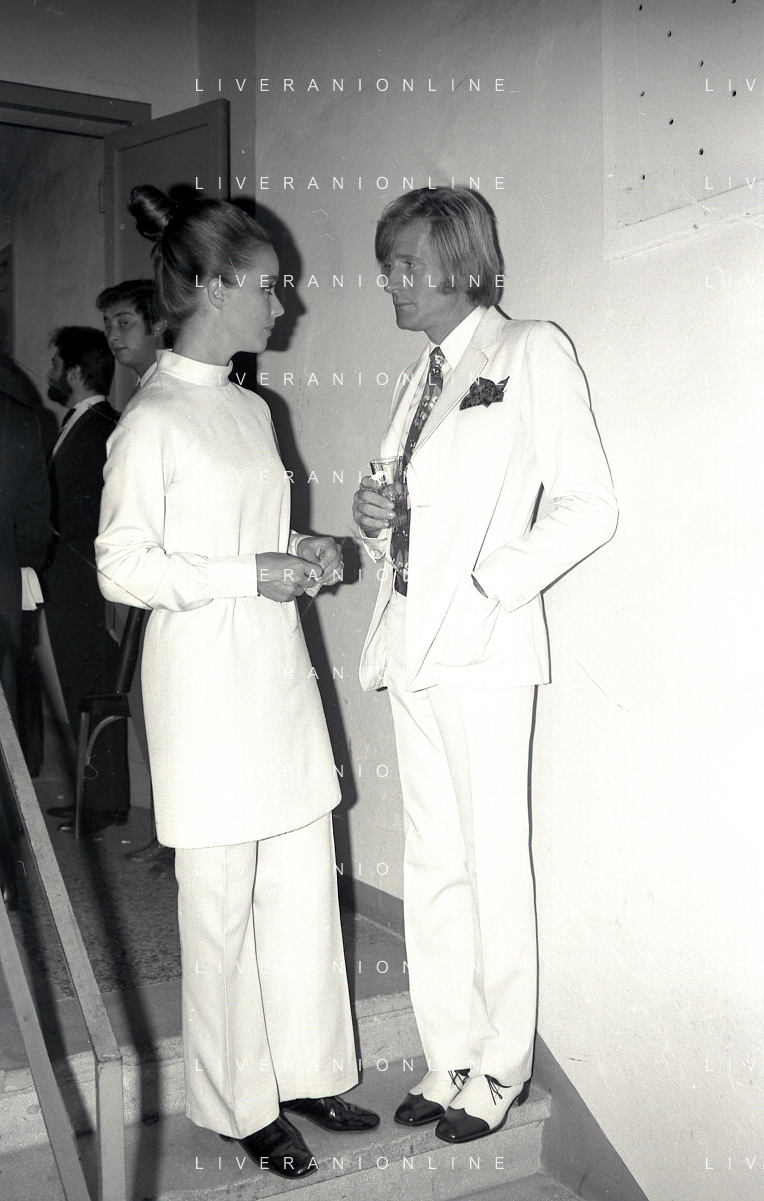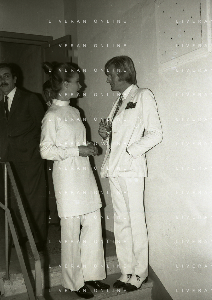 INO FERRER PSEUDONIMO AGOSTINO ARTURO MARIA FERRARI CANTAUTORE ANTROPOLOGO E ETNOLOGO NELLA FOTO NINO FERRER NELL'ANNO 1969 ALLA GONDOLA D'ORO CON ABA CERCATO AG ALDO LIVERANI SAS