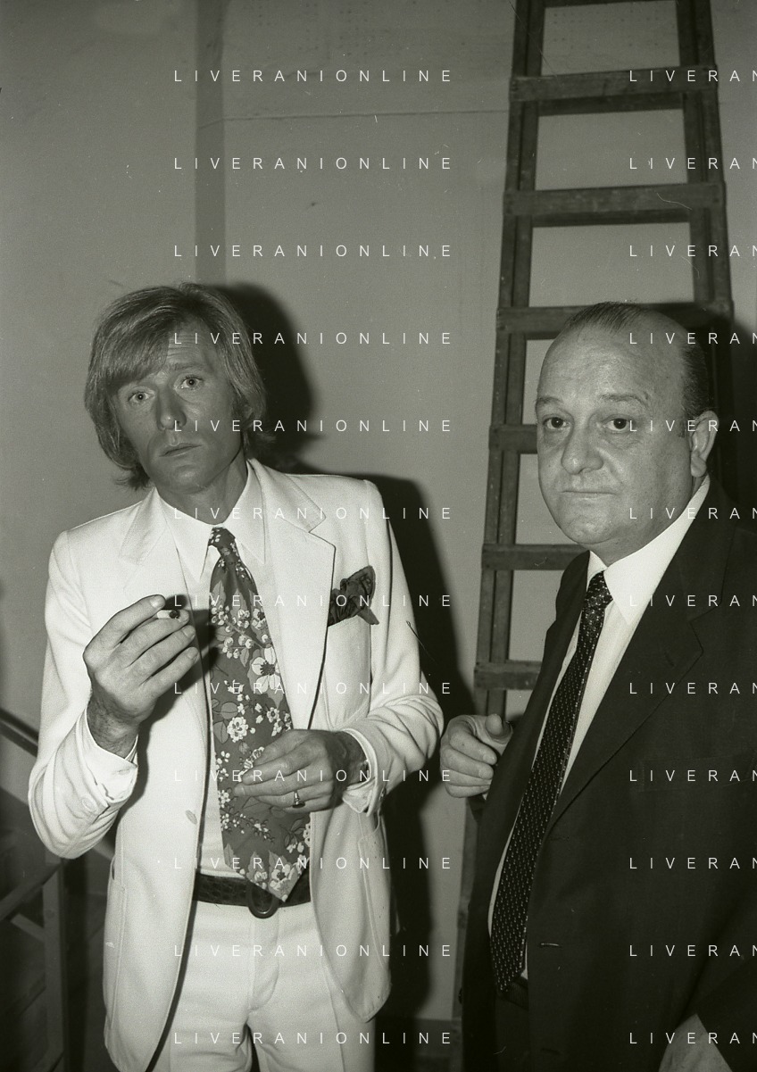 RETROSPETTIVA NINO FERRER PSEUDONIMO AGOSTINO ARTURO MARIA FERRARI CANTAUTORE ANTROPOLOGO E ETNOLOGO NELLA FOTO NINO FERRER NELL'ANNO 1969 ALLA GONDOLA D'ORO CON JHONNY HALLIDAY AG ALDO LIVERANI SAS