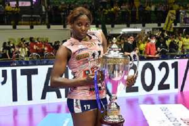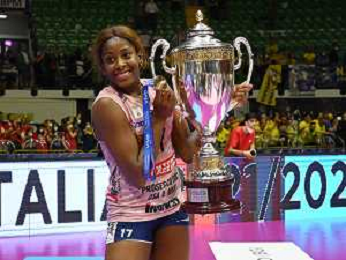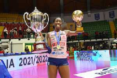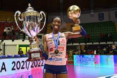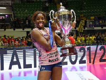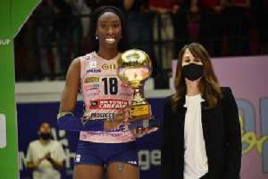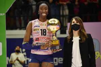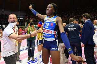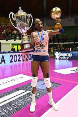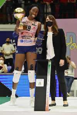 © TVRG Paola Egonu (Imoco Volley Conegliano) premiata come MVP della gara Vero Volley Monza vs Prosecco DOC Imoco Volley Conegliano Monza 10-05-2022 Arena di Monza campionato femminile Serie A1 gara 4 finale playoff scudetto foto Roberto Garavaglia/ag. Aldo Liverani sas/ AGENZIA ALDO LIVERANI SAS