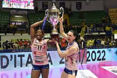 © TVRG Miriam Sylla (Imoco Volley Conegliano) SX e Raphaela Folie (Imoco Volley Conegliano) DX Vero Volley Monza vs Prosecco DOC Imoco Volley Conegliano Monza 10-05-2022 Arena di Monza campionato femminile Serie A1 gara 4 finale playoff scudetto foto Roberto Garavaglia/ag. Aldo Liverani sas/ AGENZIA ALDO LIVERANI SAS