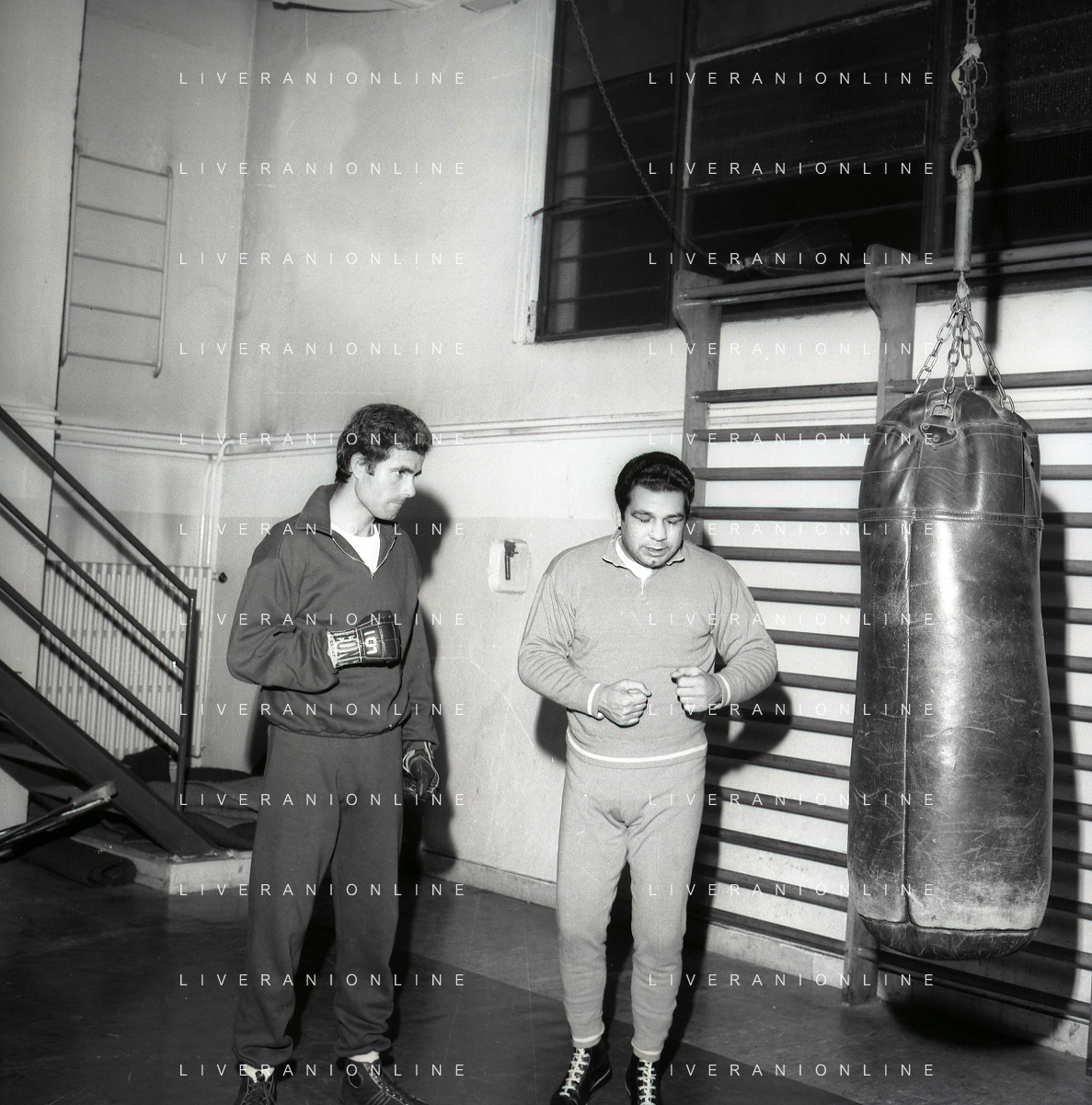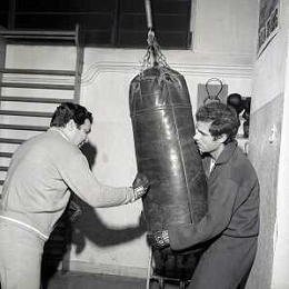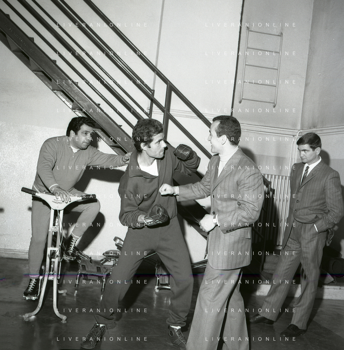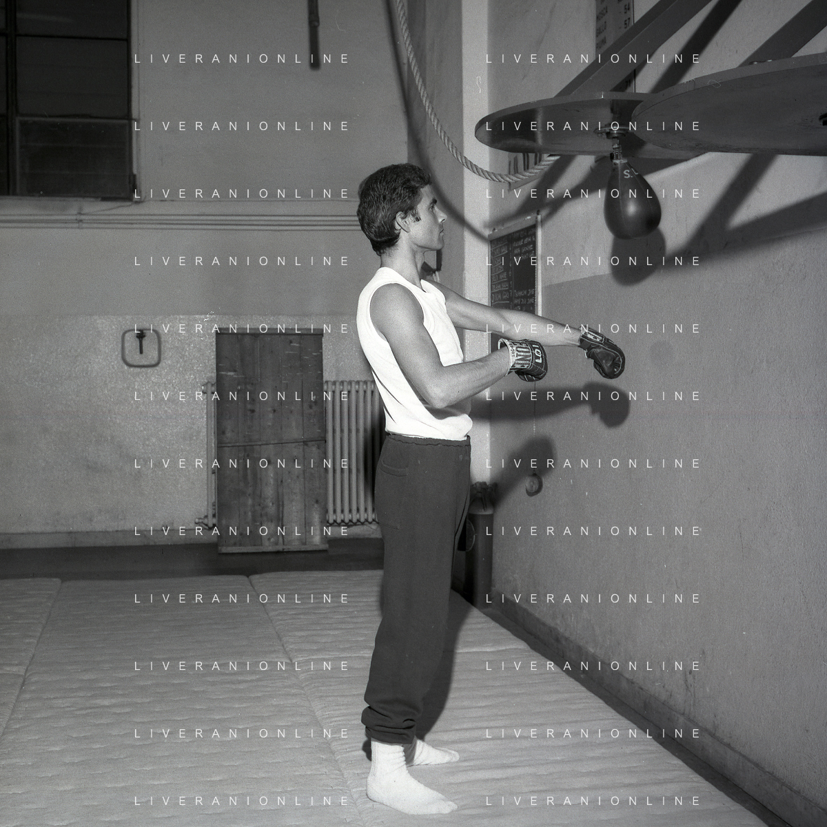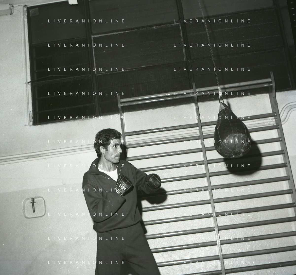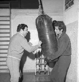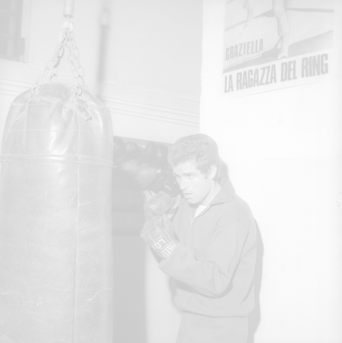 RETROSPETTIVA NINO CASTELNUOVO ATTORE NELLA FOTO NINO CASTELNUOVO A MILANO NELL'ANNO 1968 SI ALLENA NELLA PALESTRA DEL EX PUGILE DUILIO LOI AG ALDO LIVERANI SAS
