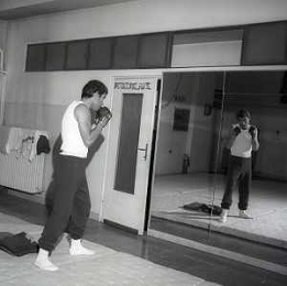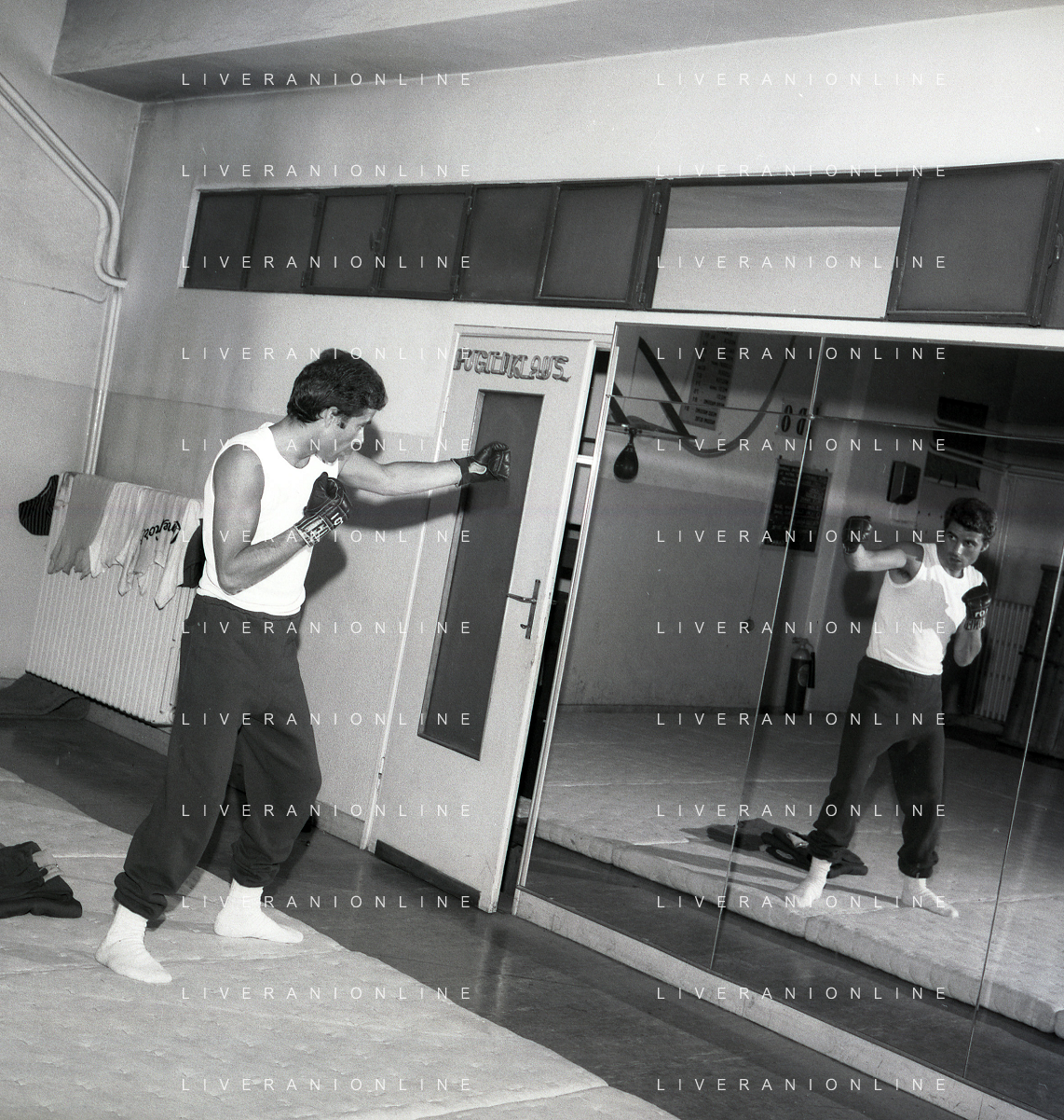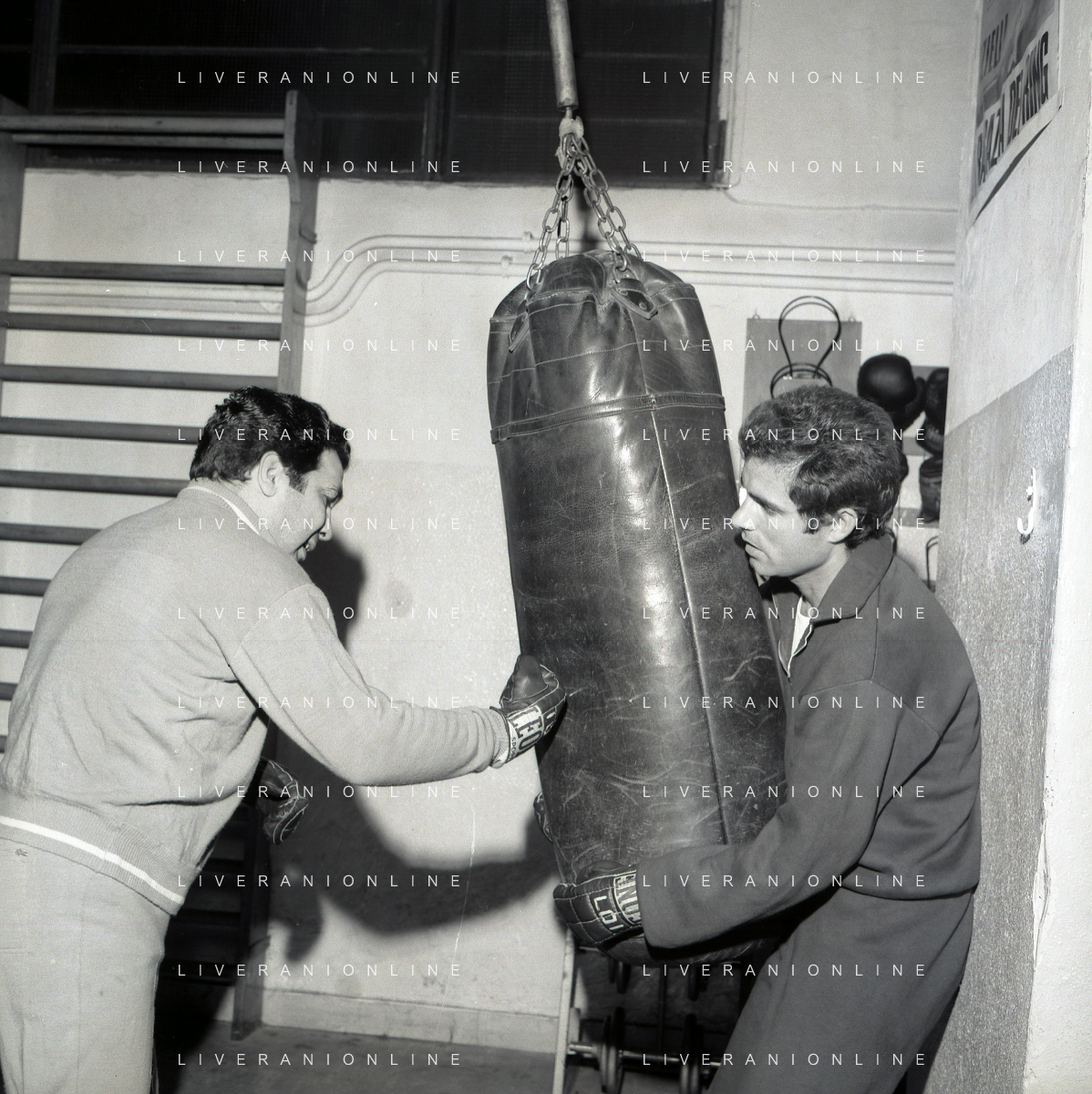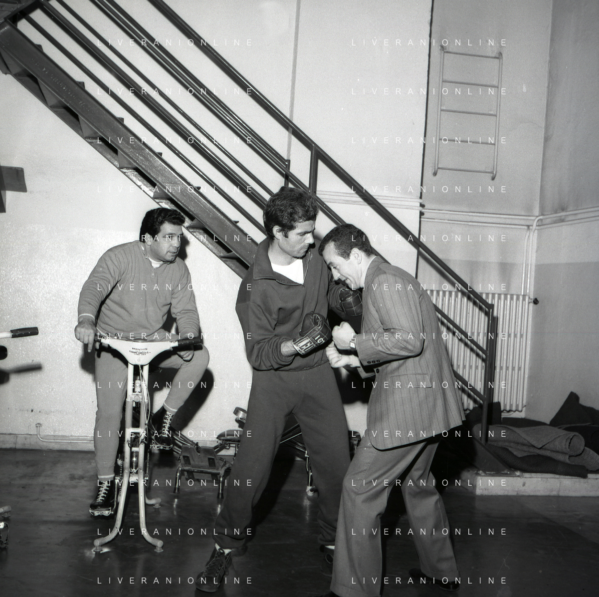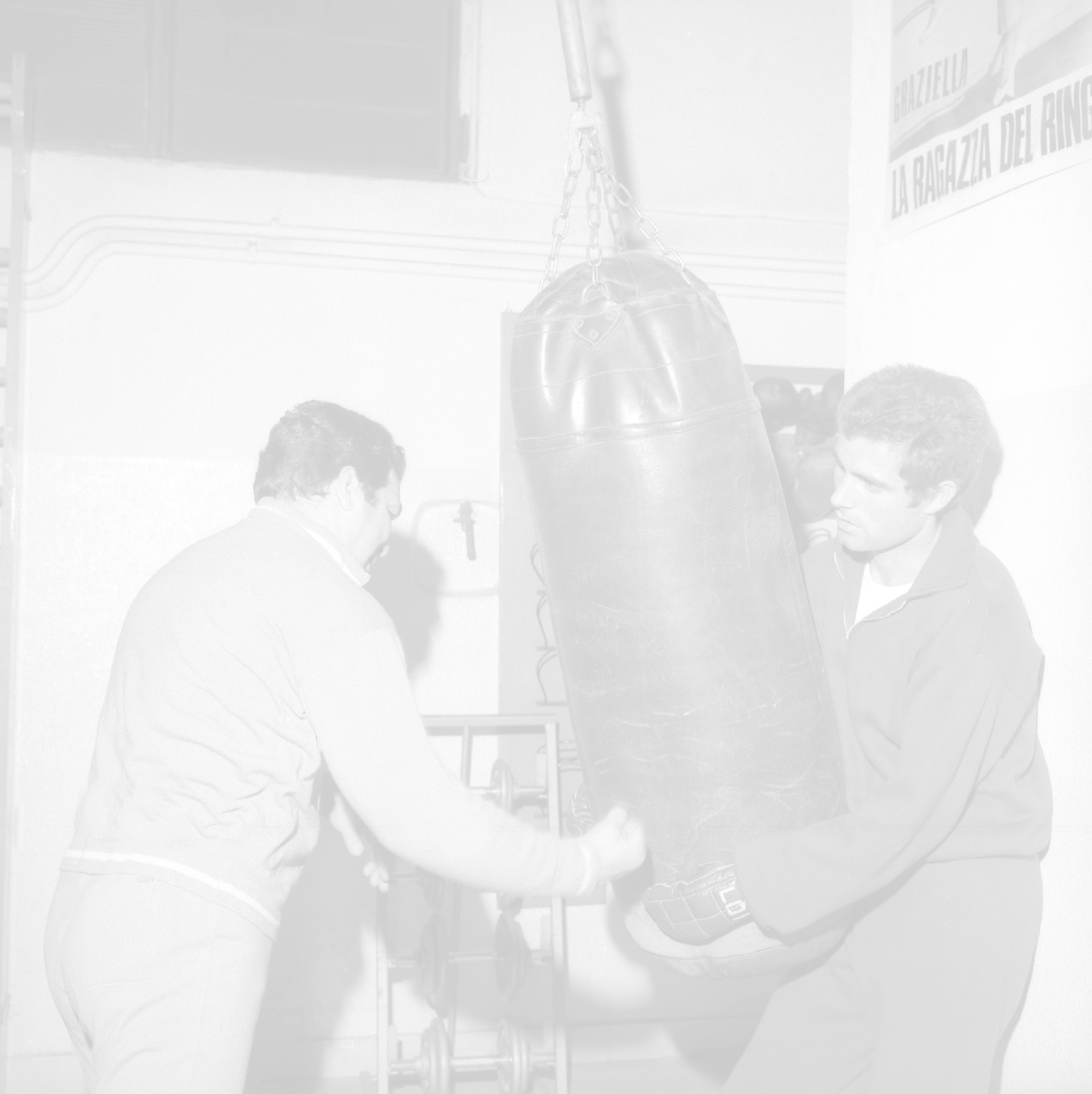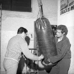 RETROSPETTIVA NINO CASTELNUOVO ATTORE NELLA FOTO NINO CASTELNUOVO A MILANO NELL'ANNO 1968 SI ALLENA NELLA PALESTRA DEL EX PUGILE DUILIO LOI AG ALDO LIVERANI SAS
