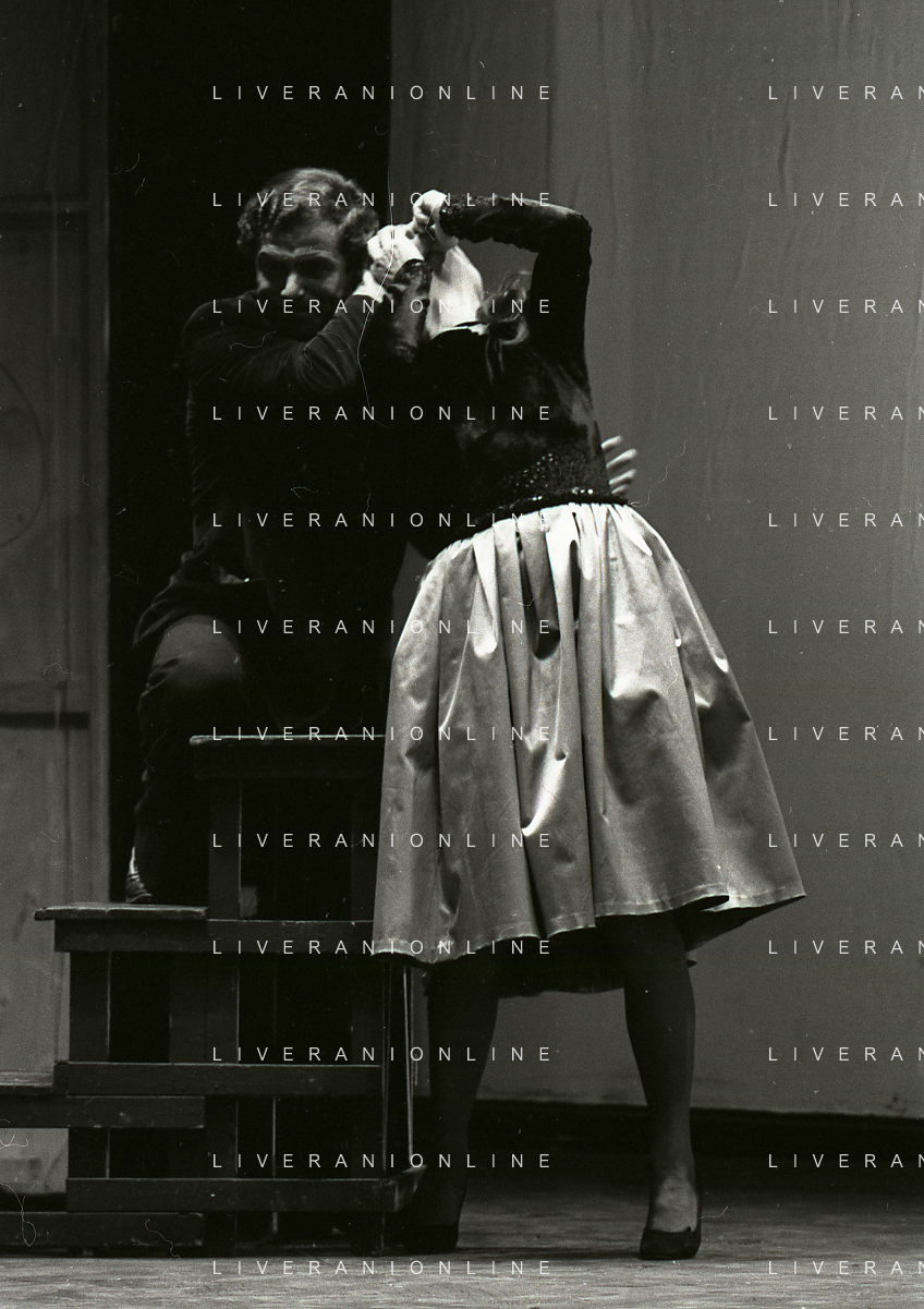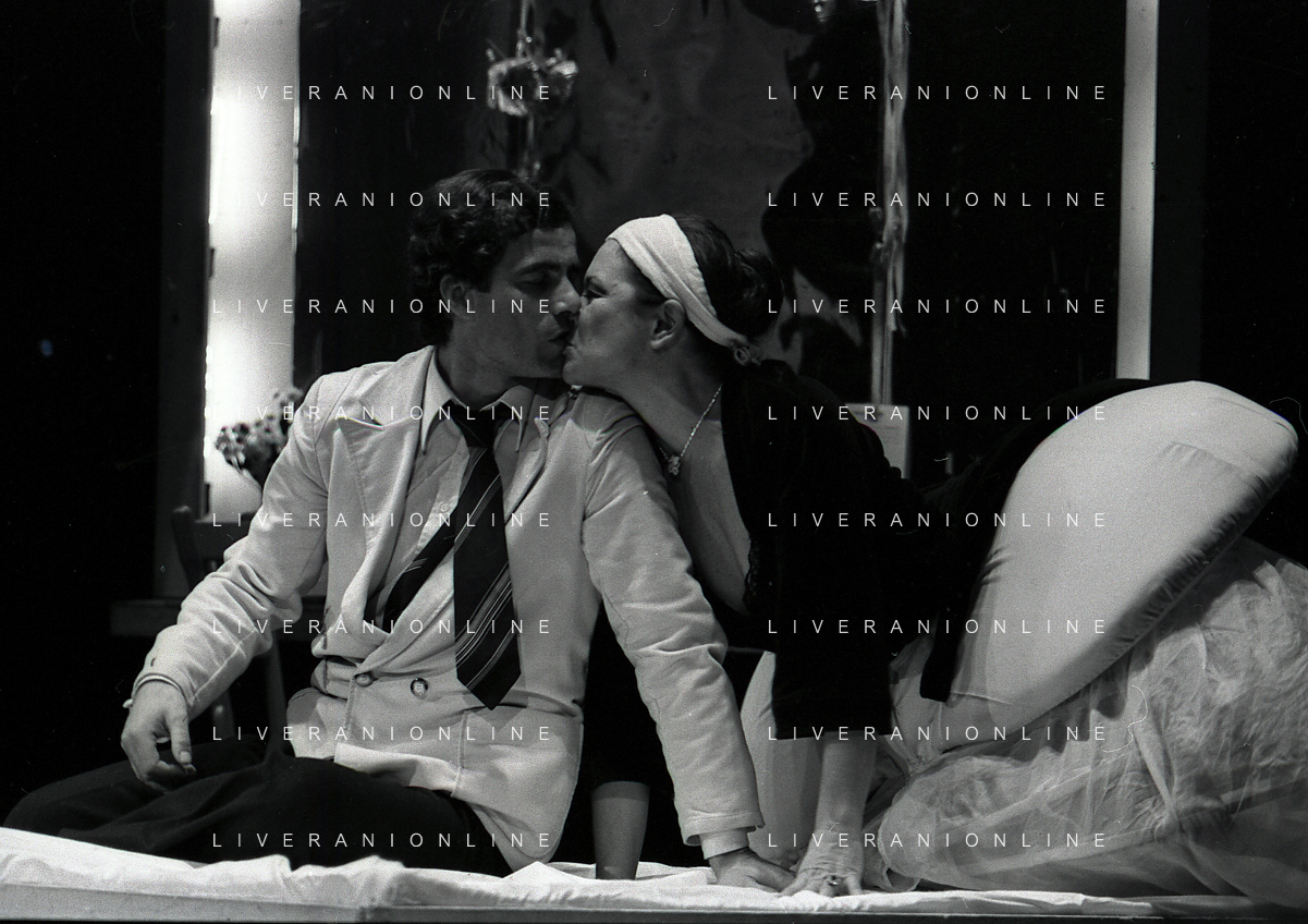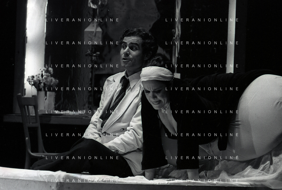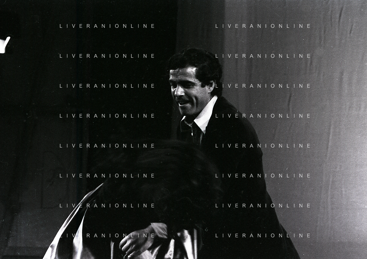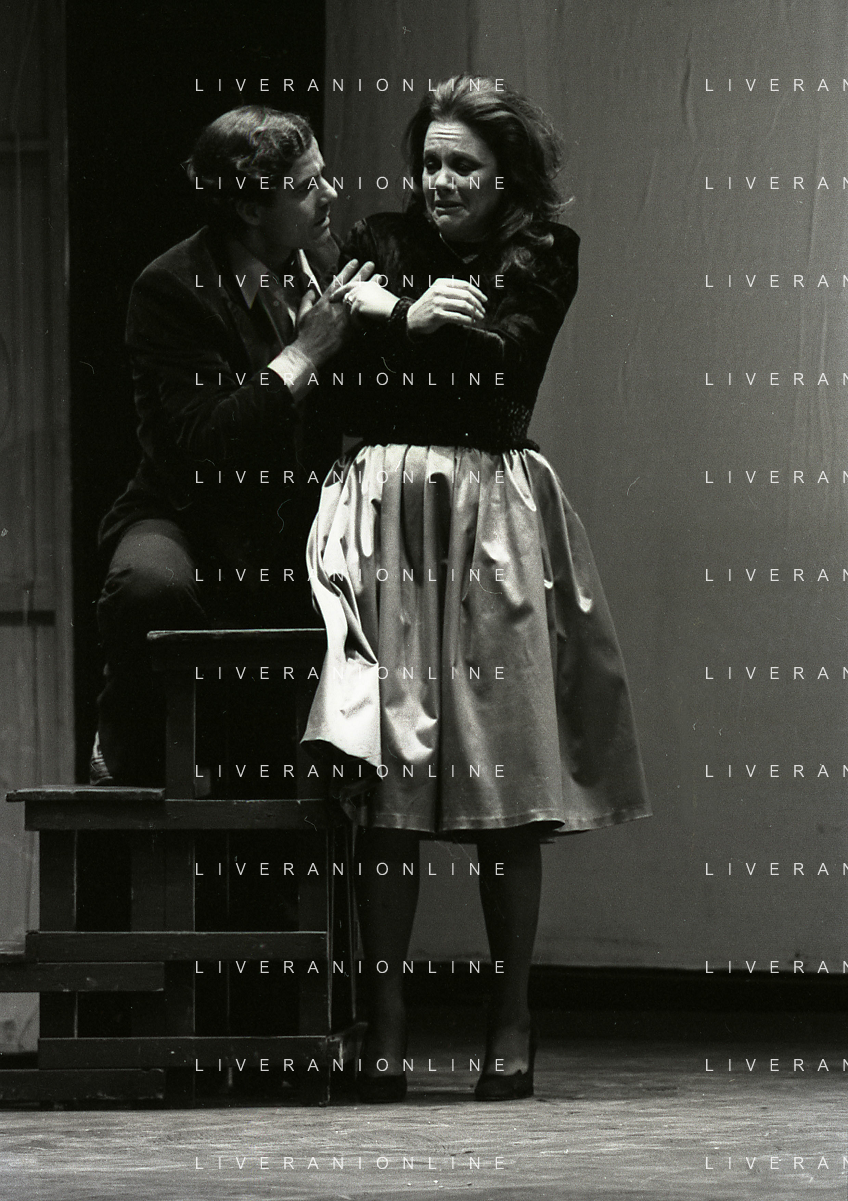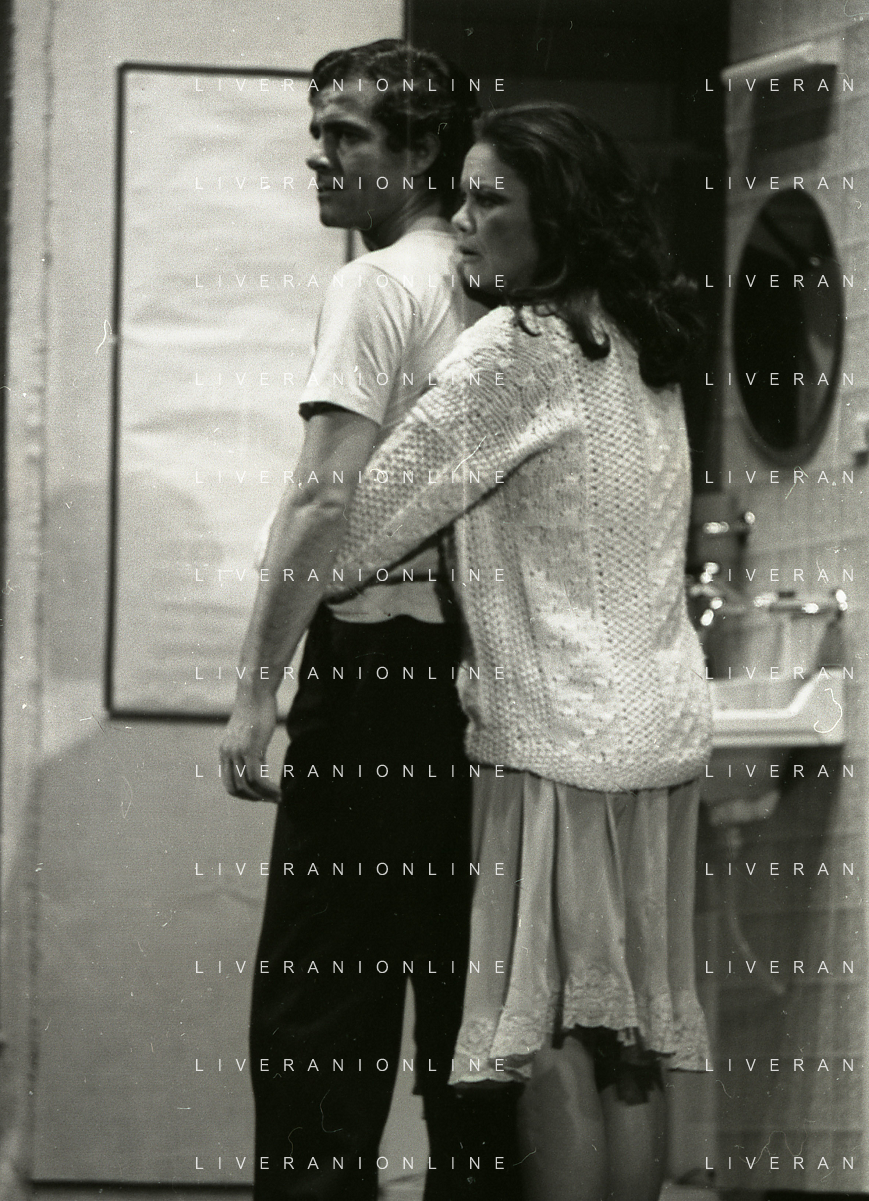 NEG-RETROSPETTIVA NINO CASTELNUOVO ATTORE NELLA FOTO NINO CASTELNUOVO CON VALERIA MORICONI NELLA COMMEDIA TEATRALE “L'HAI MAI VISTA IN SCENA? “ NELL'ANNO 1979 A MILANO AG ALDO LIVERANI SAS