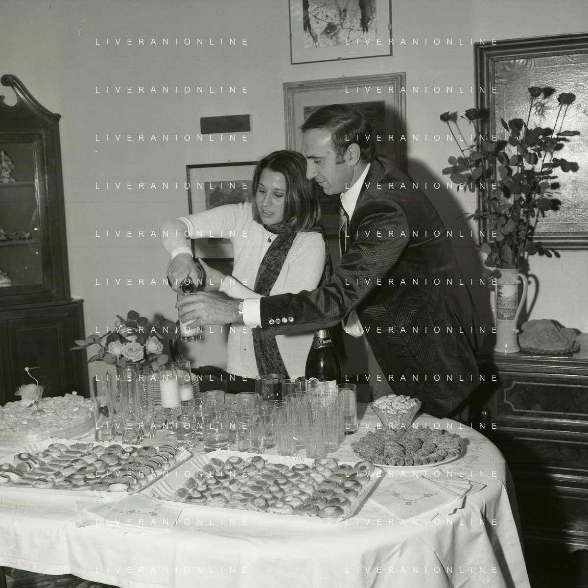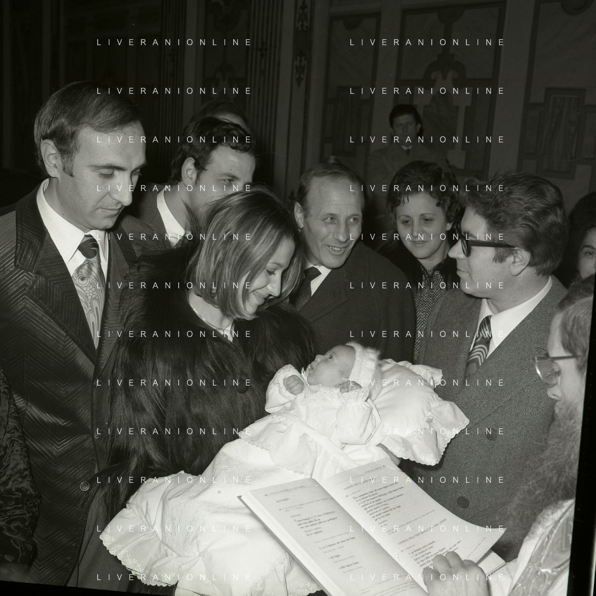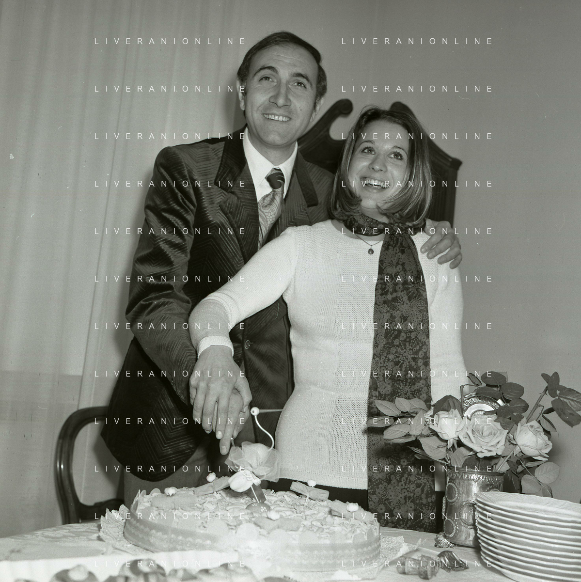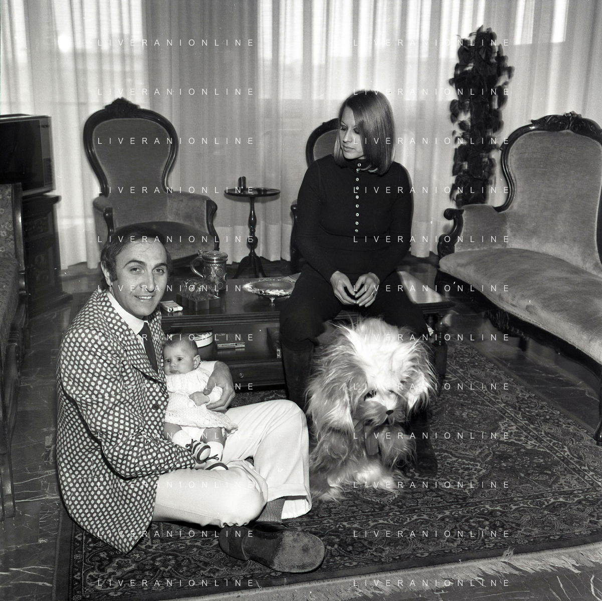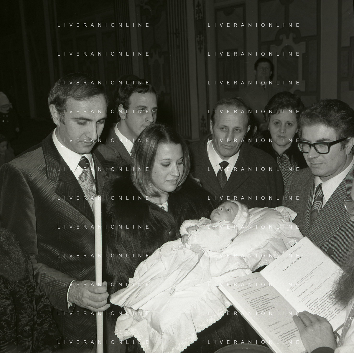 MILANO 1970 RETROSPETTIVA PIPPO BAUDO PRESENTATORE TELEVISIVO NELLA FOTO PIPPO BAUDO CON ANGELA LIPPI IL GIORNO DEL BATTESIMO DELLA FIGLIA TIZIANA AG ALDO LIVERANI SAS