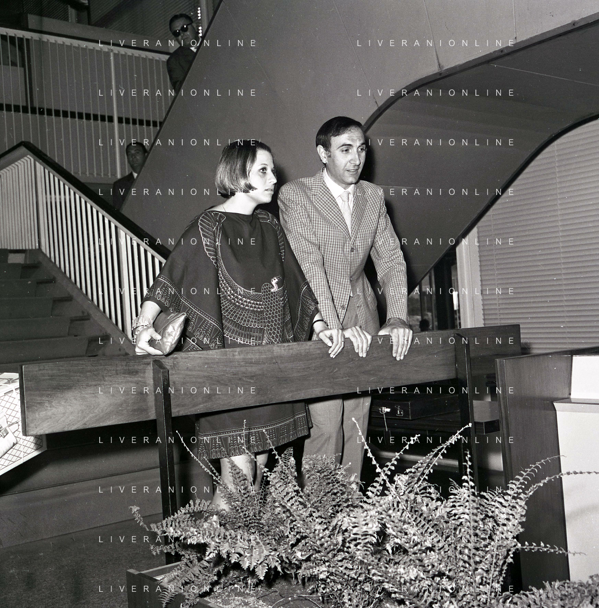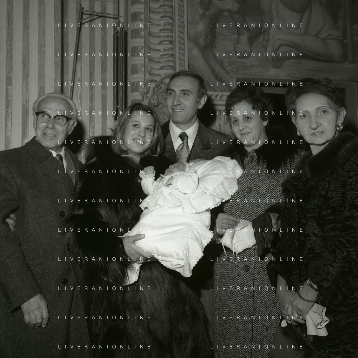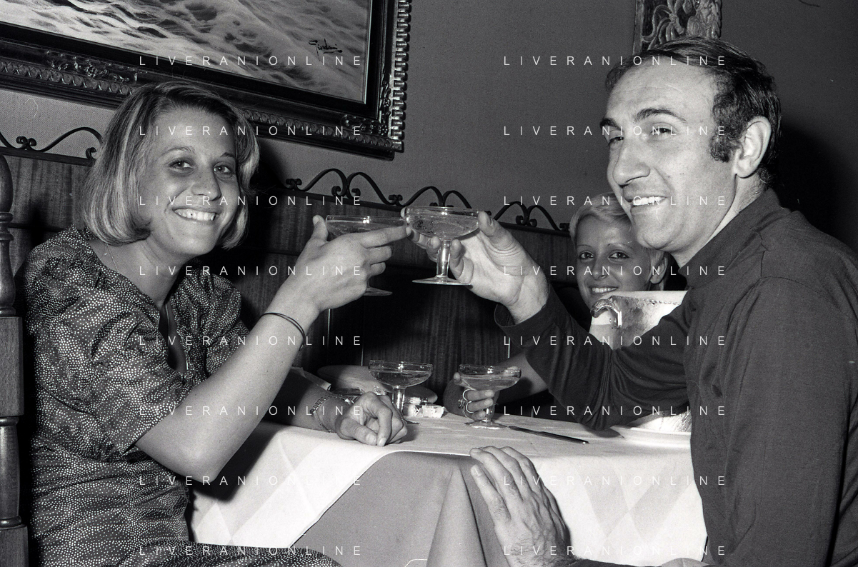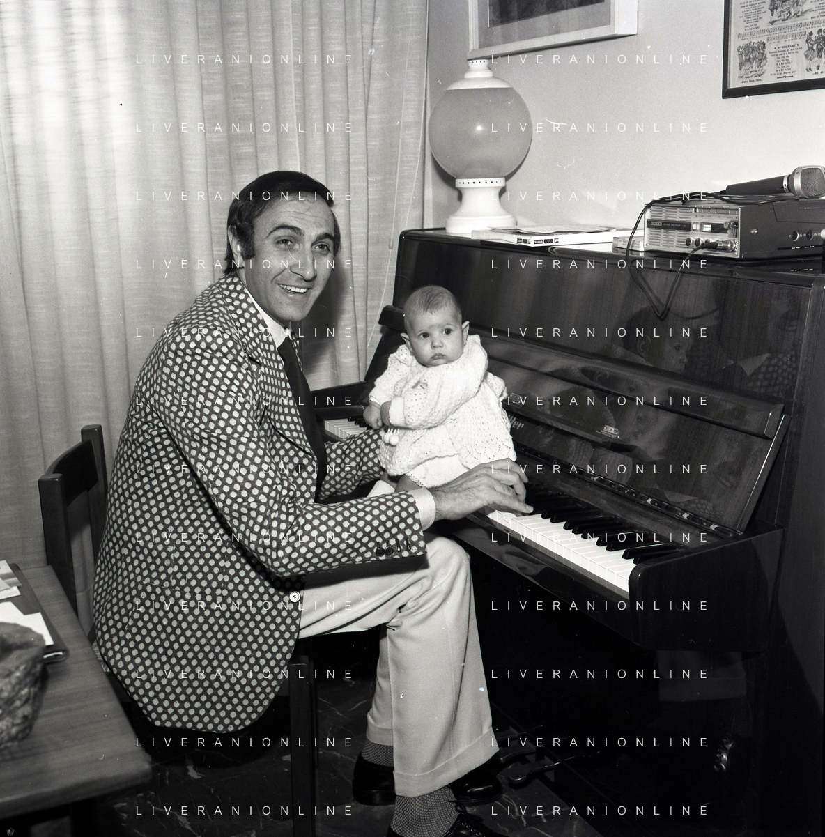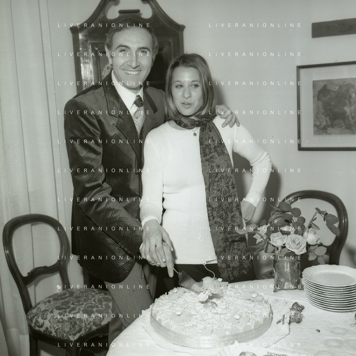 MILANO 1970 RETROSPETTIVA PIPPO BAUDO PRESENTATORE TELEVISIVO NELLA FOTO PIPPO BAUDO CON ANGELA LIPPI IL GIORNO DEL BATTESIMO DELLA FIGLIA TIZIANA AG ALDO LIVERANI SAS