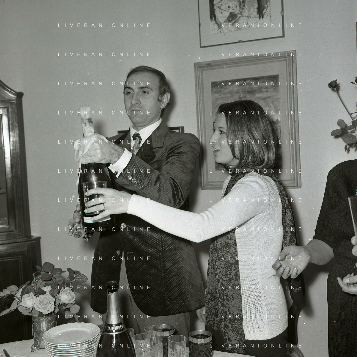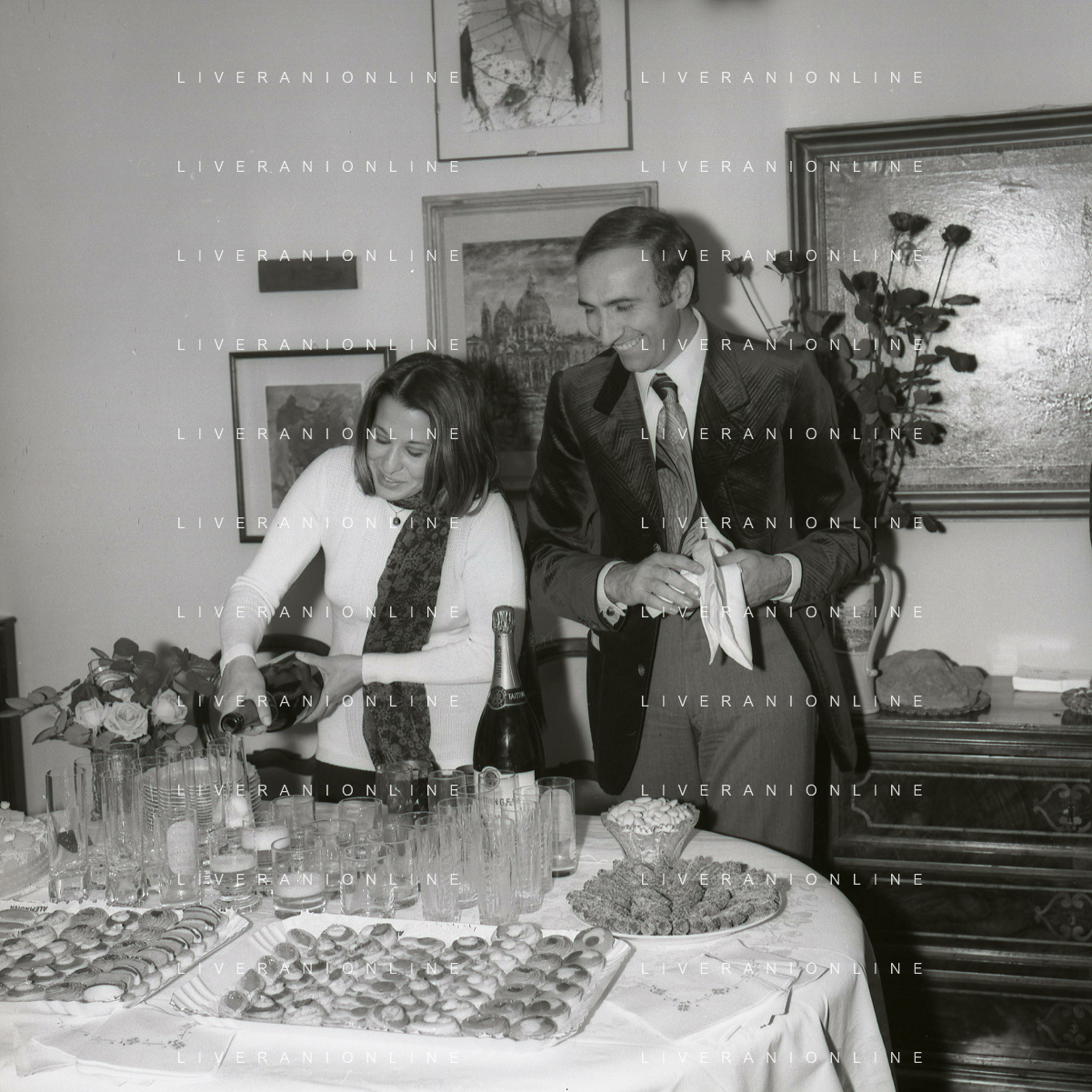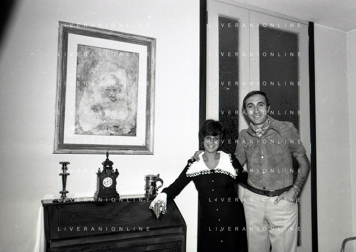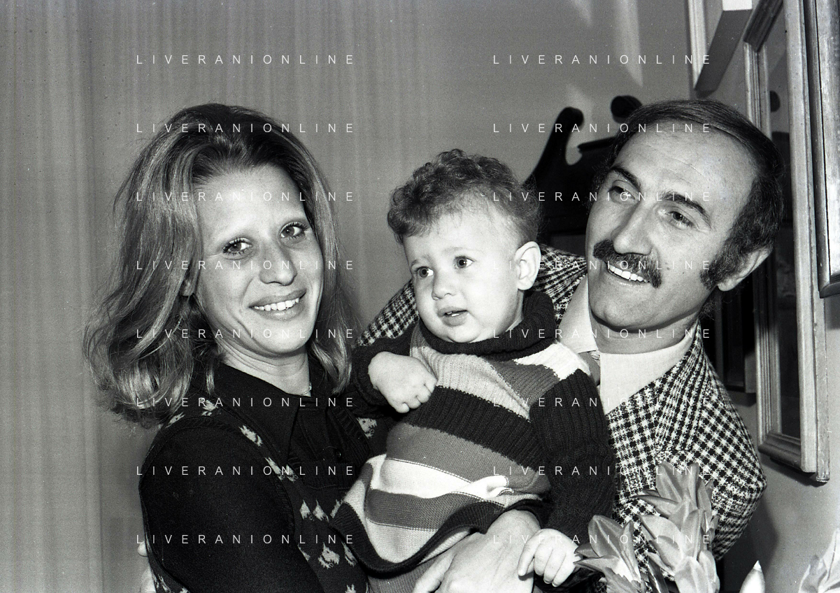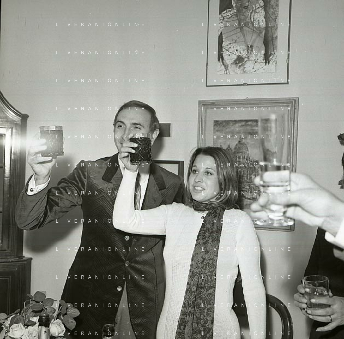 MILANO 1970 RETROSPETTIVA PIPPO BAUDO PRESENTATORE TELEVISIVO NELLA FOTO PIPPO BAUDO CON ANGELA LIPPI IL GIORNO DEL BATTESIMO DELLA FIGLIA TIZIANA AG ALDO LIVERANI SAS
