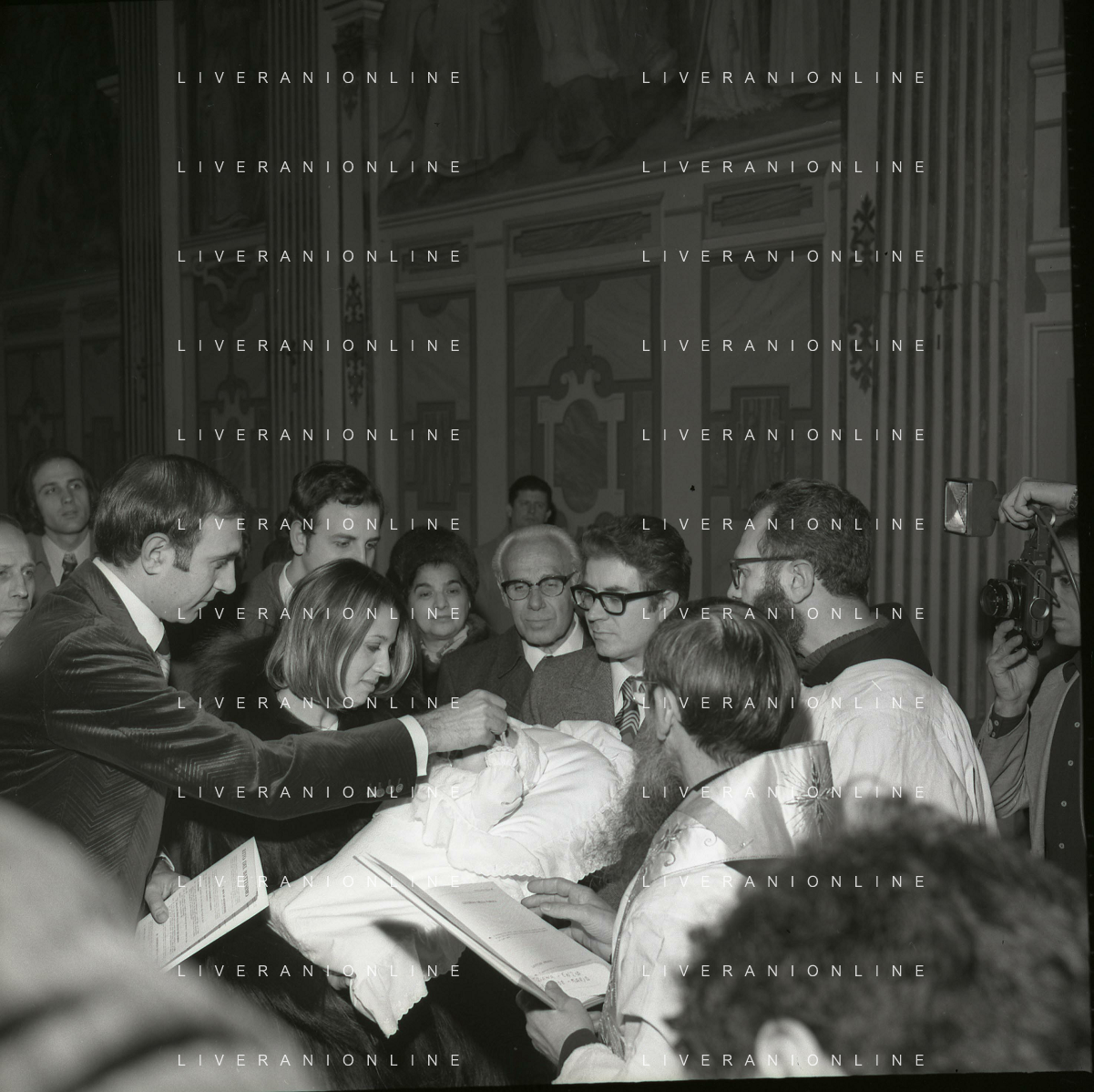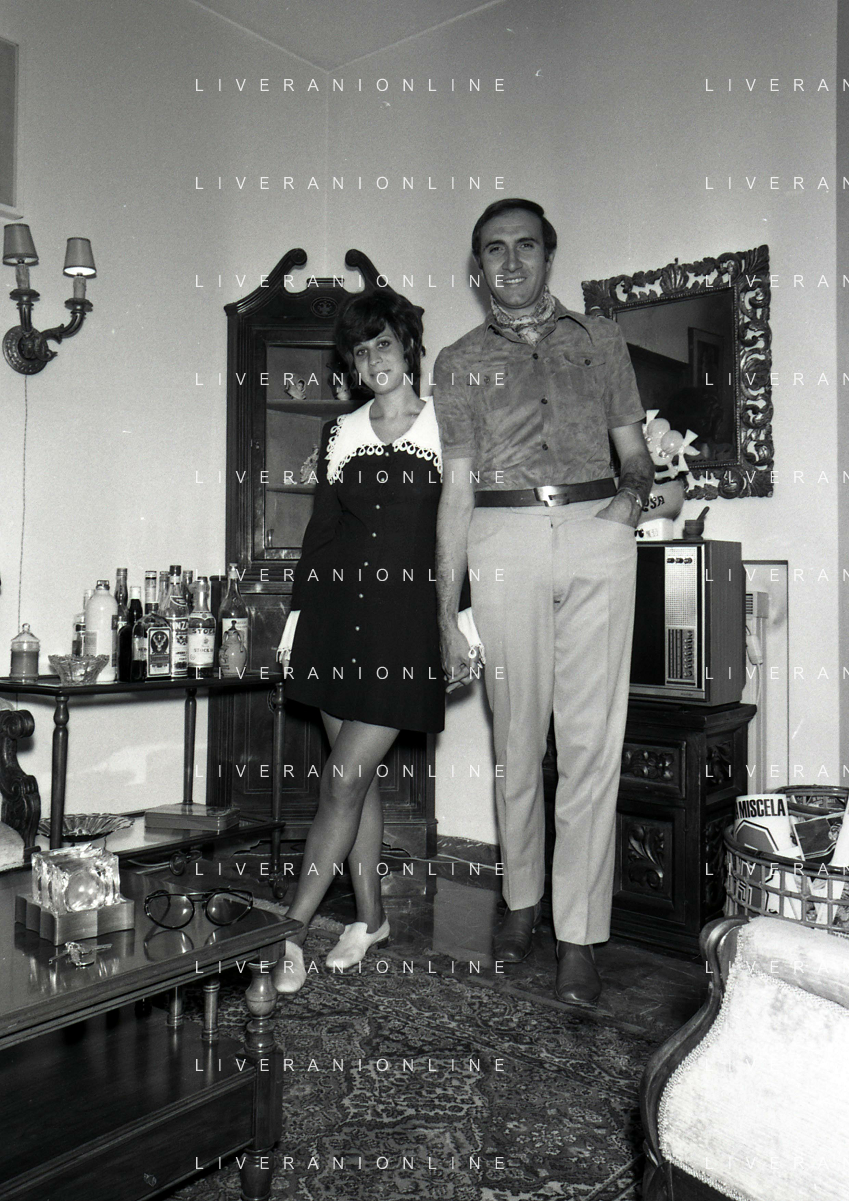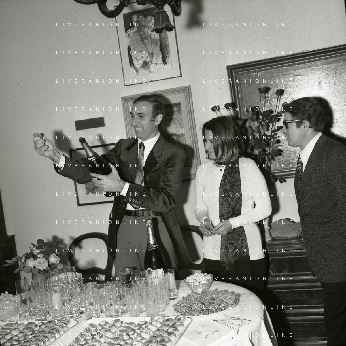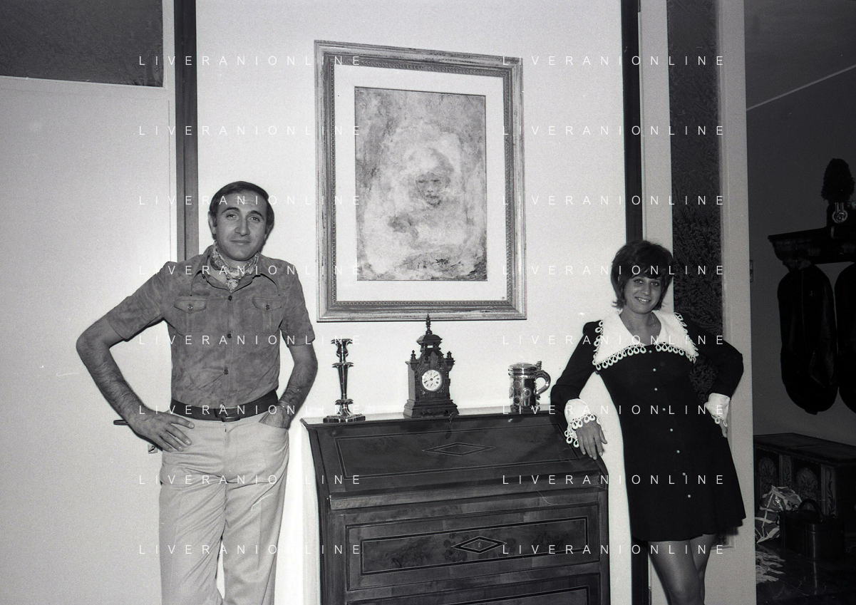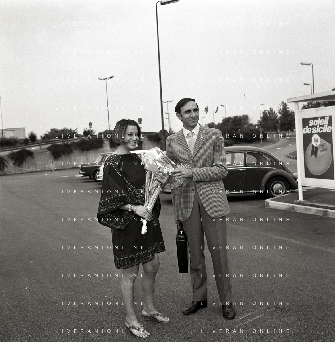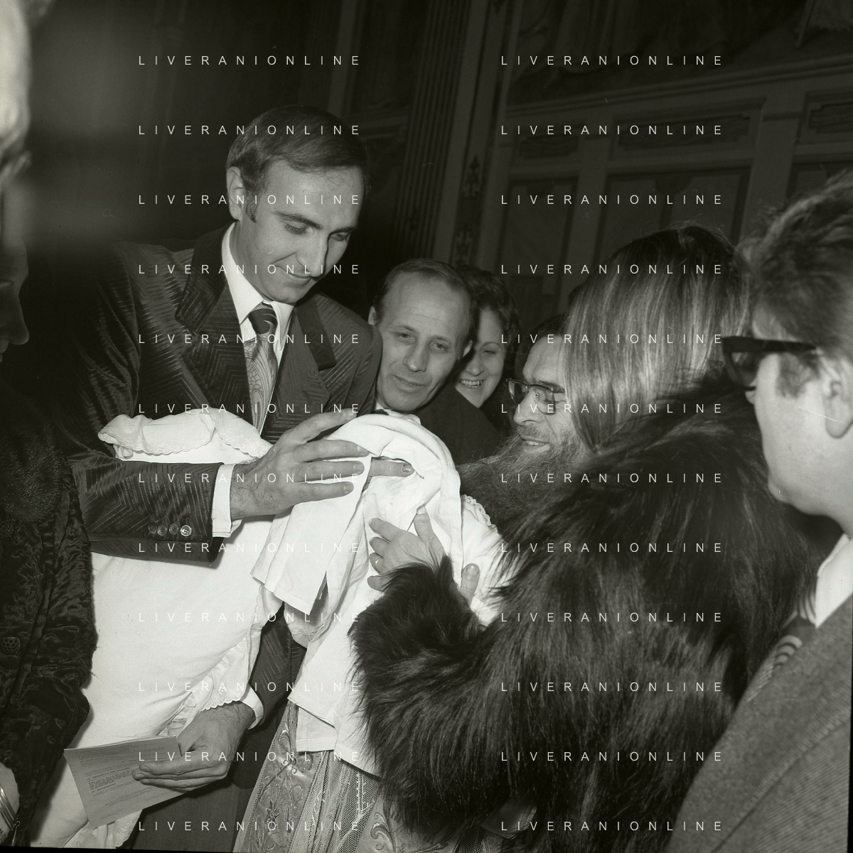 MILANO 1970 RETROSPETTIVA PIPPO BAUDO PRESENTATORE TELEVISIVO NELLA FOTO PIPPO BAUDO CON ANGELA LIPPI IL GIORNO DEL BATTESIMO DELLA FIGLIA TIZIANA AG ALDO LIVERANI SAS