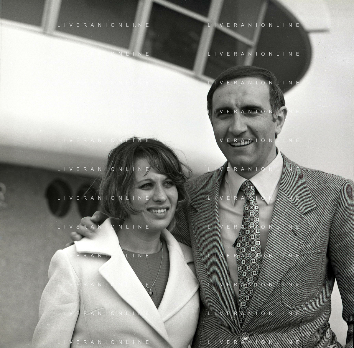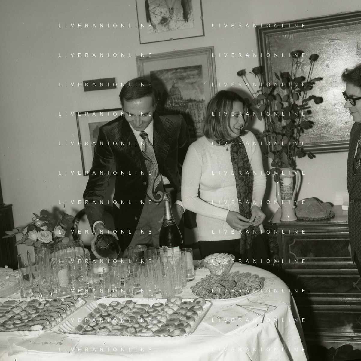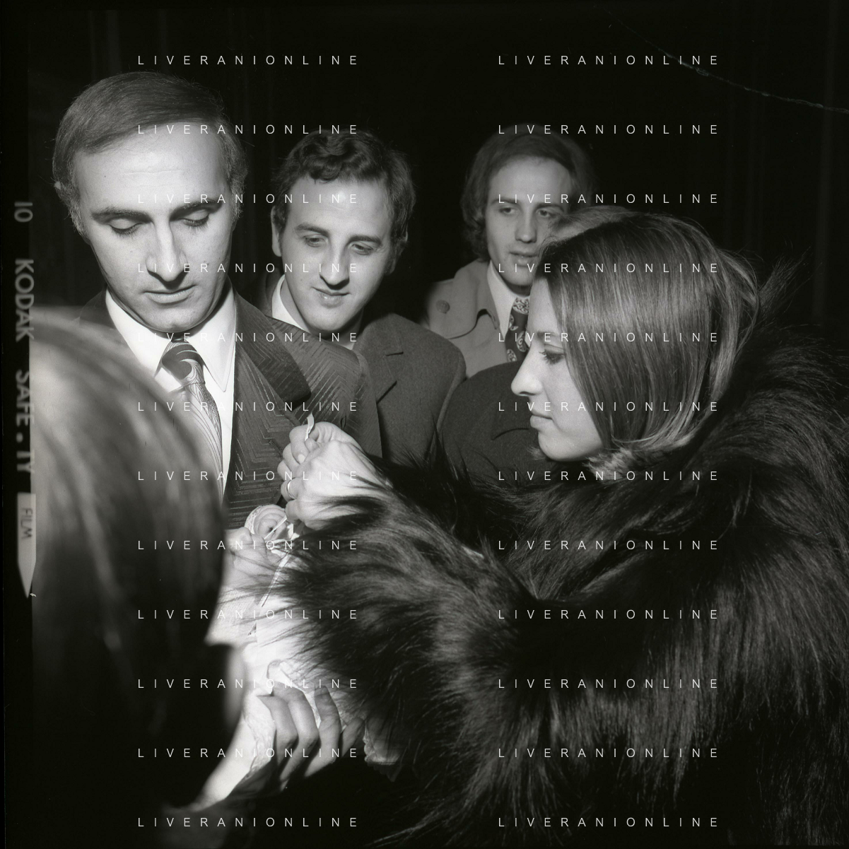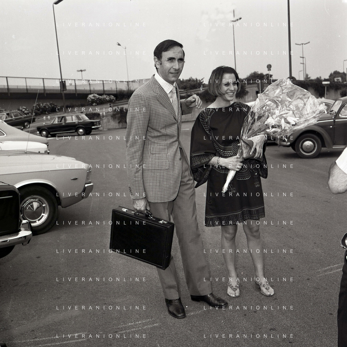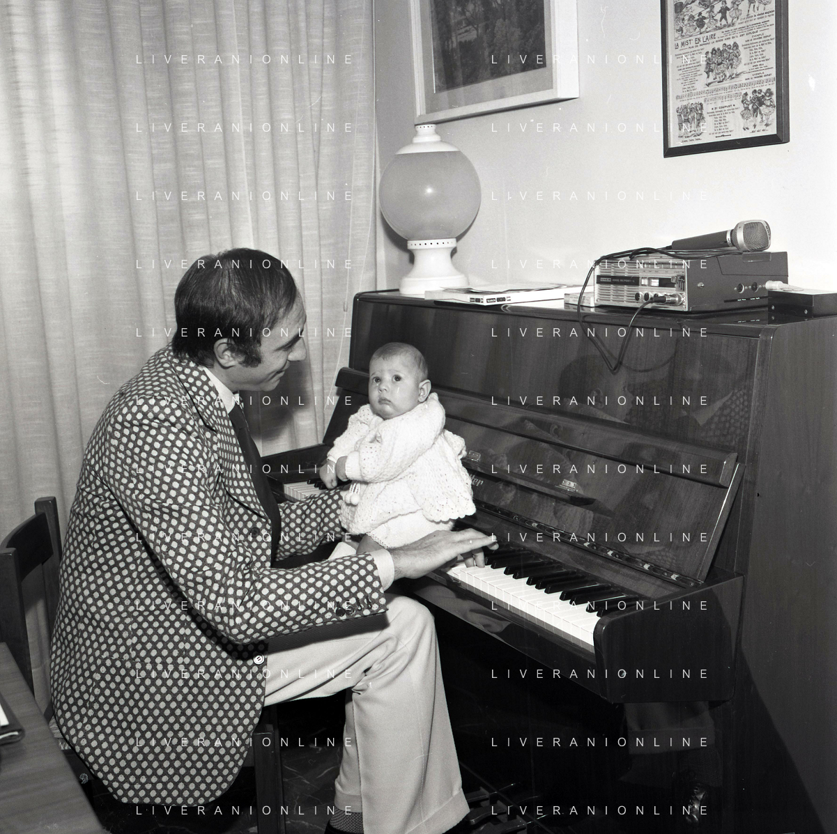 MILANO 1970 RETROSPETTIVA PIPPO BAUDO PRESENTATORE TELEVISIVO NELLA FOTO PIPPO BAUDO CON ANGELA LIPPI IL GIORNO DEL BATTESIMO DELLA FIGLIA TIZIANA AG ALDO LIVERANI SAS