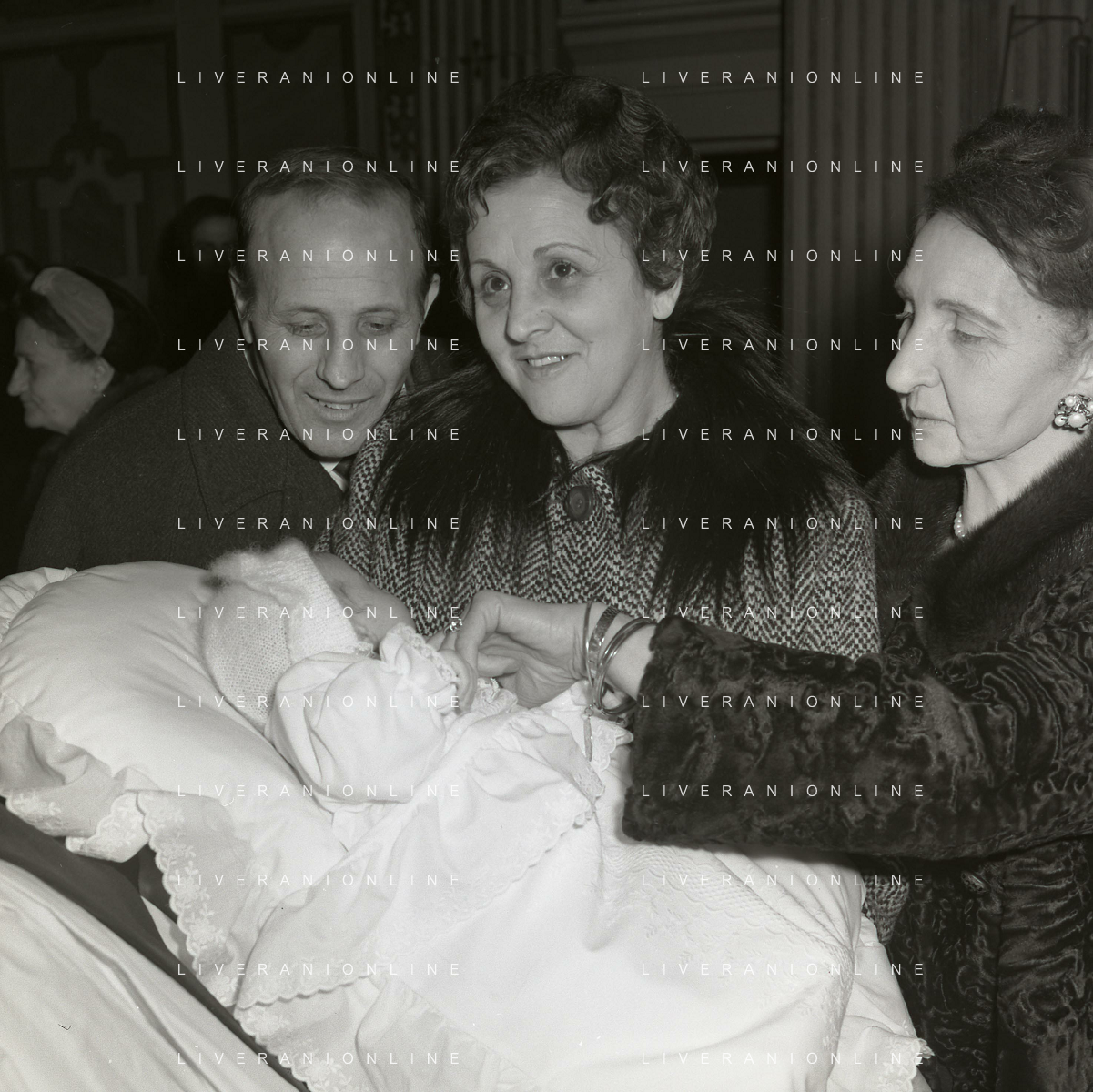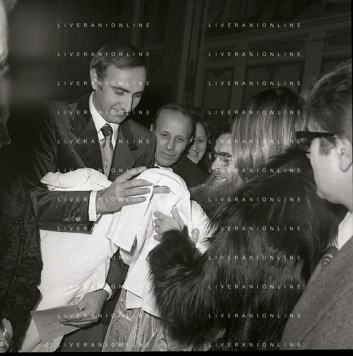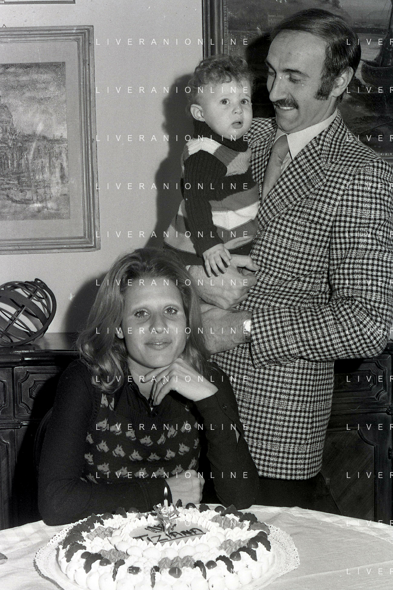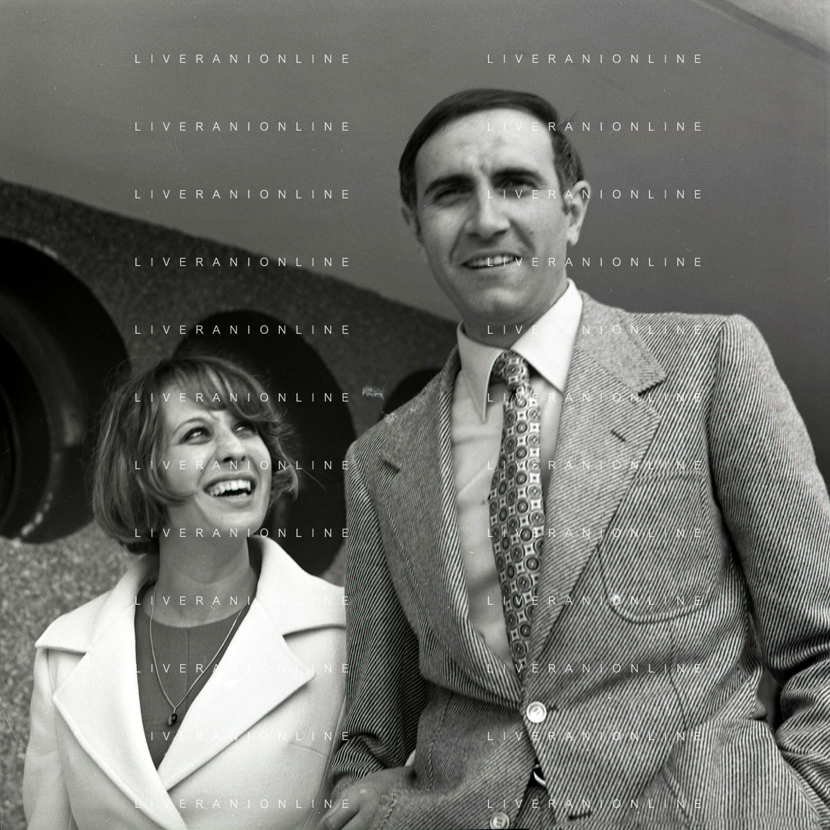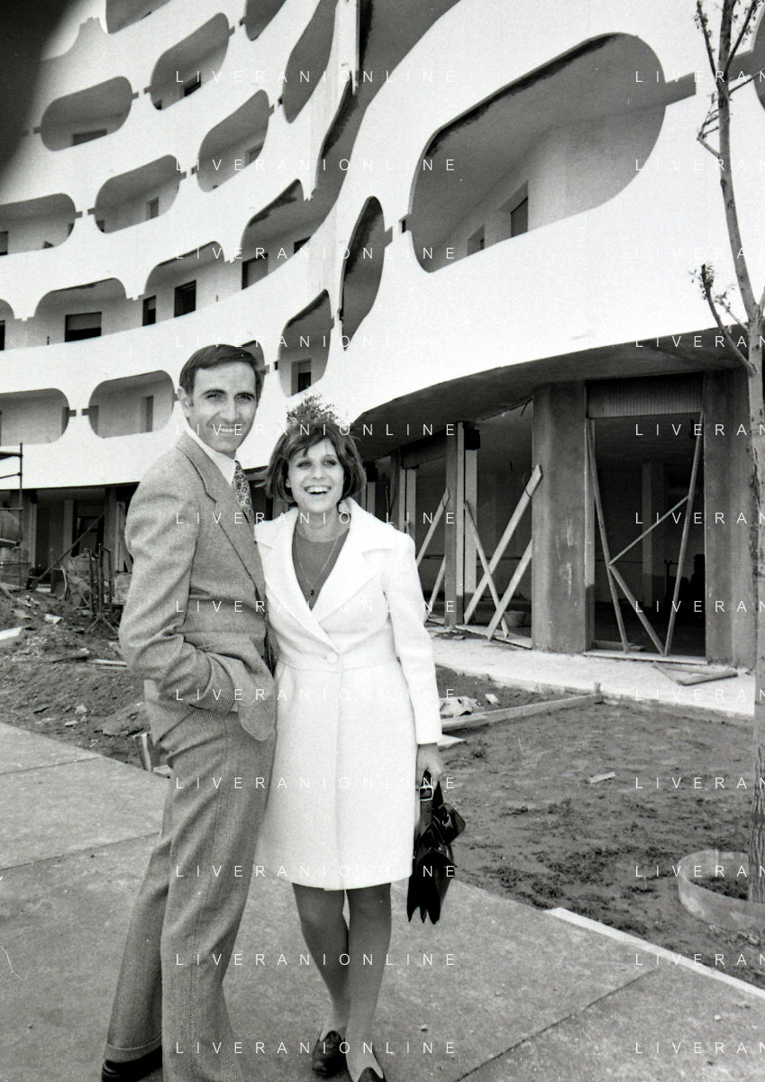 MILANO 1970 RETROSPETTIVA PIPPO BAUDO PRESENTATORE TELEVISIVO NELLA FOTO PIPPO BAUDO CON ANGELA LIPPI IL GIORNO DEL BATTESIMO DELLA FIGLIA TIZIANA AG ALDO LIVERANI SAS