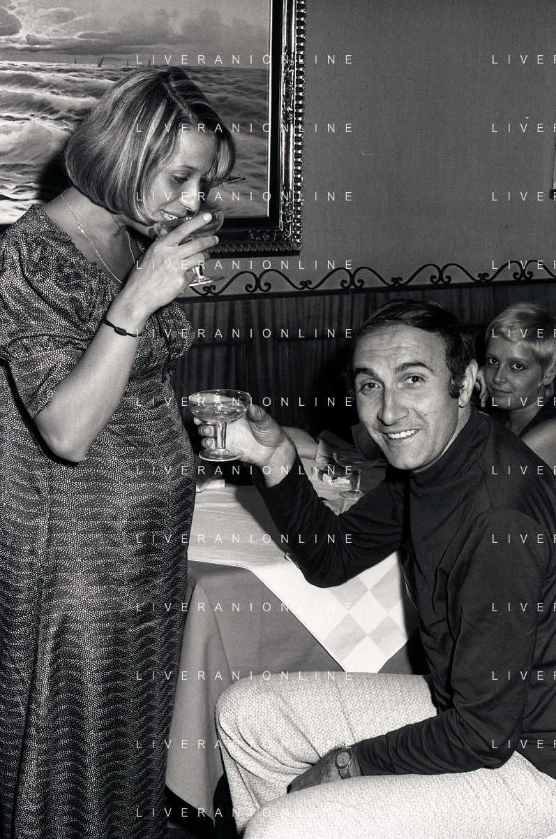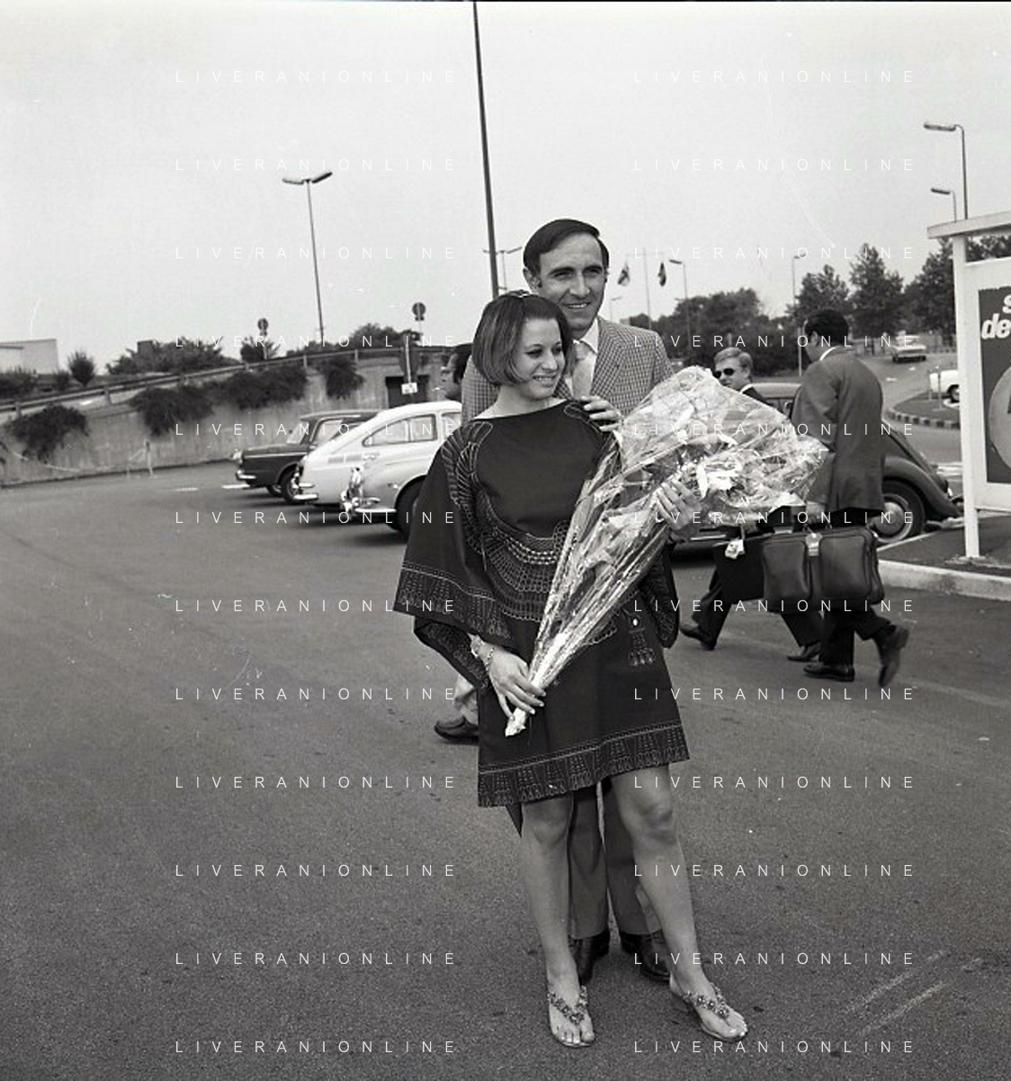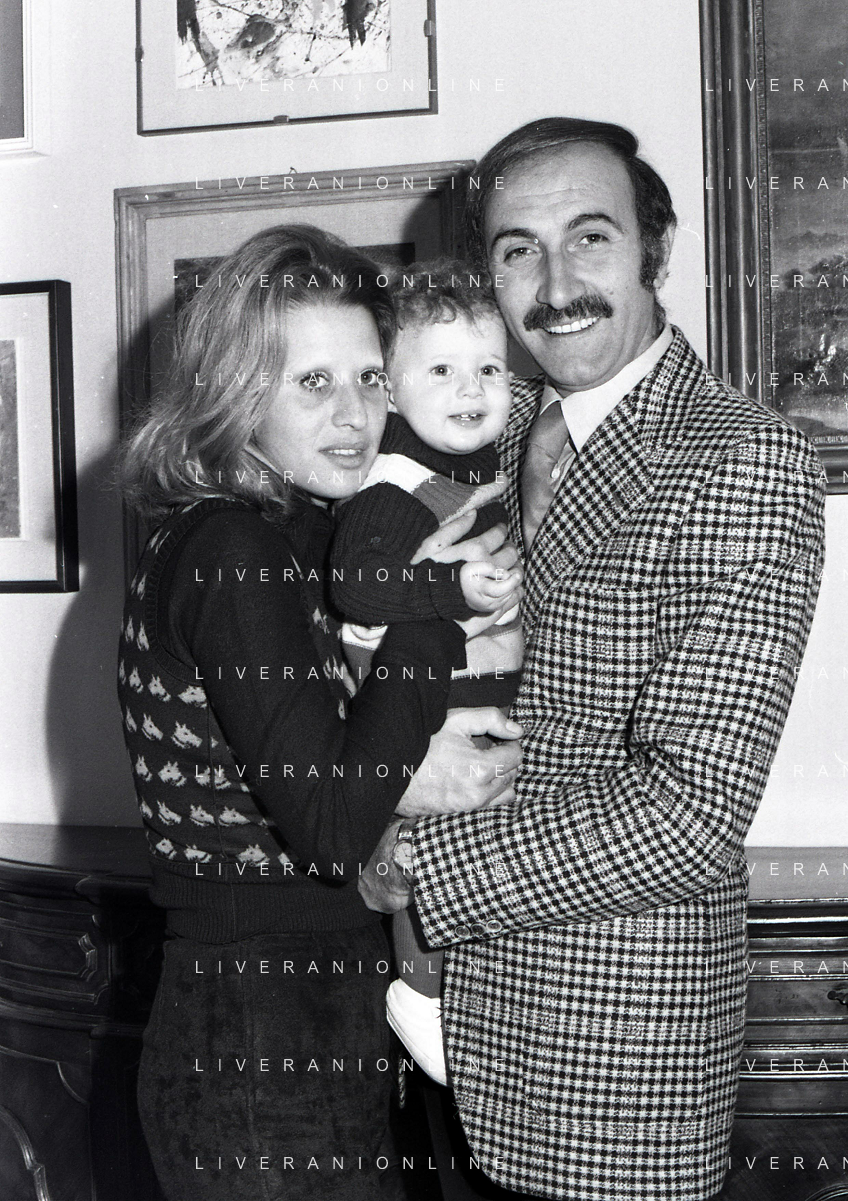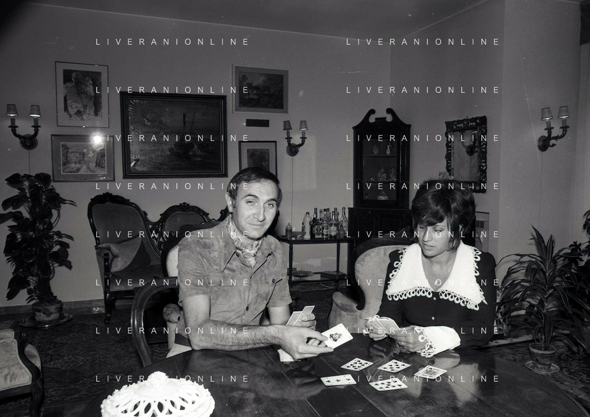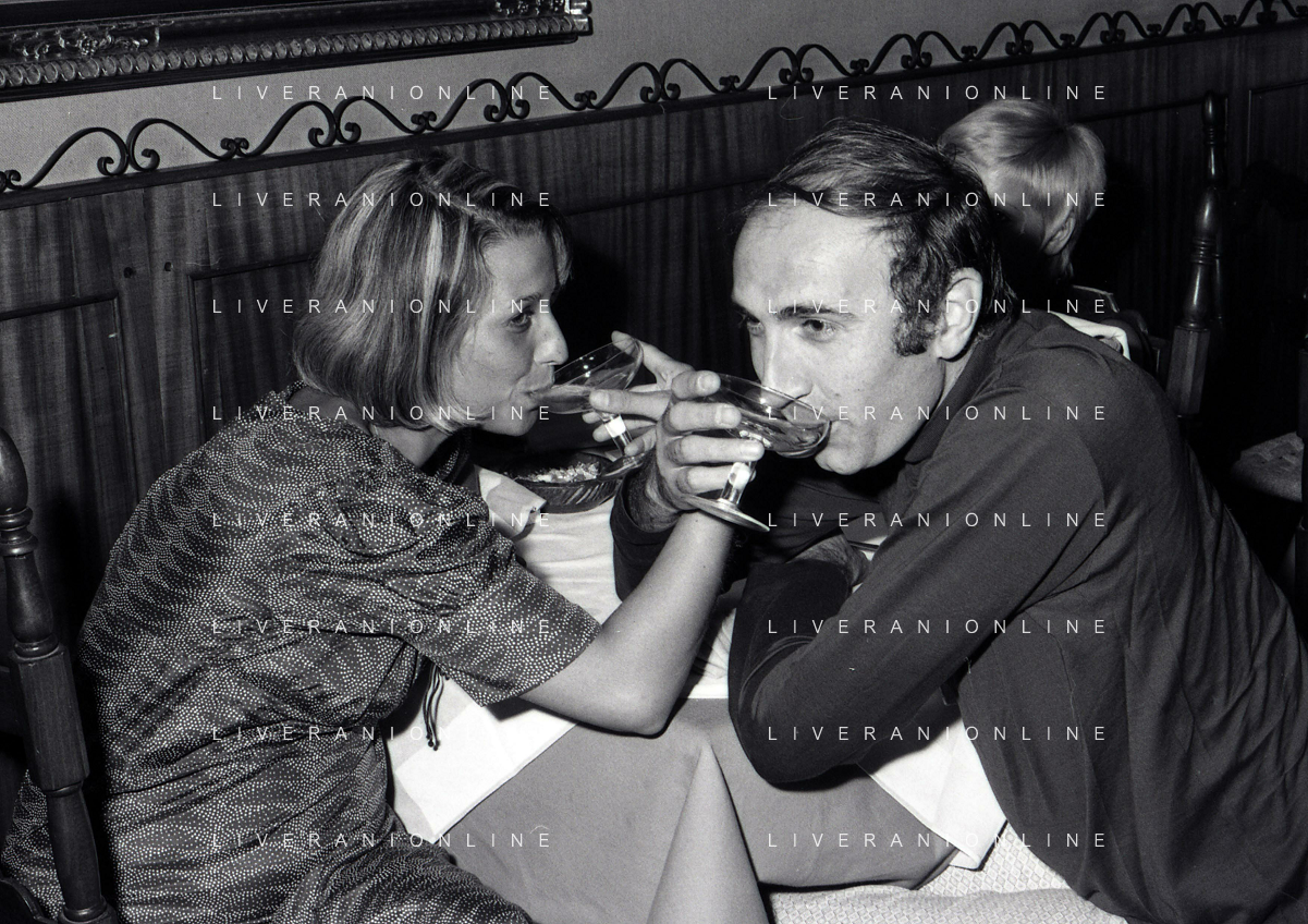 MILANO 1970 RETROSPETTIVA PIPPO BAUDO PRESENTATORE TELEVISIVO NELLA FOTO PIPPO BAUDO CON ANGELA LIPPI IL GIORNO DEL BATTESIMO DELLA FIGLIA TIZIANA AG ALDO LIVERANI SAS