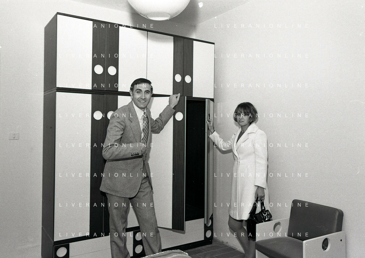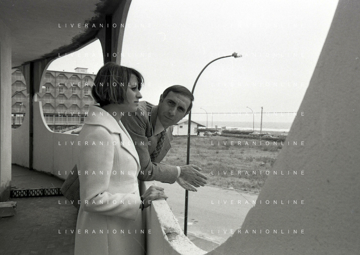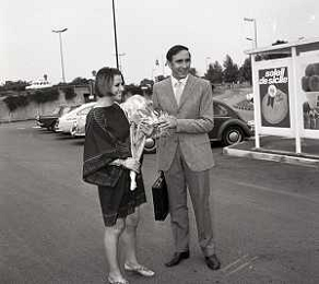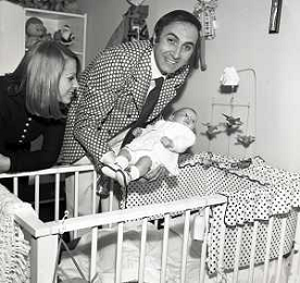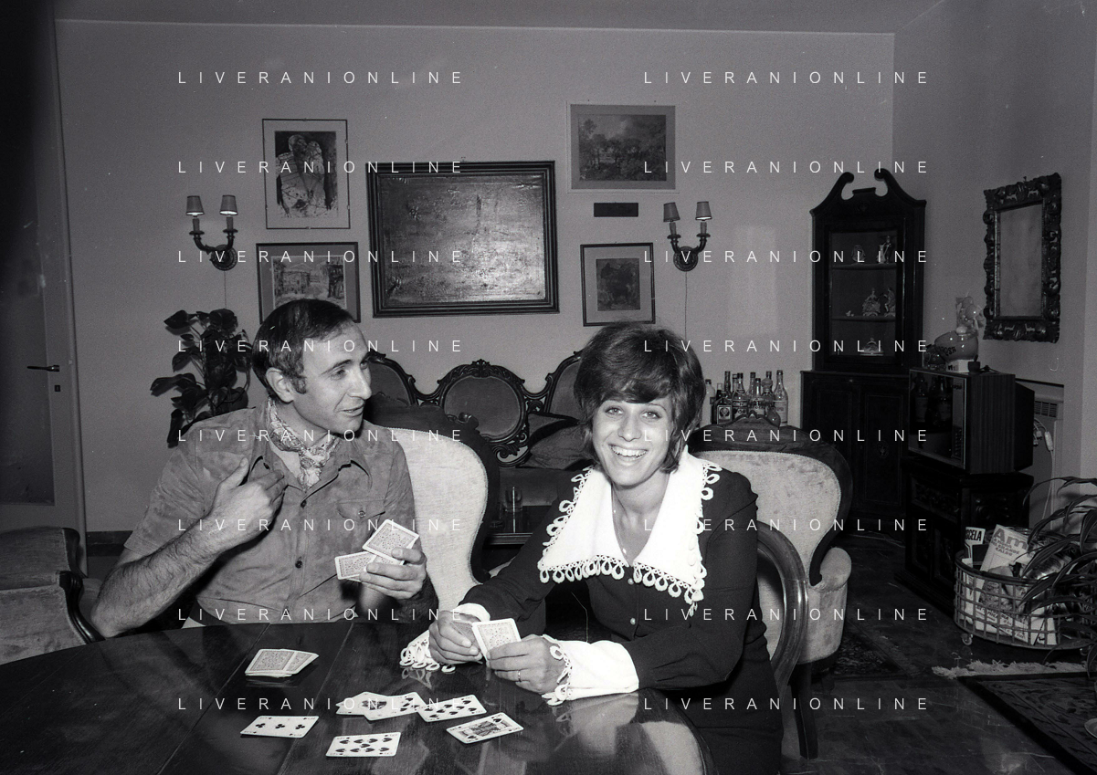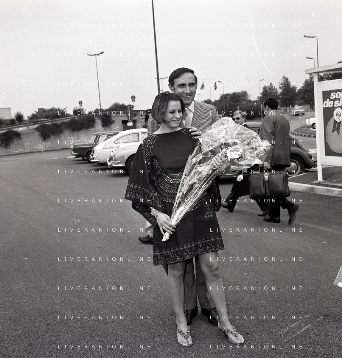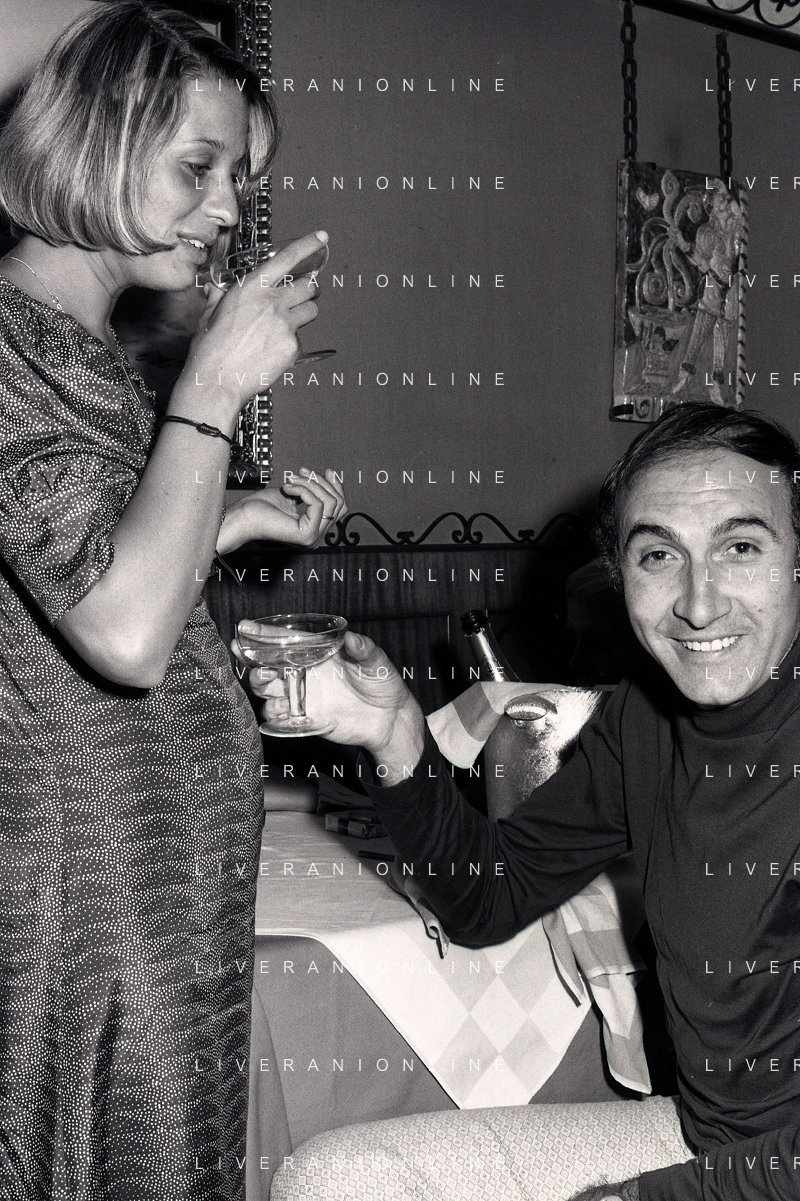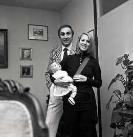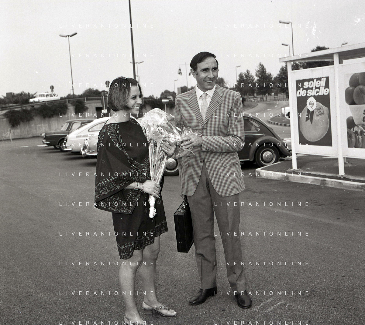 MILANO 1970 RETROSPETTIVA PIPPO BAUDO PRESENTATORE TELEVISIVO NELLA FOTO PIPPO BAUDO CON ANGELA LIPPI IL GIORNO DEL BATTESIMO DELLA FIGLIA TIZIANA AG ALDO LIVERANI SAS